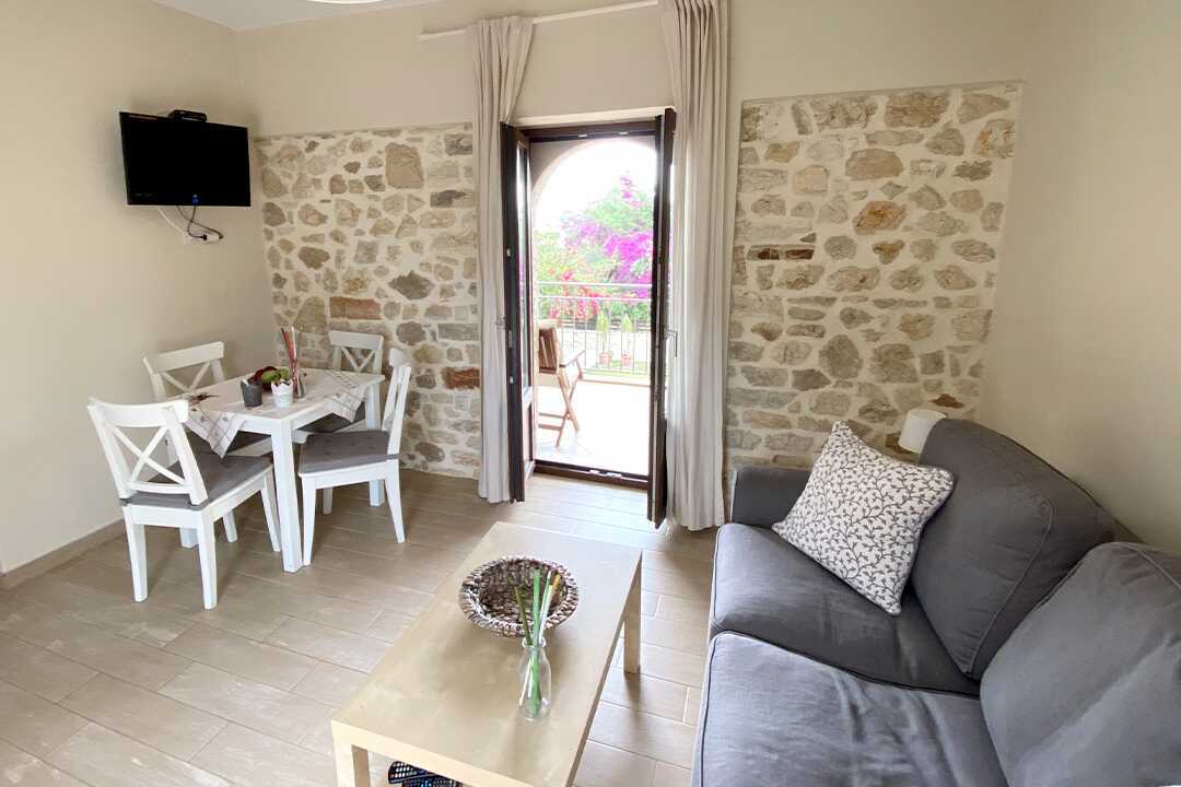 Familie-værelser med balkon eller terrasse, med balkon eller med terrasse i stueplan. Et soveværelse og et opholdsrum. En dobbeltseng. Mulighed for ekstra opredninger i sovesofa. Wifi - forbindelsen kan være langsom i nogle lejligheder, gratis aircondition og deponering. Køleskab. El-kedel. Tv med internationale kanaler. Hårtørrer. Badeværelse med bruser og toilet. Rengøring 7 gange om ugen.