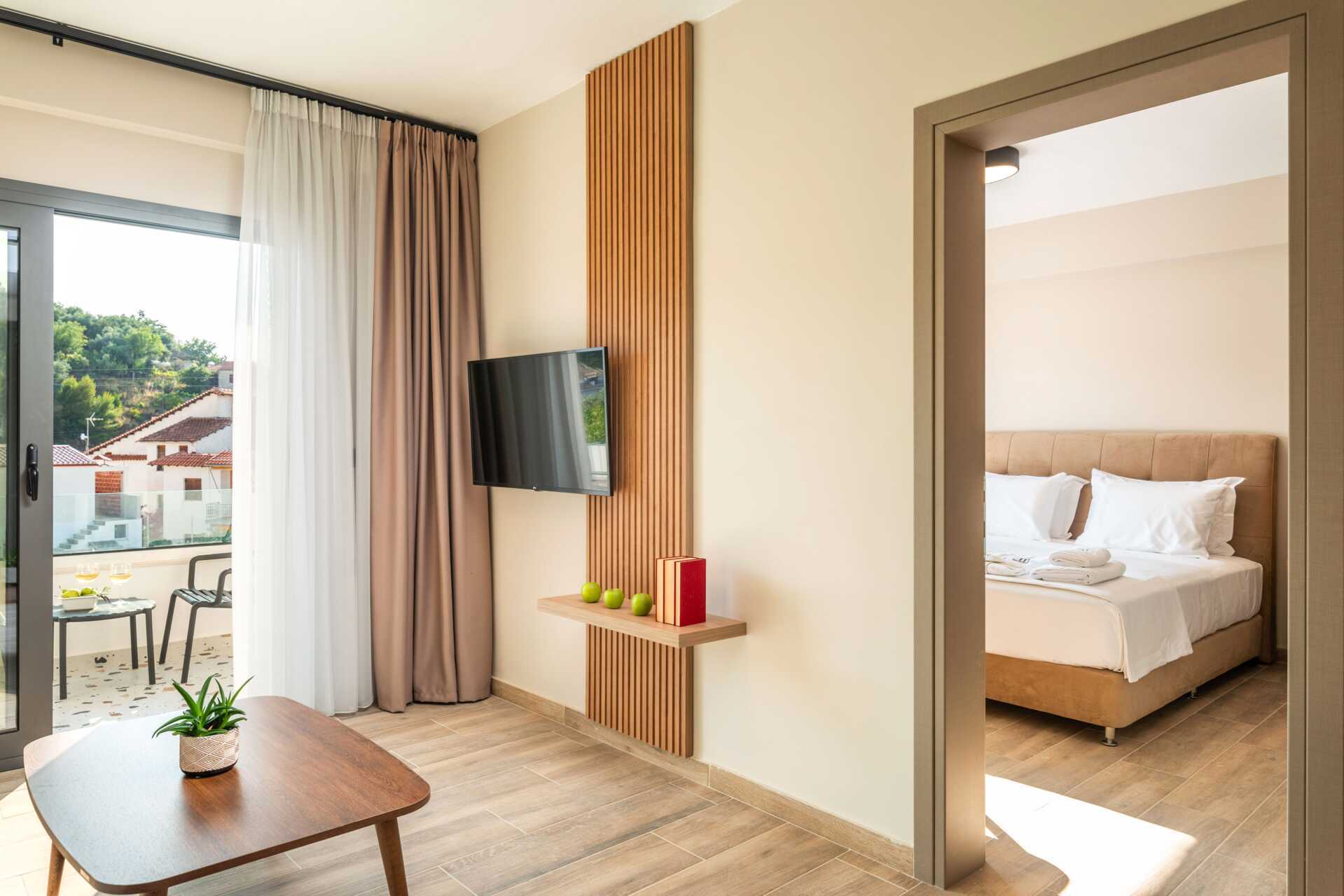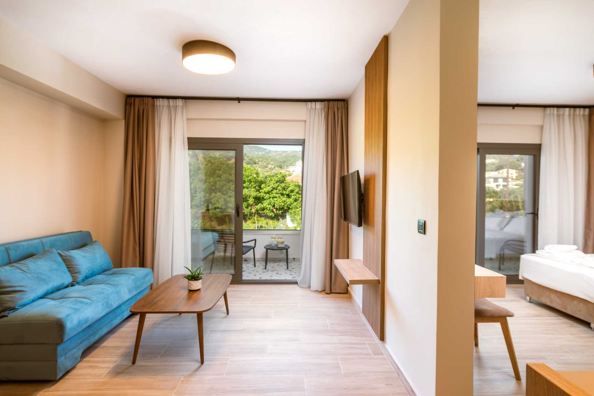 Familie-værelse med balkon. Soveværelse og opholdsrum. En dobbeltseng. Mulighed for ekstra opredninger i sovesofa. Køleskab. El-kedel. Gratis wifi, aircondition og deponering. Tv med internationale kanaler. Hårtørrer. Badeværelse med badekar eller bruser samt toilet. Rengøring 7 gange om ugen.