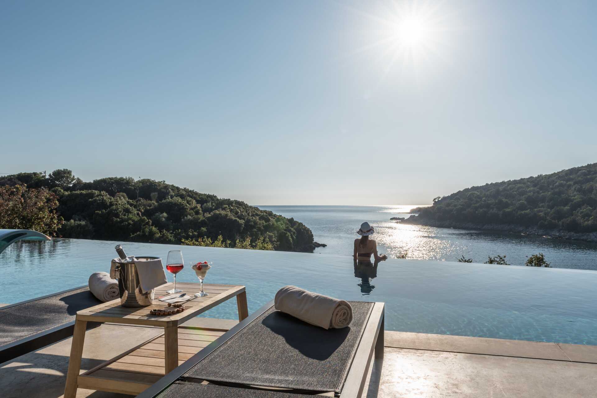 Mövenpick Resort Agios Nikolaos Sivota har to poolområder med hver en pool. En familiepool og en infinitypool med en aldersgrænse på 18 år. Solstole og parasoller samt en pool og snackbar, der serverer drinks og lette måltider i løbet af dagen. Nede ved havet deler hotellet strand med nabohotellet og der er solstole og parasoller samt strandbaren Skipper, hvor du kan bestille lettere anretninger, juice, frugtsalater og drikkevarer i løbet af dagen. Pool- og strandhåndklæder indgår.