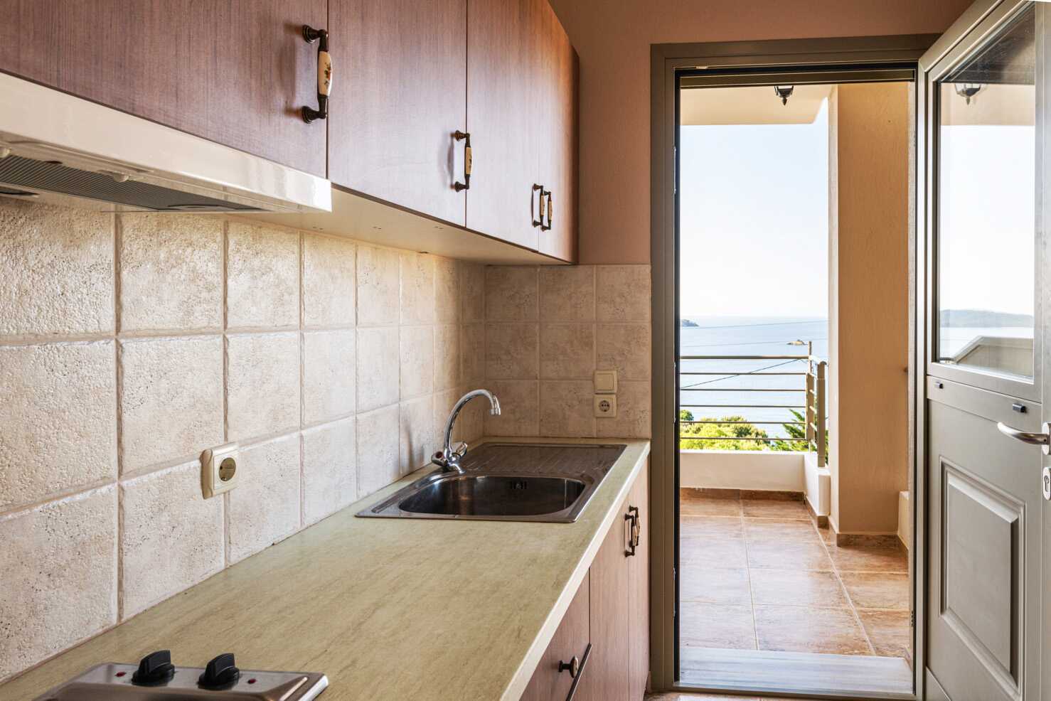 Renoveret 1-værelses lejlighed med balkon og havudsigt. Kombineret soveværelse med minikøkken. En dobbeltseng. Mulighed for ekstra opredning i fold ud-lænestol. Minikøkken med kogeplader, køleskab, el-kedel, kaffemaskine, brødrister og enkelt køkkenudstyr. Gratis wifi, aircondition og deponering. Tv med lokale kanaler. Hårtørrer. Badeværelse med bruser og toilet. Rengøring 6 gange om ugen.