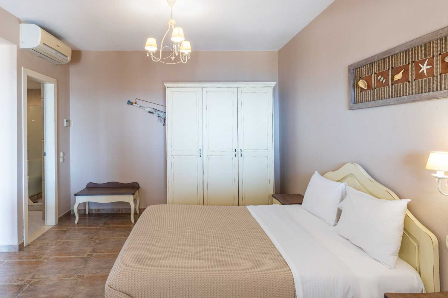 2-værelses lejlighed med terrasse og havudsigt. Soveværelse og kombineret opholdsrum med minikøkken. En dobbeltseng. Mulighed for ekstra opredninger i sovesofa. Minikøkken med kogeplader, køleskab, el-kedel, kaffemaskine, brødrister og enkelt køkkenudstyr. Gratis wifi, aircondition og deponering. Tv med lokale kanaler. Hårtørrer. Badeværelse med bruser og toilet. Rengøring 6 gange om ugen.