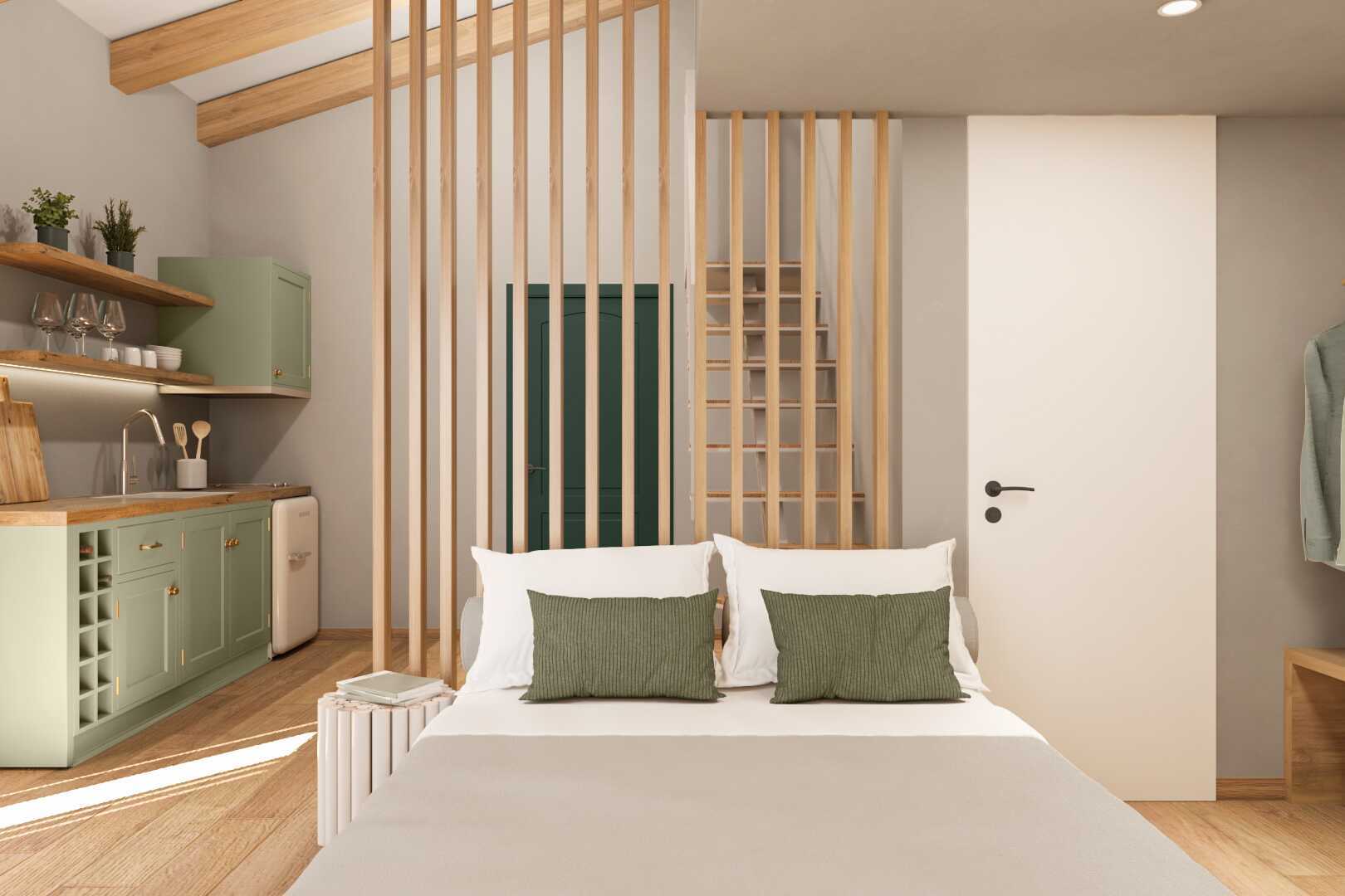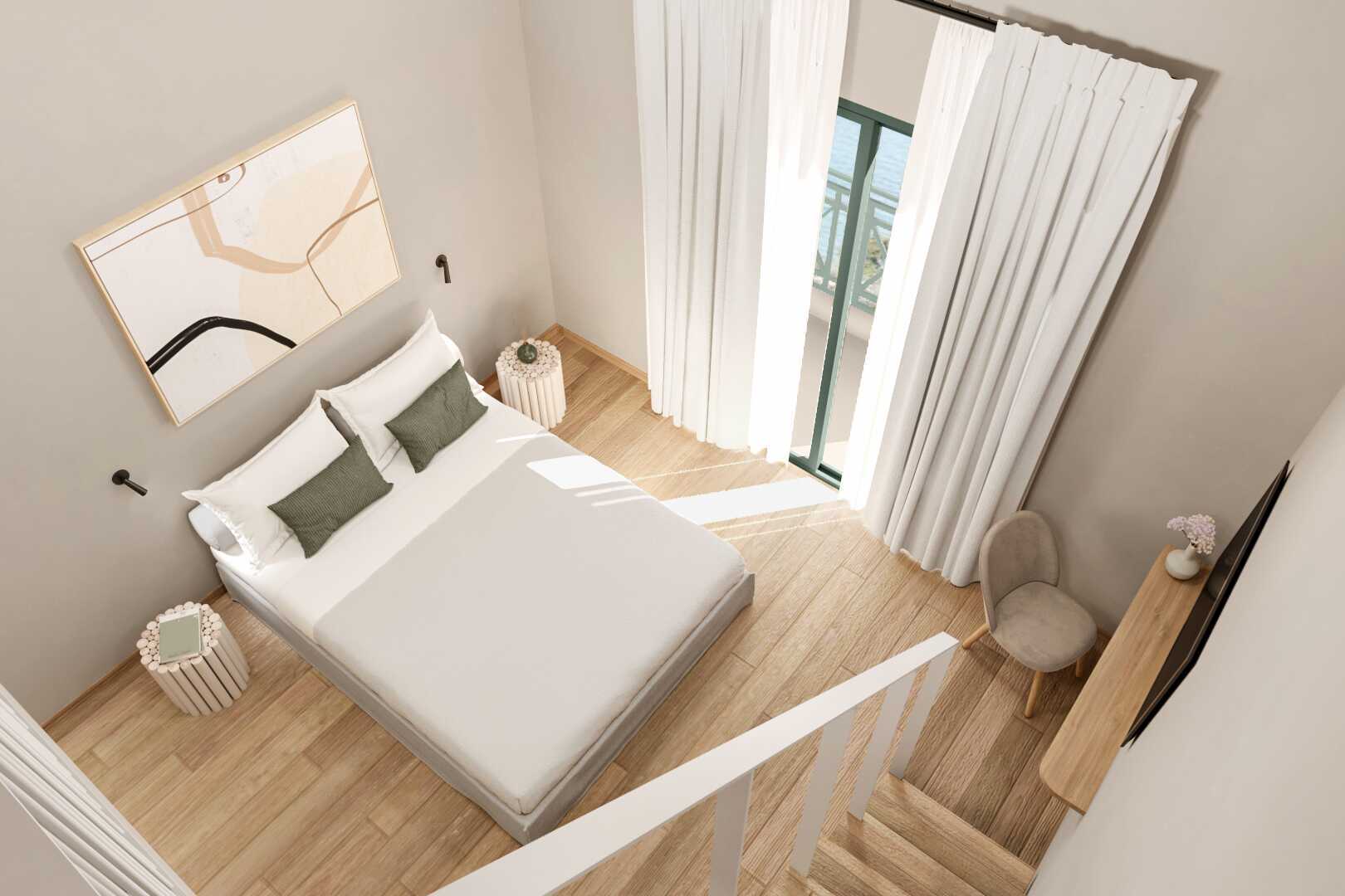 Renoveret 1-værelses lejlighed i etage med balkon og havudsigt. I entréplan er der et opholdsrum med en dobbeltseng og et minikøkken, og ovenpå er der en hems med to enkeltsenge. Minikøkken med kogeplader, køleskab, el-kedel, kaffemaskine, brødrister og enkelt køkkenudstyr. Gratis wifi, aircondition og deponering. Tv med lokale kanaler. Hårtørrer. Badeværelse med bruser og toilet. Rengøring 6 gange om ugen.