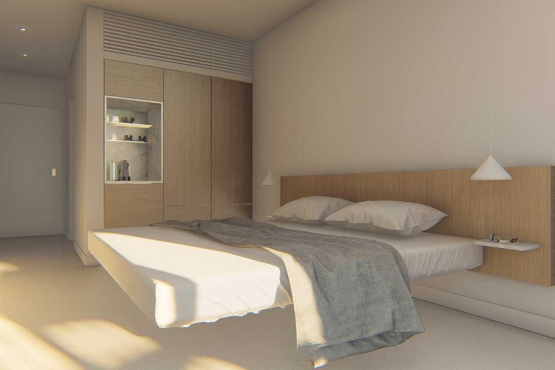 Dobbeltværelser med balkon eller terrasse med havudsigt. En dobbeltseng. Gratis wifi, aircondition og deponering. Køleskab. Tv med internationale kanaler. El-kedel og kaffe/te. Badekåber og tøfler. Hårtørrer. Badeværelse med bruser og toilet. Rengøring 7 gange om ugen.