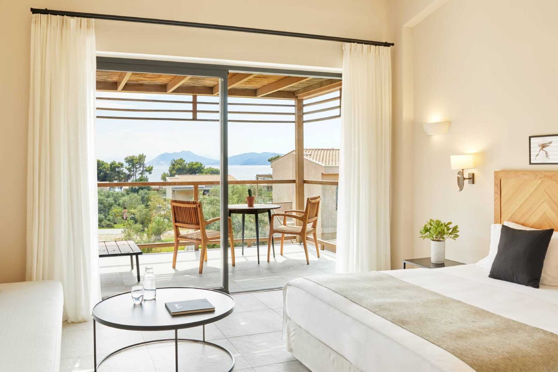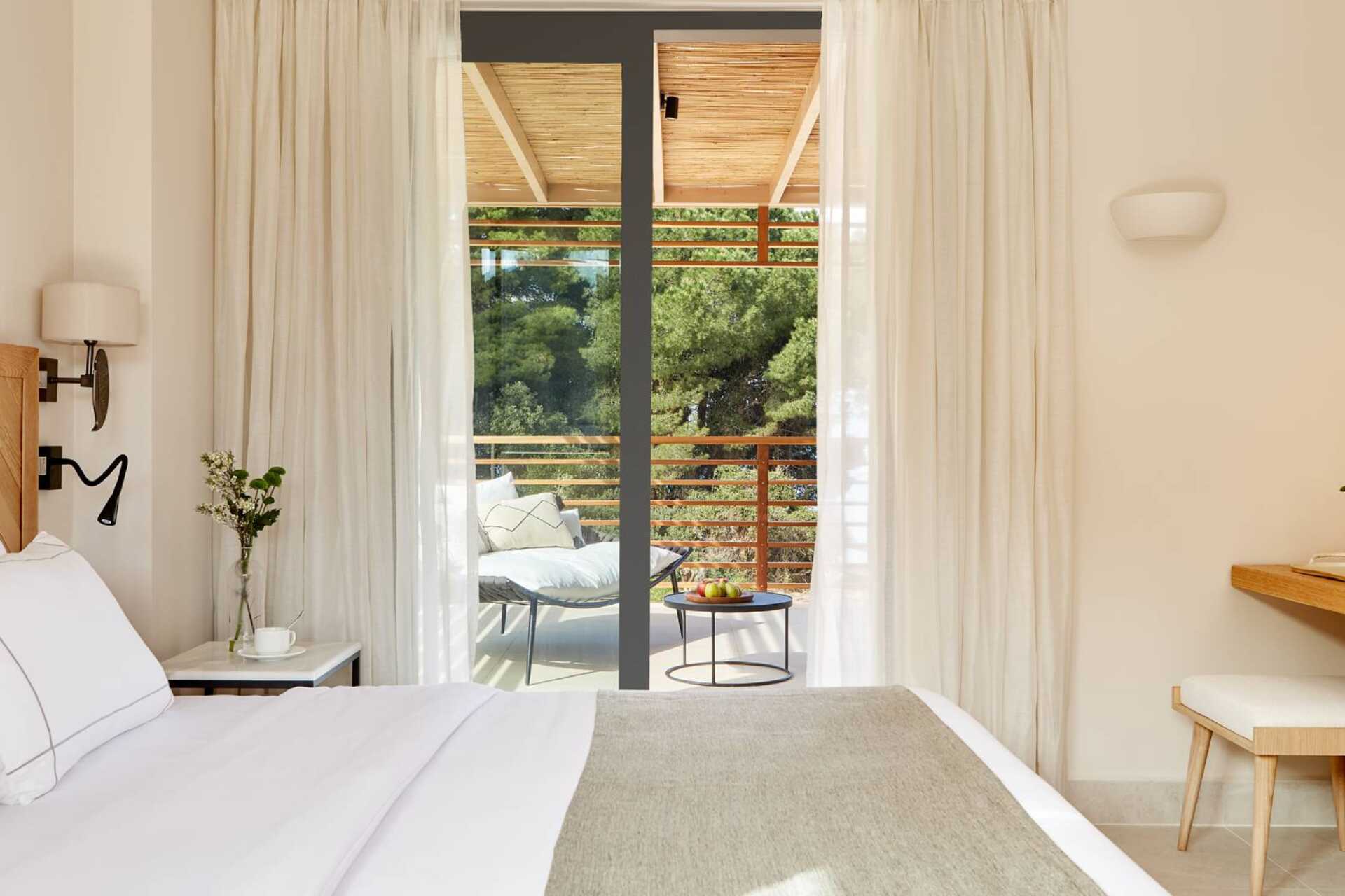 Dobbeltværelse med balkon eller terrasse. Værelserne ligger i Xenia, som er hotellets hovedbygning. En dobbeltseng. Mulighed for ekstra opredning. Pudemenu. Gratis wifi, aircondition og deponering. Køleskab. Nespresso-maskine og el-kedel. Tv med internationale kanaler. Hårtørrer. Badeværelse med bruser og toilet. Rengøring 7 gange om ugen.