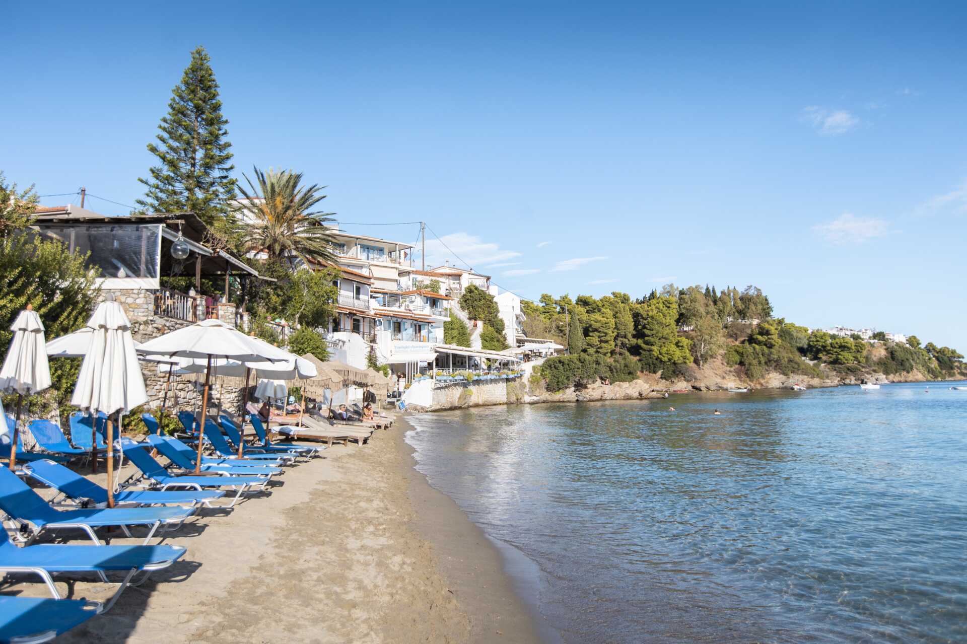 I udkanten af Skiathos by ligger den populære strand Megali Ammos med vandsportsaktiviteter og tavernaer.