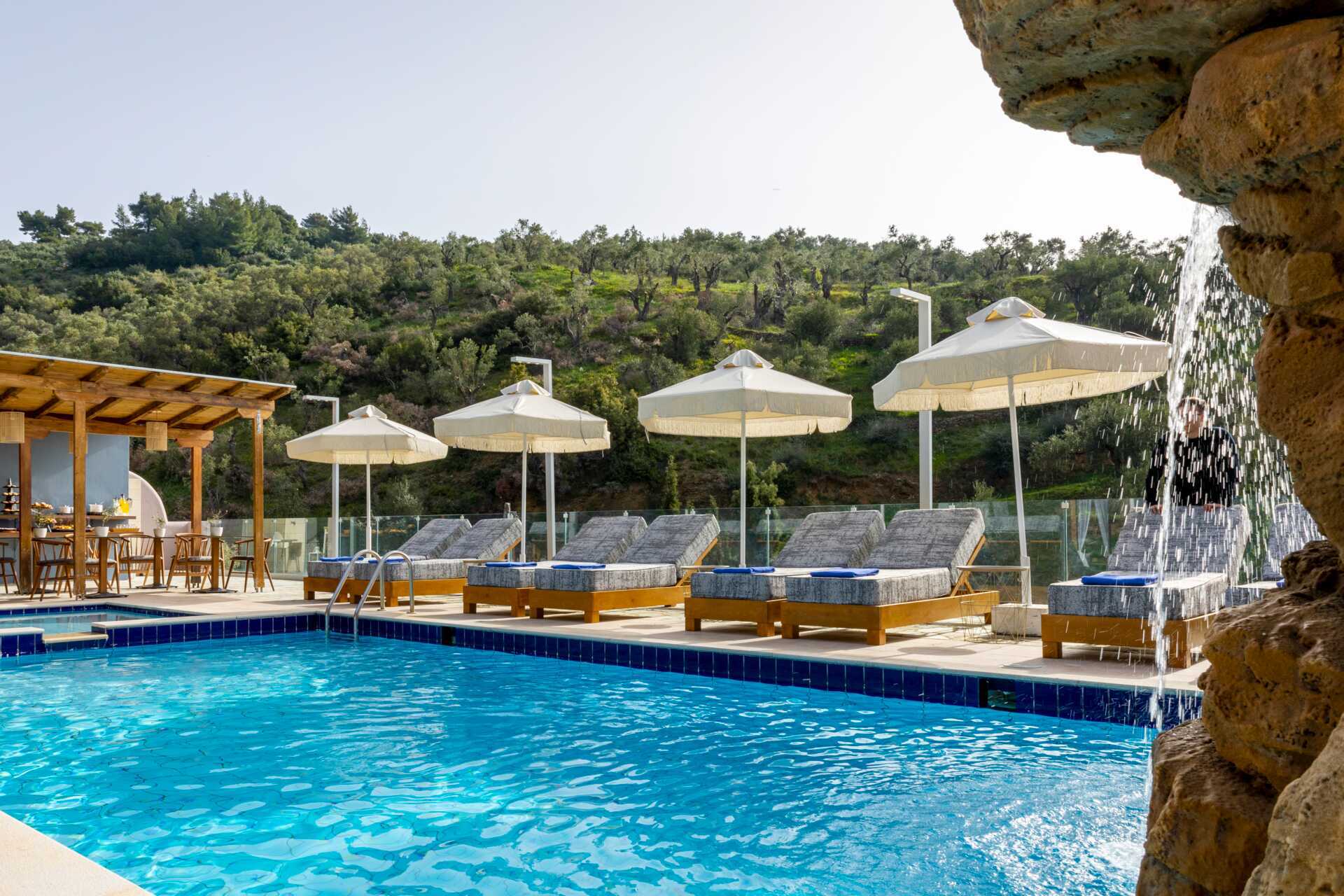 Hotel Avaton Suites & Villas har et poolområde med pool, solstole med ekstra komfortable madrasser og parasoller samt pool- og strandhåndklæder. Pool- og snackbar til lettere måltider og kolde drikkevarer.
