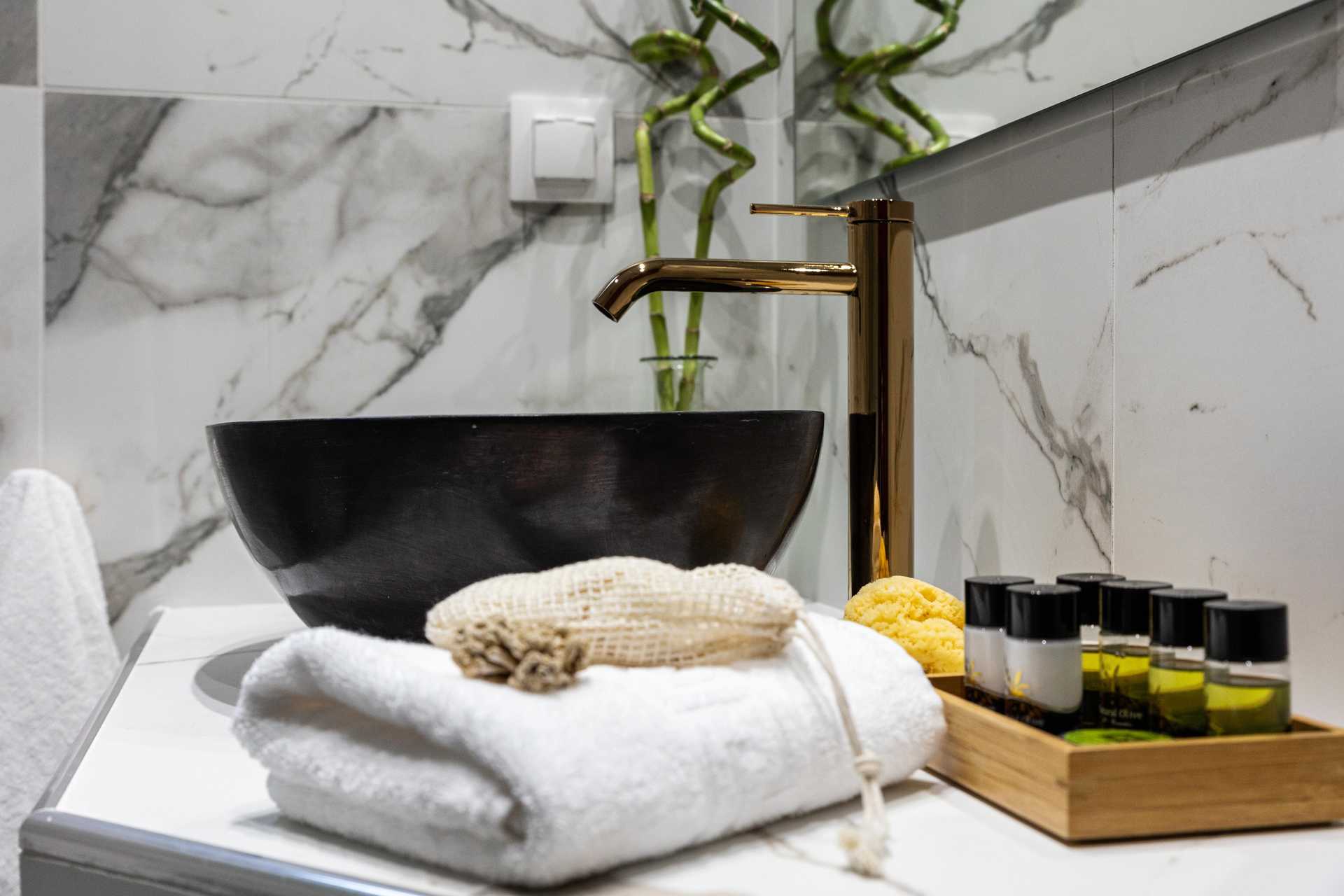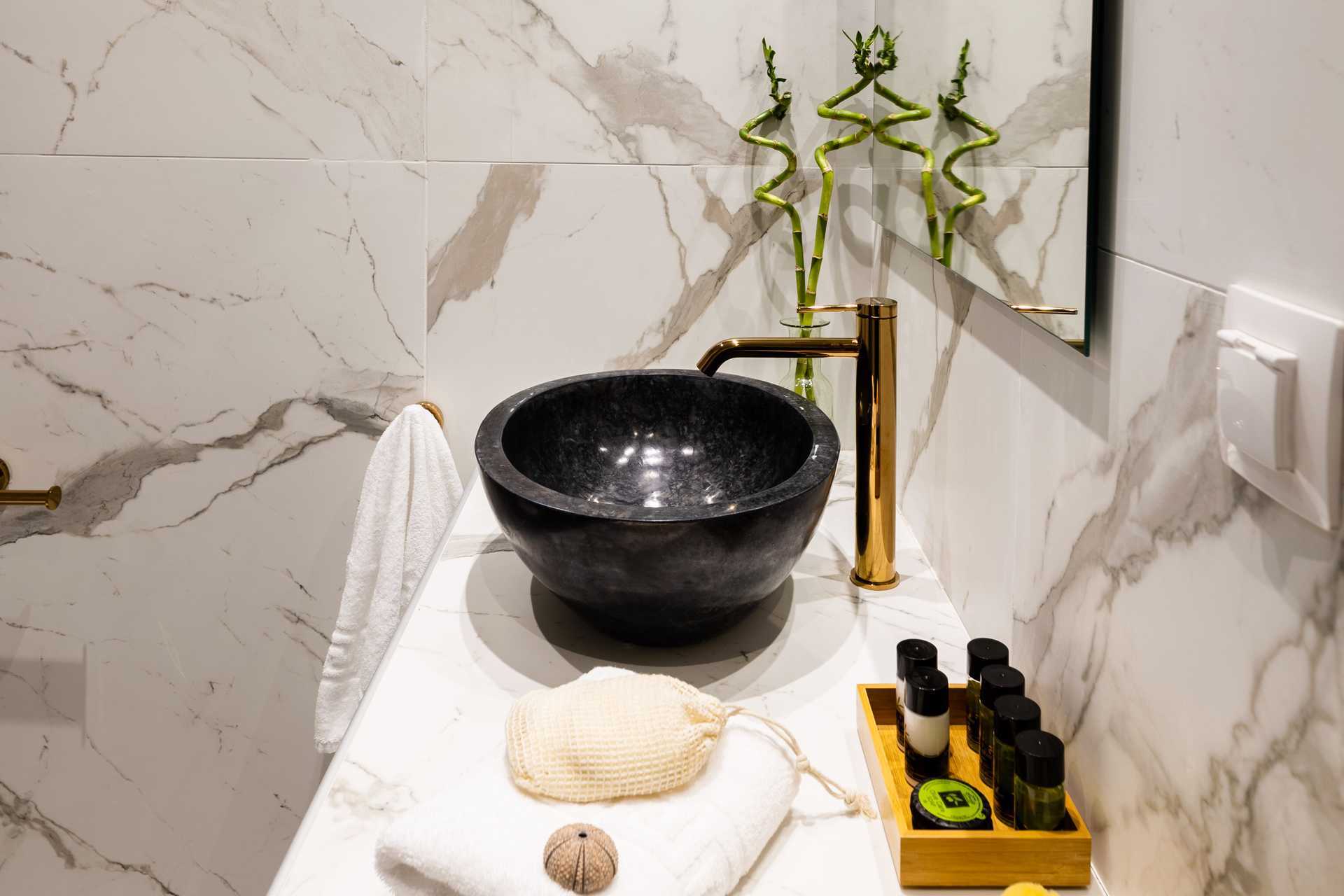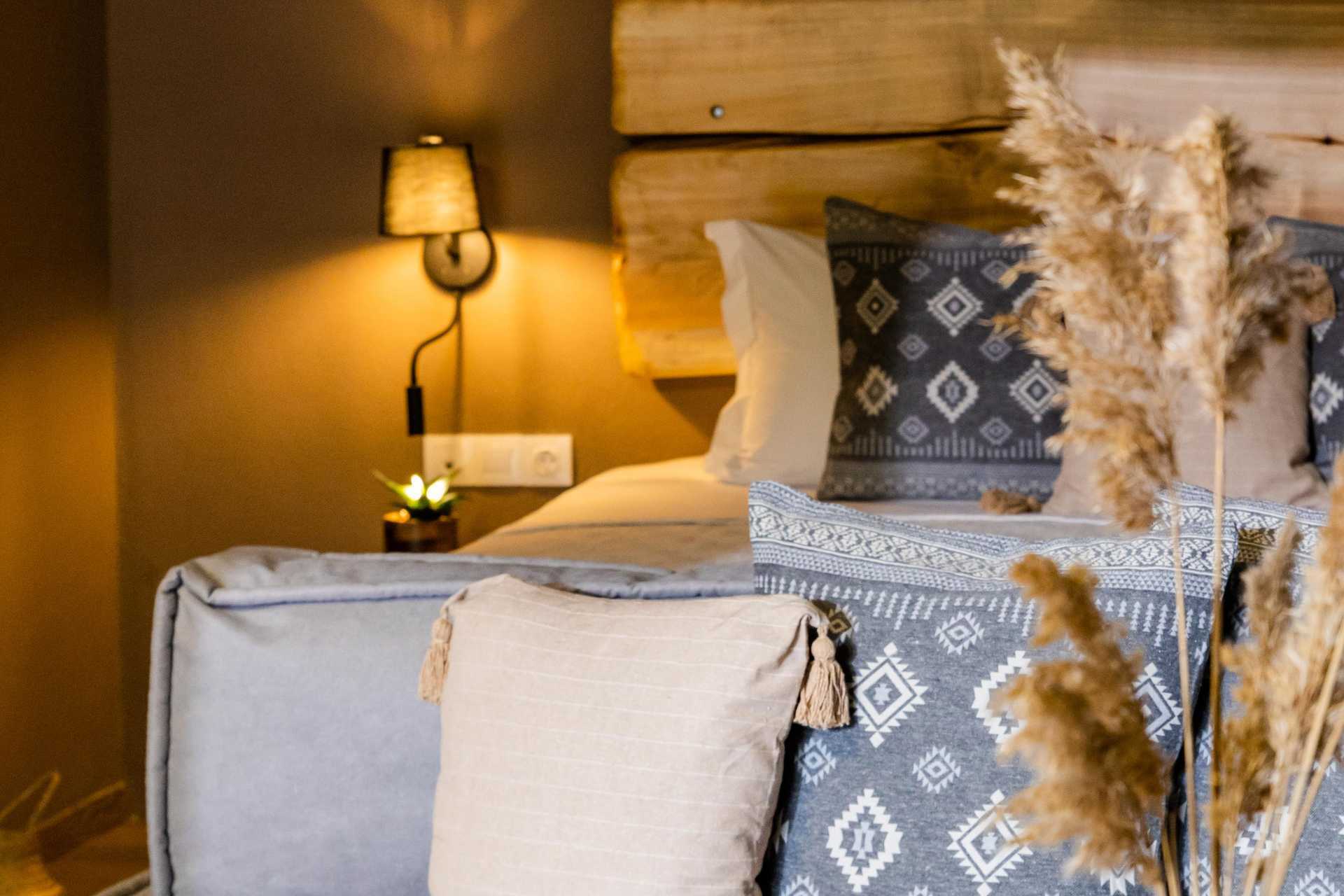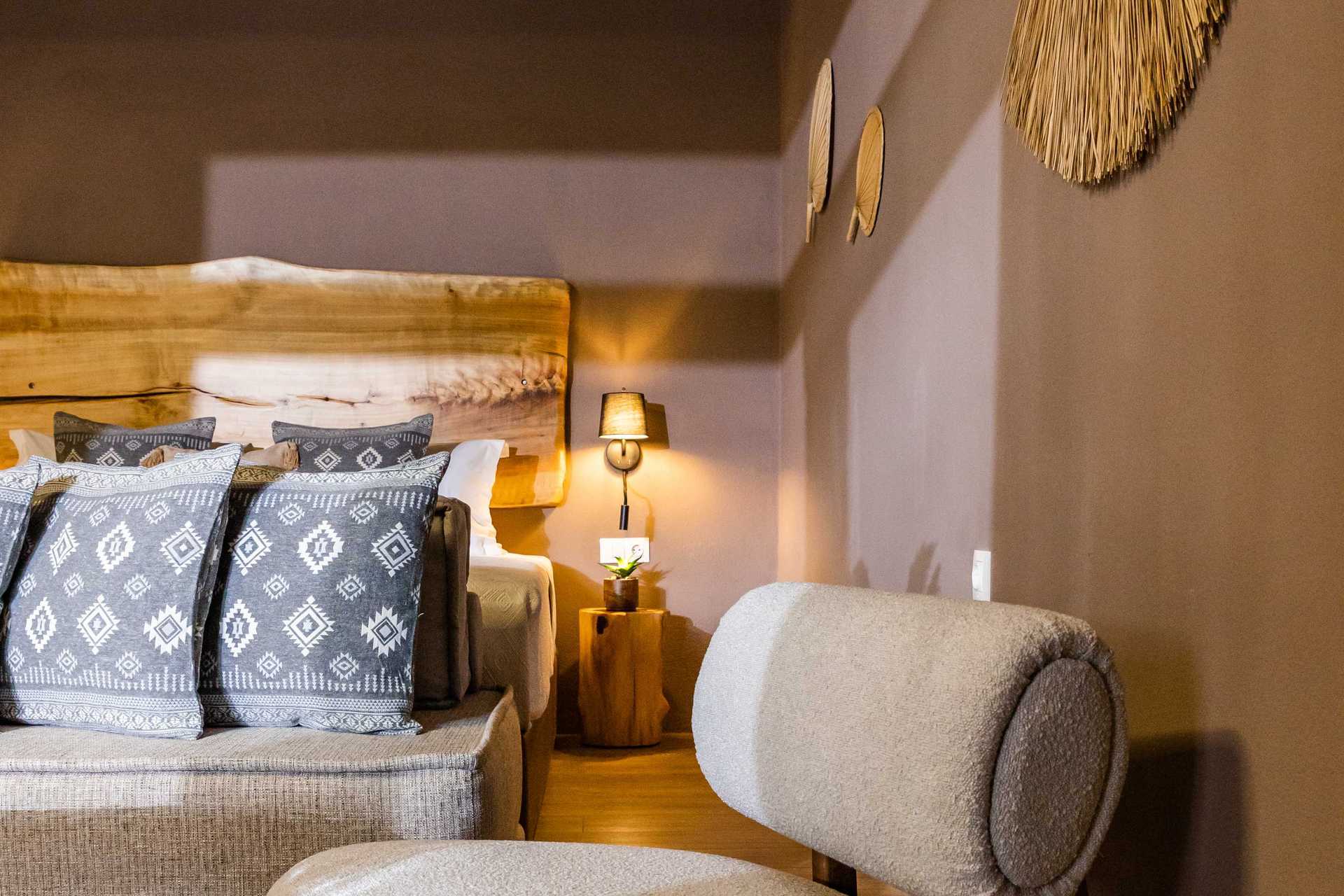 Suite med balkon i stueplan. Der er en privat jacuzzi på balkonen i stueetagen. En dobbeltseng eller to enkeltsenge. Opholdsrum med mulighed for ekstra opredning i sovesofa. Gratis wifi, aircondition og deponering. Minibar. El-kedel og kaffe/te. Espressomaskine. Tv med internationale kanaler. Tøfler. Hårtørrer. Badeværelse med bruser og toilet. Rengøring 7 gange om ugen.