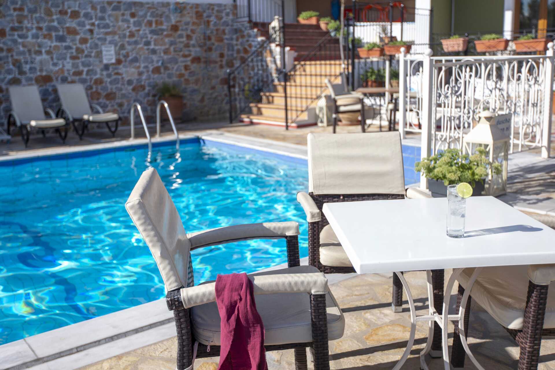 Dejligt poolområde, som deles med nabohotellet Fiorella Sea View. Solstole og parasoller.