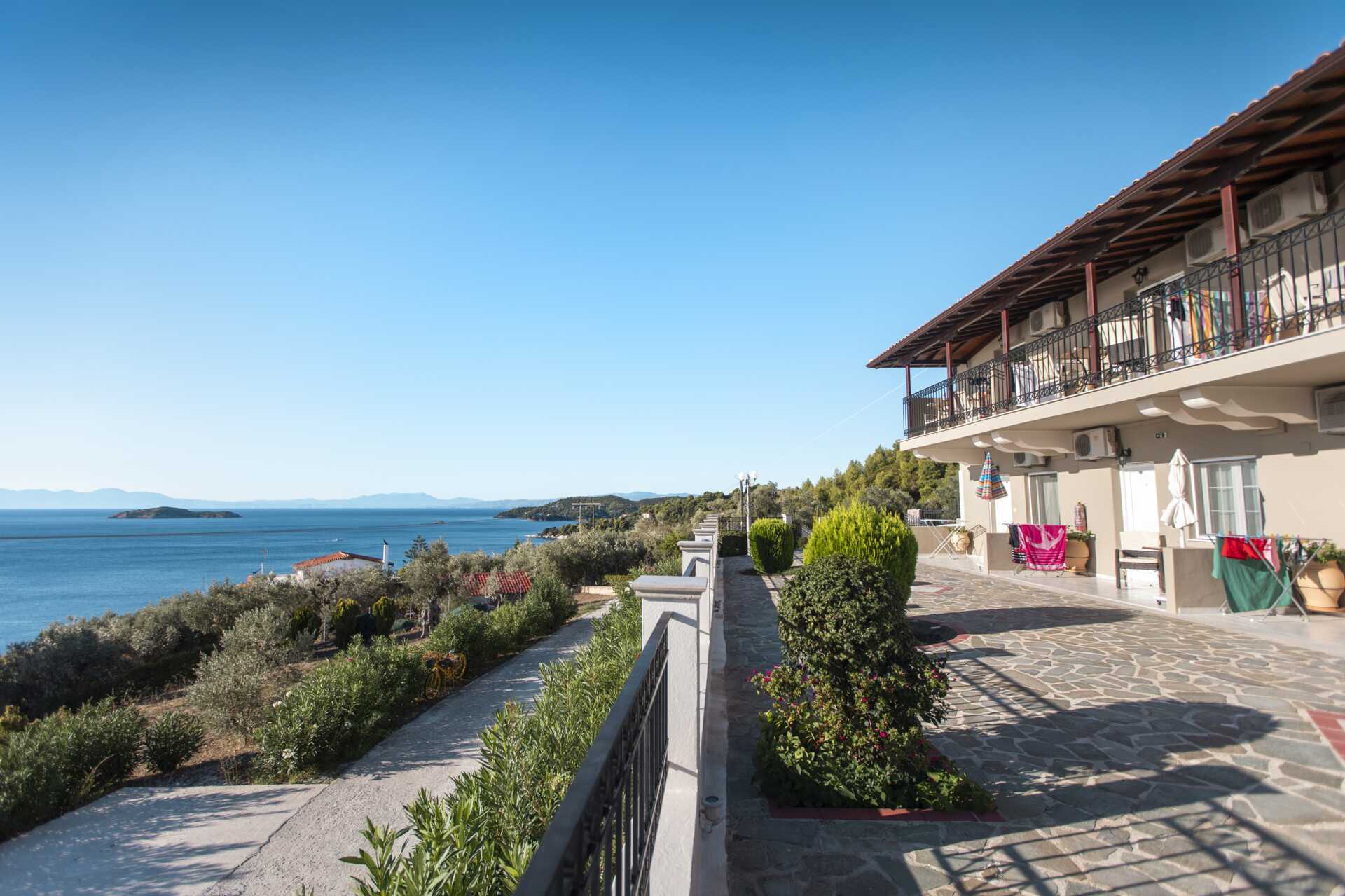 Hotel Elias er et pænt lejlighedshotel beliggende højt i rolige omgivelser i udkanten af Megali Ammos. Gå en tur til skønne strandområder eller tag på en kort bustur til Skiathos by med restauranter, butikker og smalle stræder.