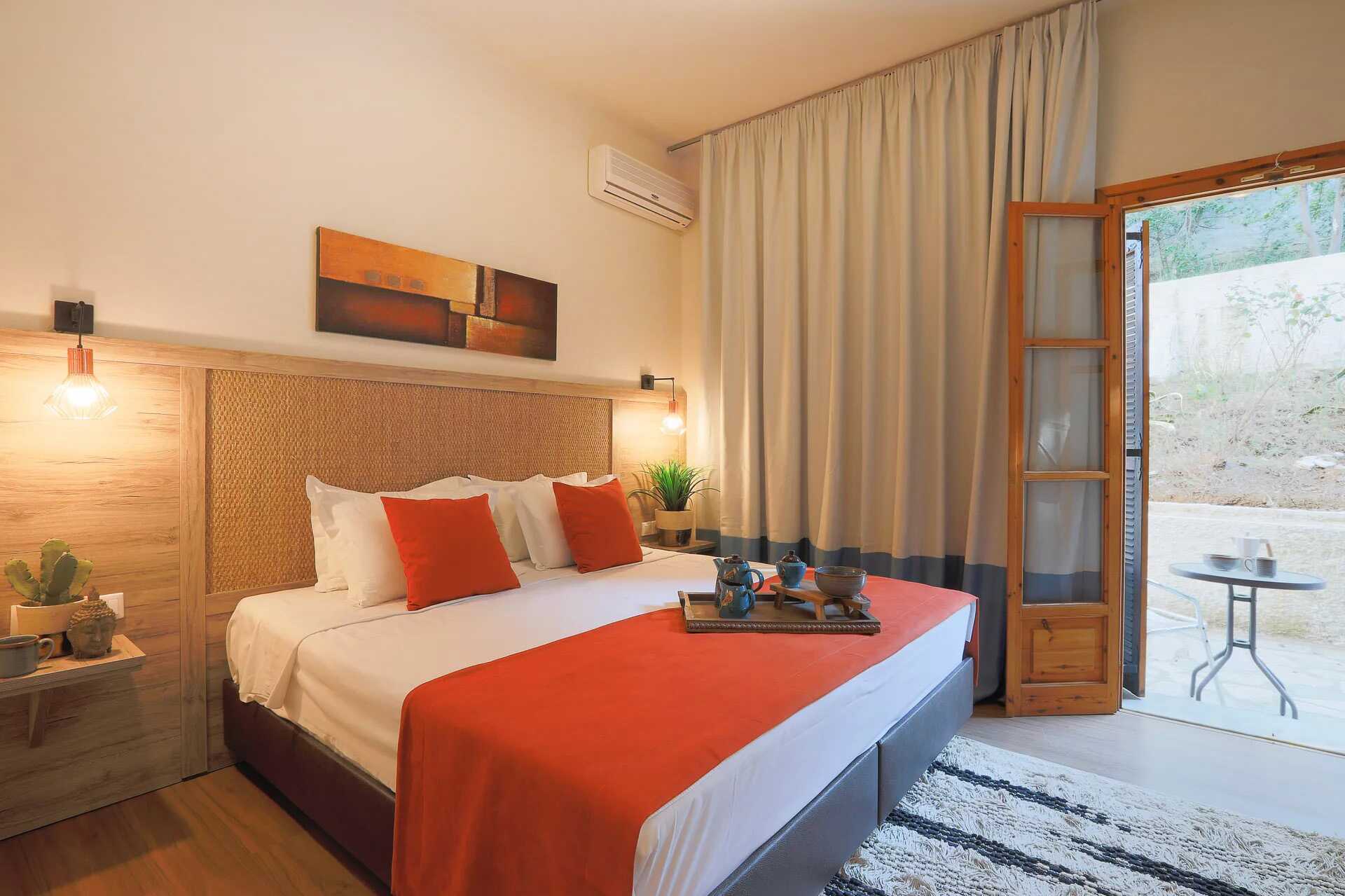 Dobbeltværelse med balkon eller terrasse. En dobbeltseng eller to enkeltsenge. Gratis wifi, aircondition og deponering. Køleskab. Tv med internationale kanaler. Hårtørrer. Badeværelse med bruser og toilet. Rengøring 7 gange om ugen. Børn under to år tæller med i det maksimale antal personer på værelset.