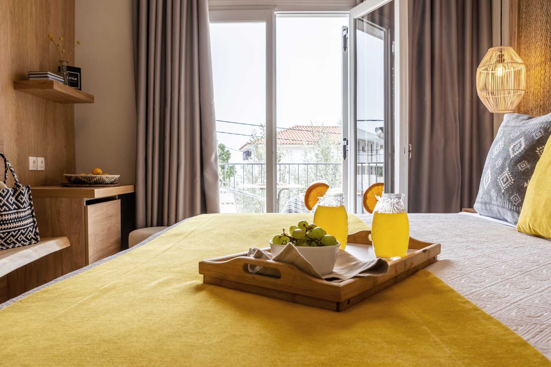 Beliggenheden ved stranden og tæt på skiathos by, området ved morgenmads lokalet perfekt med fin udsigt til havet. værelset stort og fin rengøring,