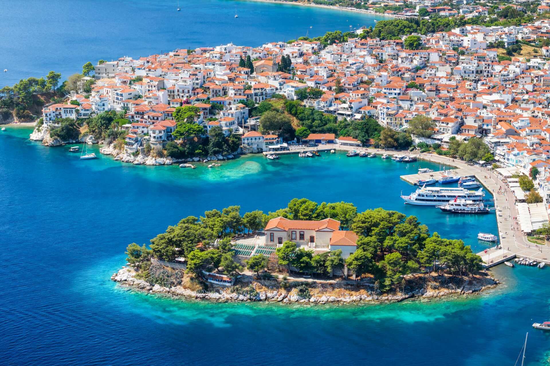 Rejs til Skiathos by til sommer. Med sine charmerende stræder, livlige havn og nærhed til gyldne strande er Skiathos by den perfekte base for din ferie. Her blandes traditionel græsk atmosfære med moderne feriestemning, og du kan nyde tavernaer, shopping og natteliv, alt sammen inden for gåafstand!