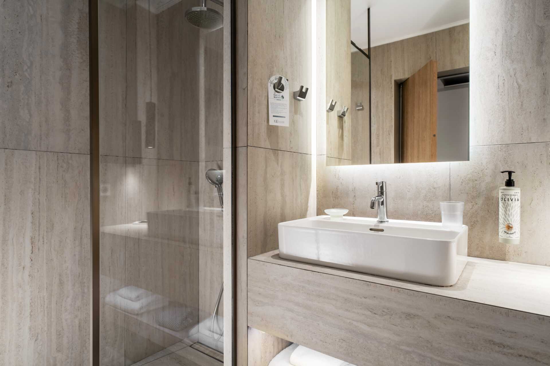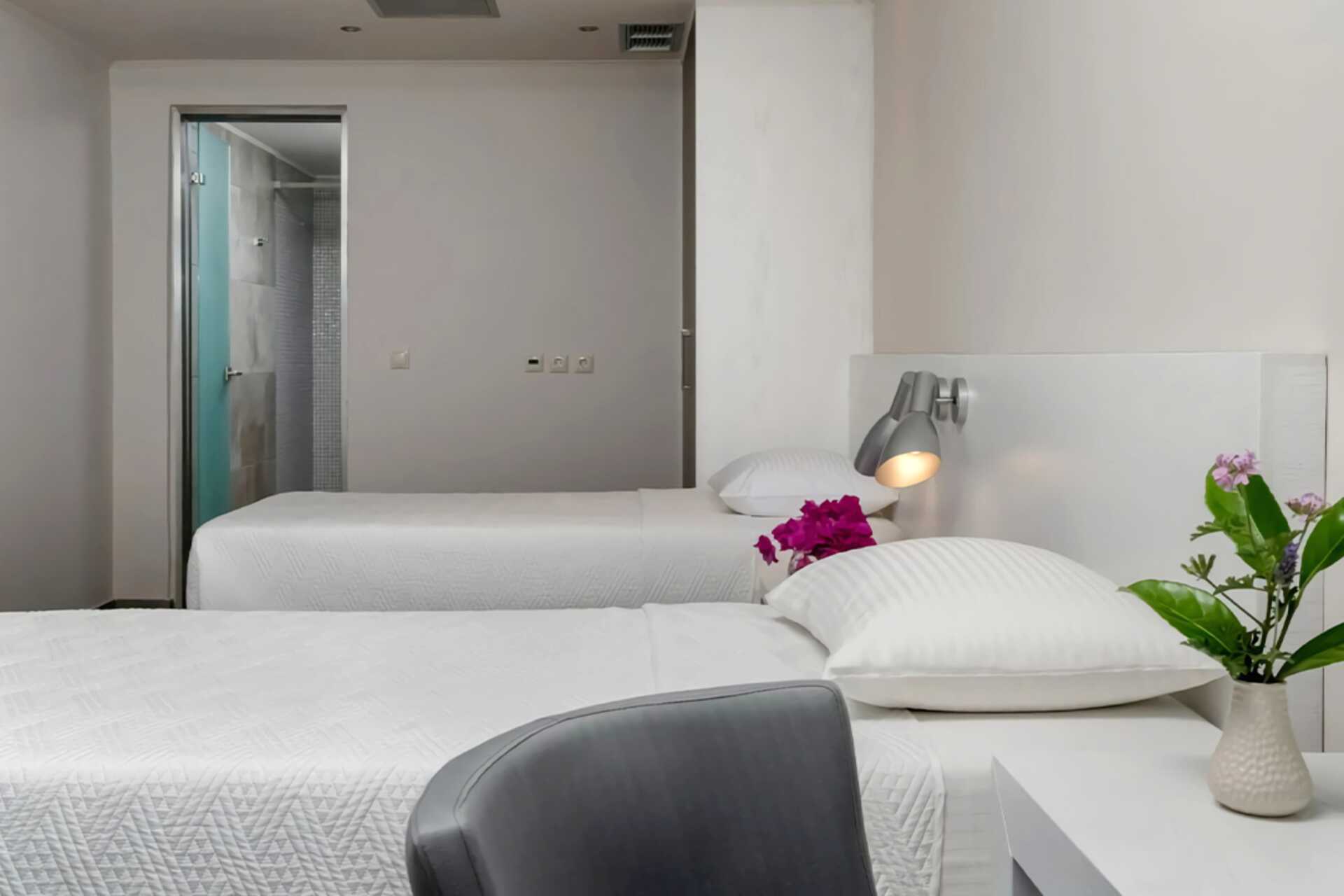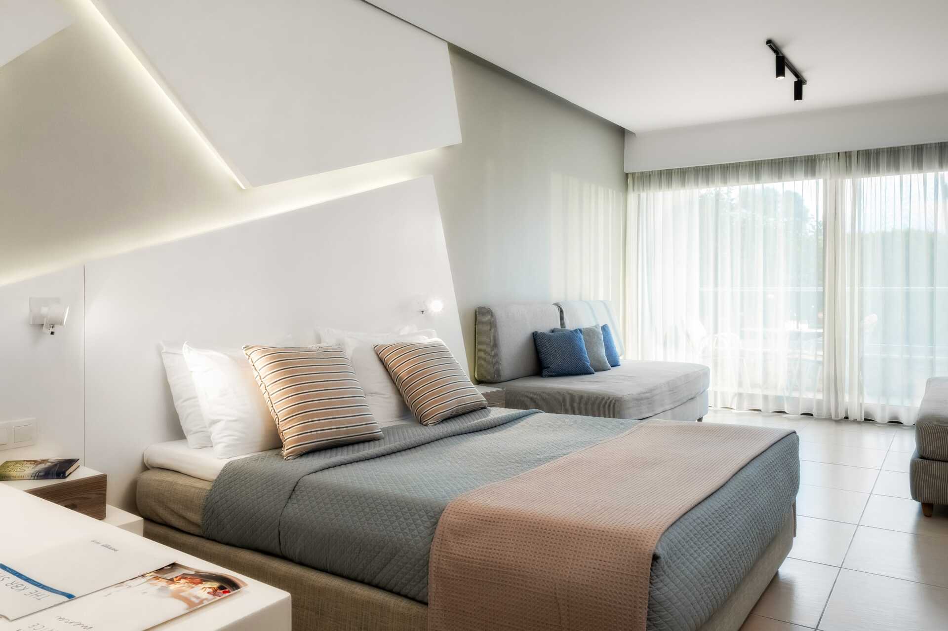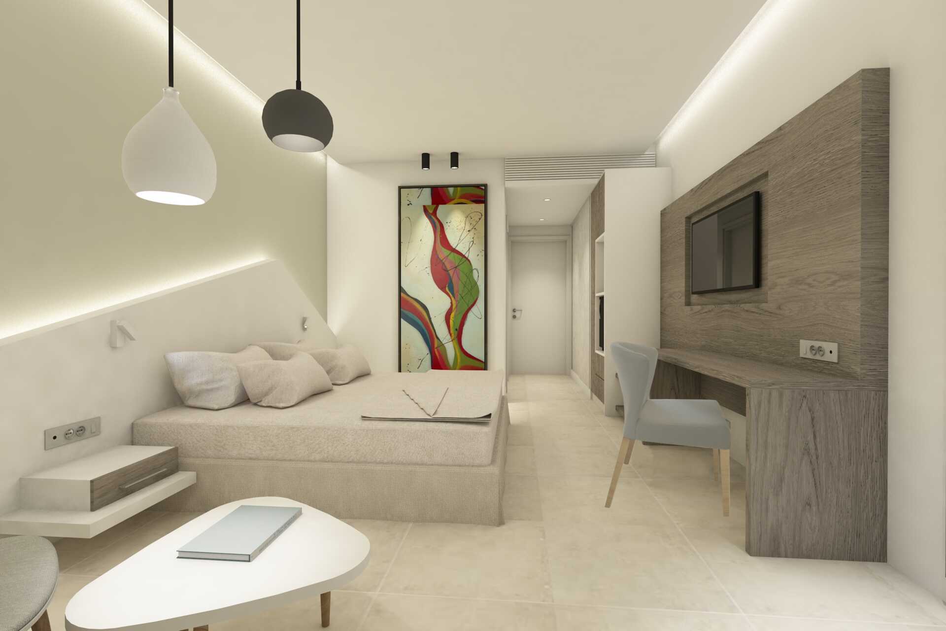 Renoveret dobbeltværelse med terrasse i stueplan alternativt, balkon eller terrasse, nogle med havudsigt. En dobbeltseng eller to enkeltsenge. Gratis wifi, aircondition og deponering. Køleskab og el-kedel. Tv med internationale kanaler. Hårtørrer. Tøfler. Badeværelse med bruser og toilet. Rengøring 7 gange om ugen. Børn under to år tæller med i det maksimale antal personer på værelset. Billederne er skitser og vil blive opdateret, så snart Apollo modtager rigtige billeder fra hotellet. Skitserne kan afvige fra virkeligheden.