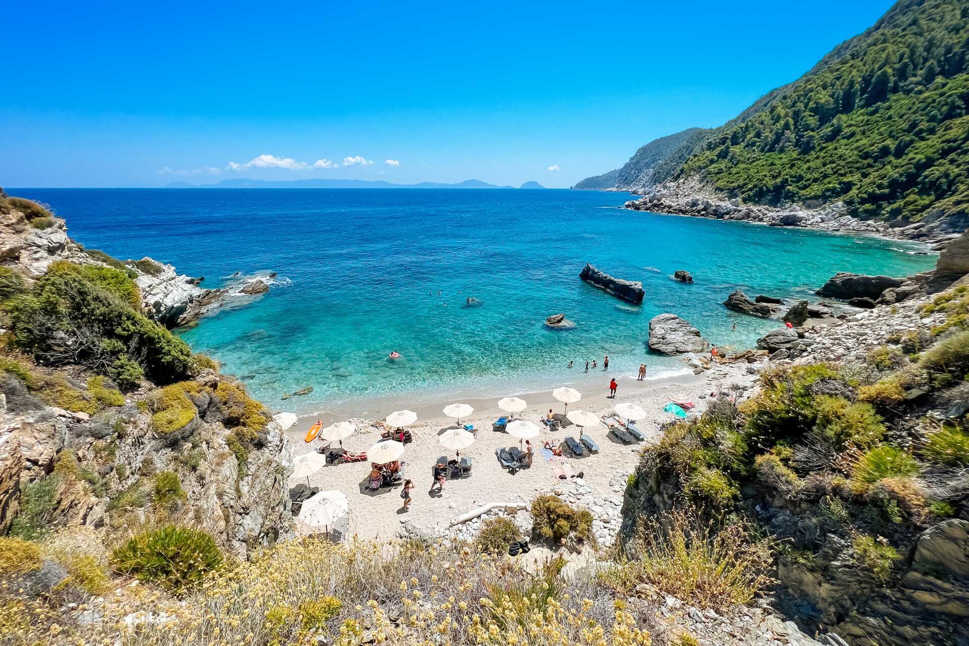 En af de mest berømte strande er Stafilos, som er omkranset af fyrretræer og har både en restaurant og en strandbar. Den nærliggende strand Velanio er øens officielle nudiststrand. 10 kilometer fra Skopelos by ligger Limnonari, som er en dejlig strand med god strandservice. Kastani ligger lige under 20 kilometer fra byen, og der er også en dejlig strand her. På nordkysten er der også flere gode strande inden for rækkevidde. Her kan du læse mere om Skopelos' fineste strande.