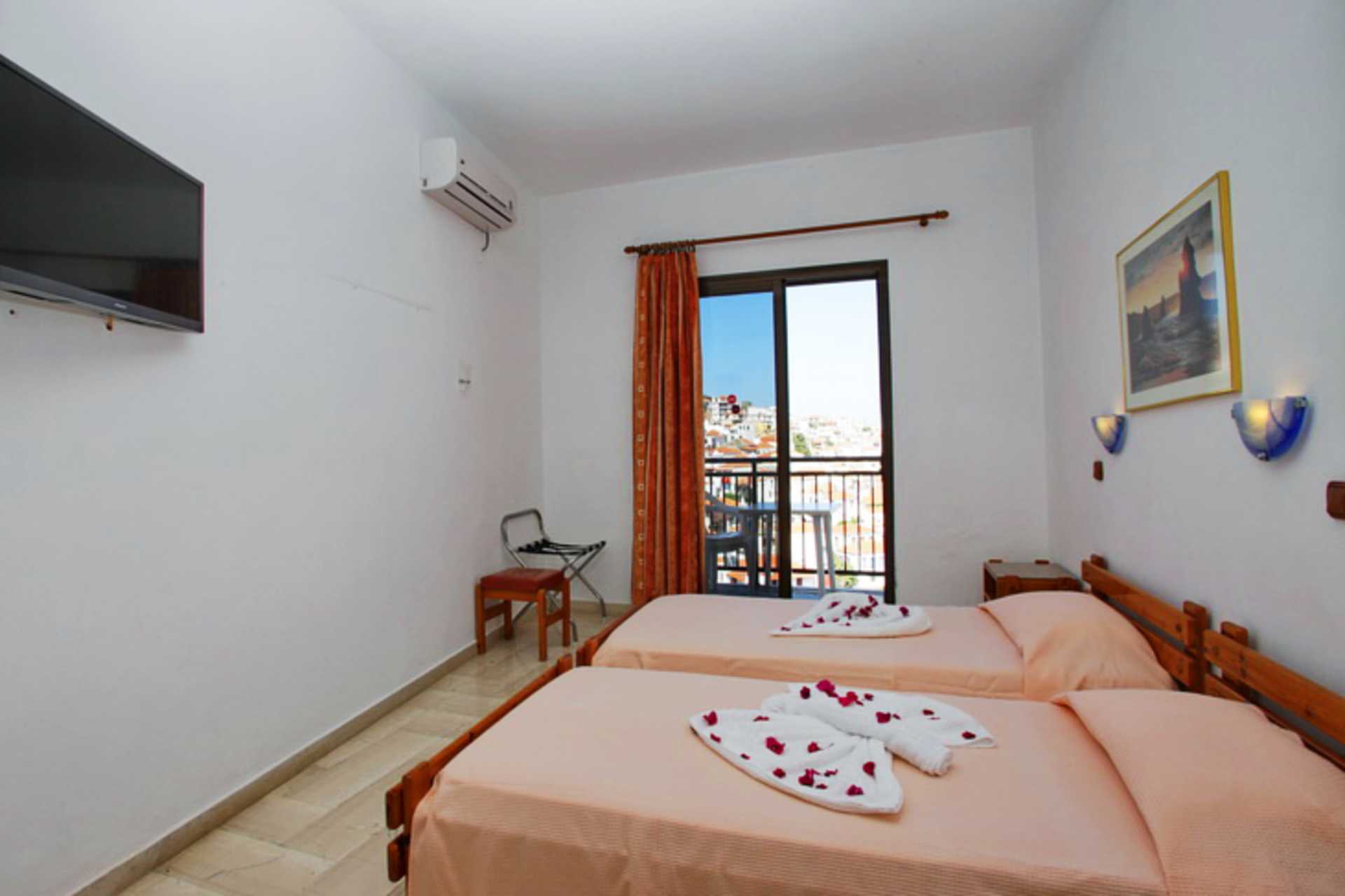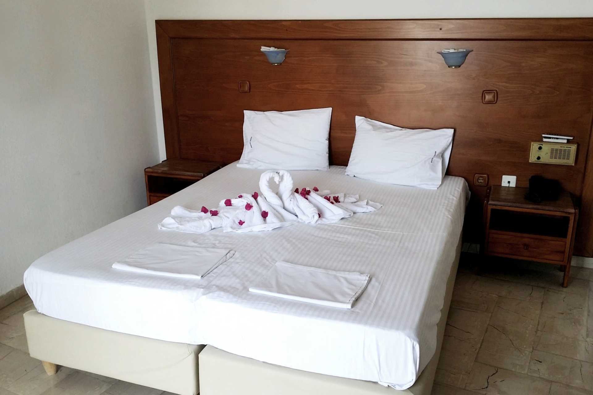 Dobbeltværelser med balkon eller terrasse. To enkeltsenge. Køleskab. Gratis wifi, aircondition og deponering. Tv med lokale kanaler. Hårtørrer. Badeværelse med bruser og toilet. Rengøring 6 gange om ugen.