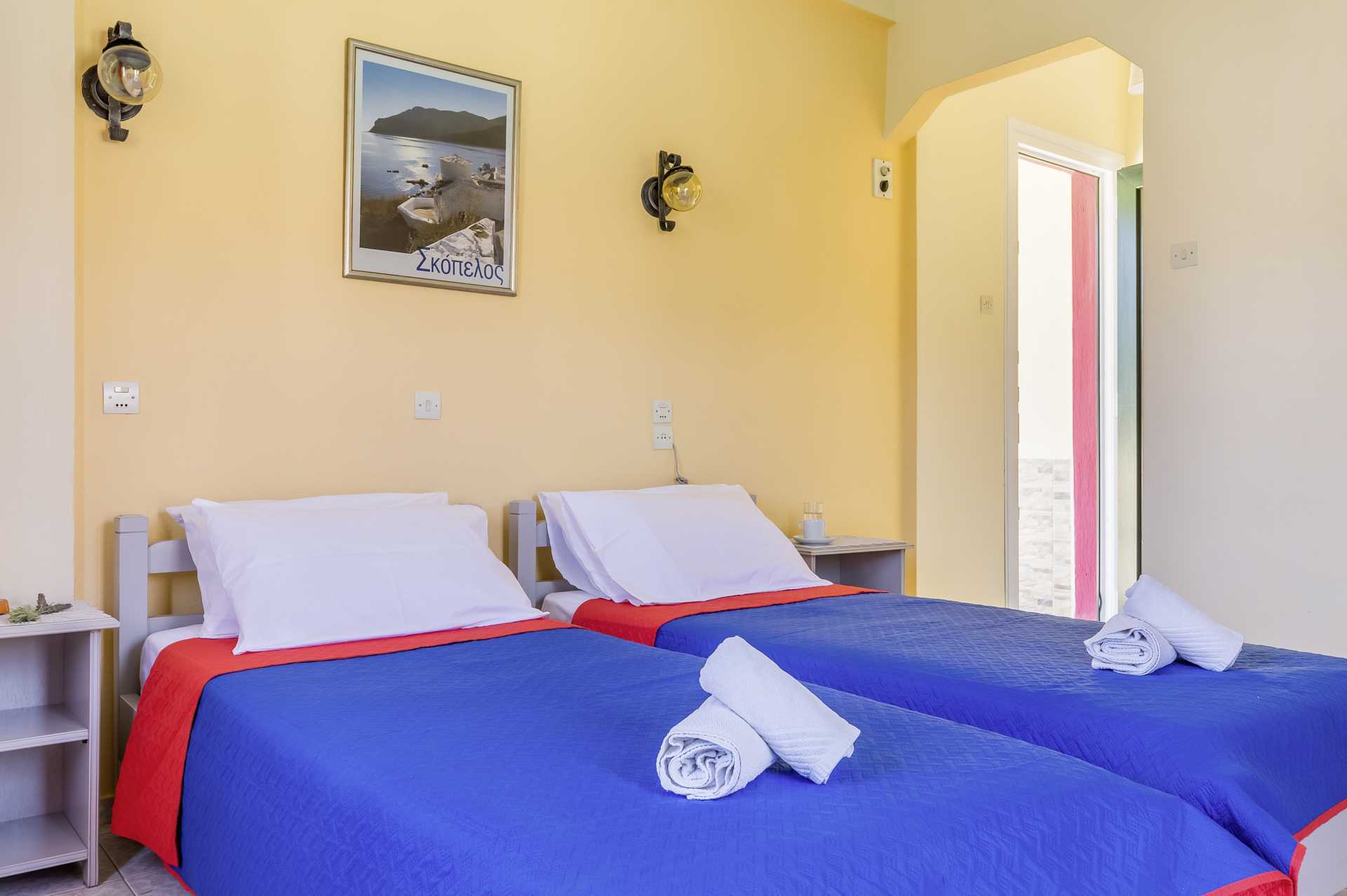 Dobbeltværelse med balkon. To enkeltsenge. Mulighed for ekstra opredning i fold ud-seng. Gratis wifi. Aircondition og deponering mod betaling. Køleskab. El-kedel. Tv med lokale kanaler. Hårtørrer. Badeværelse med bruser og toilet. Rengøring 7 gange om ugen.