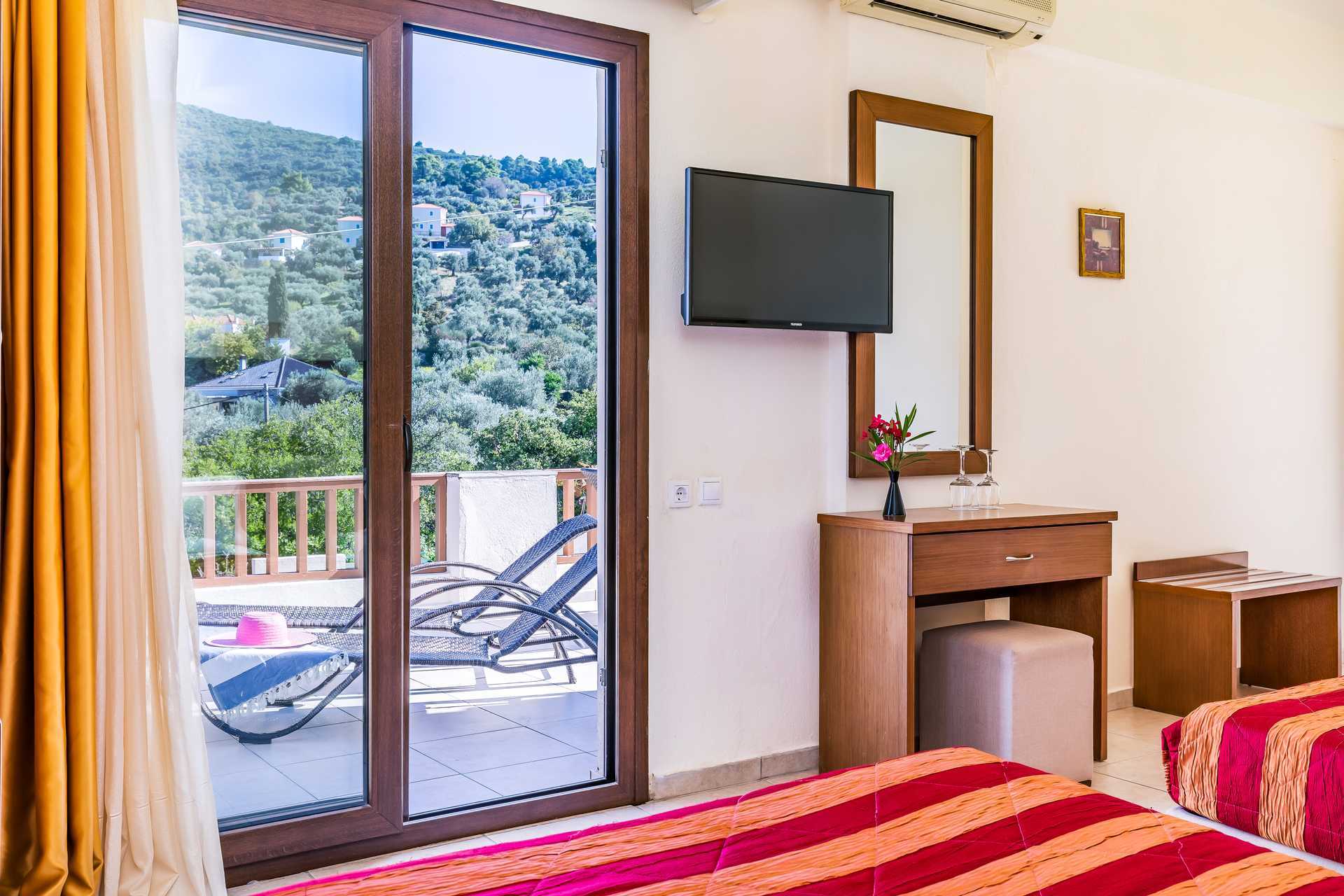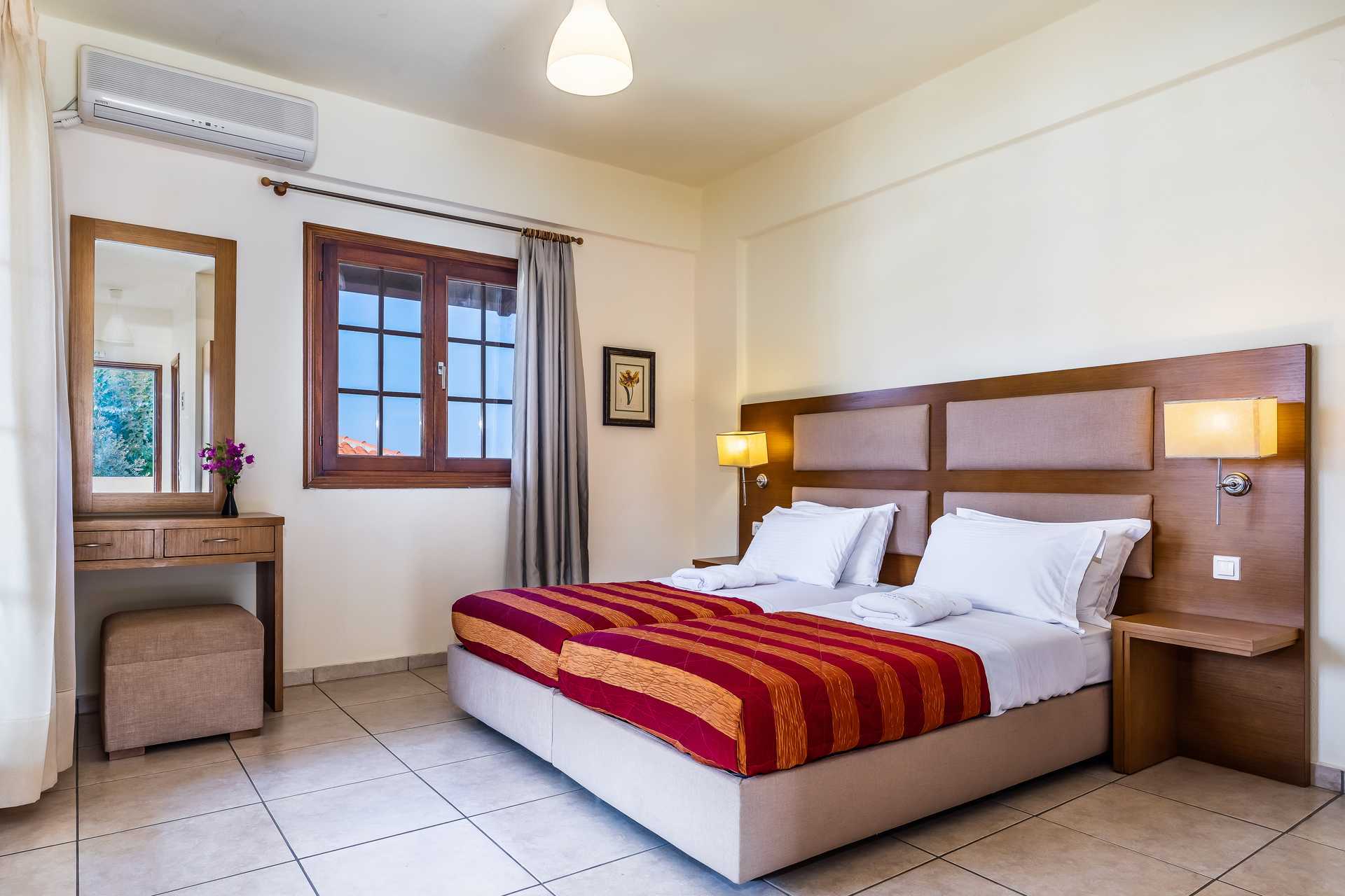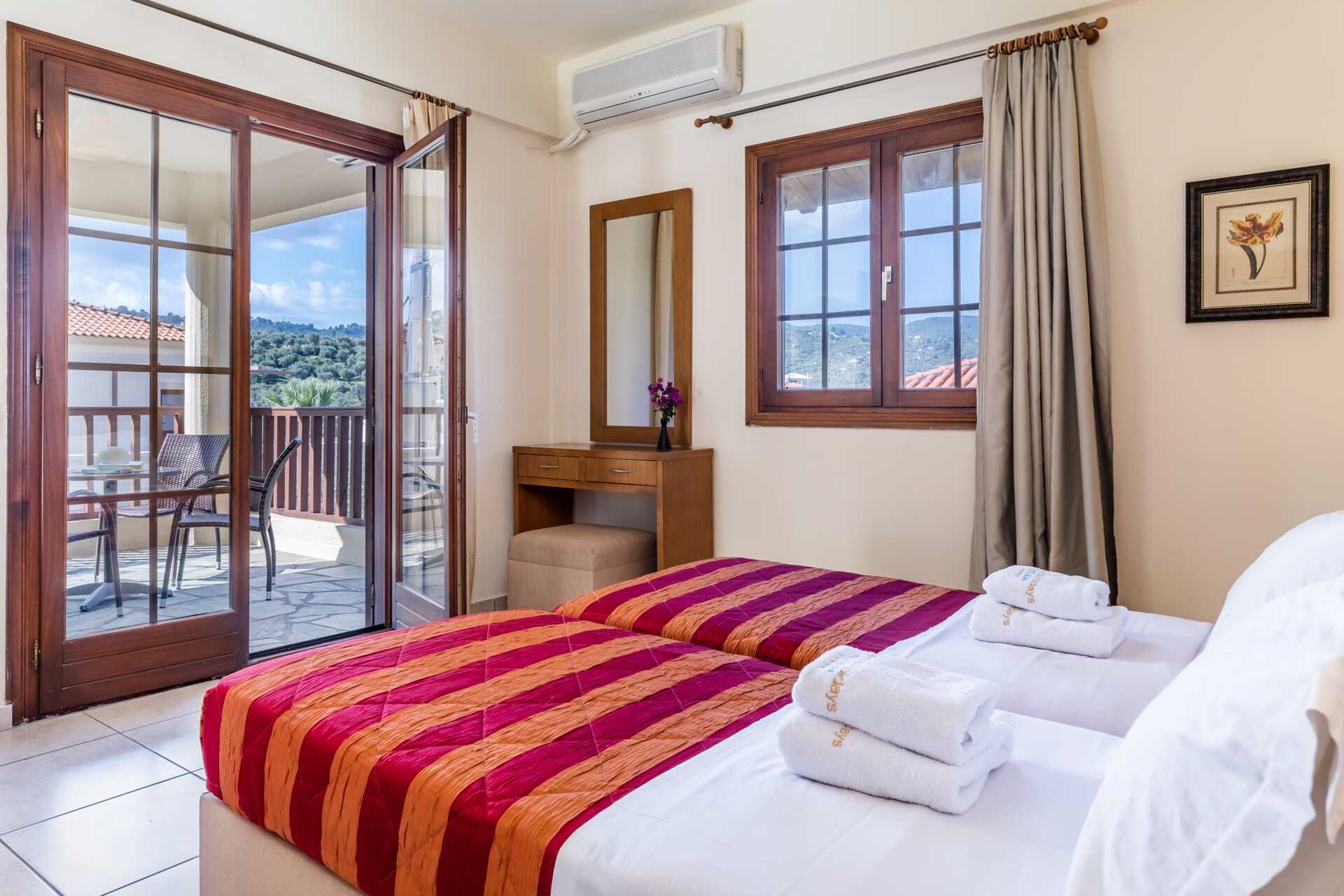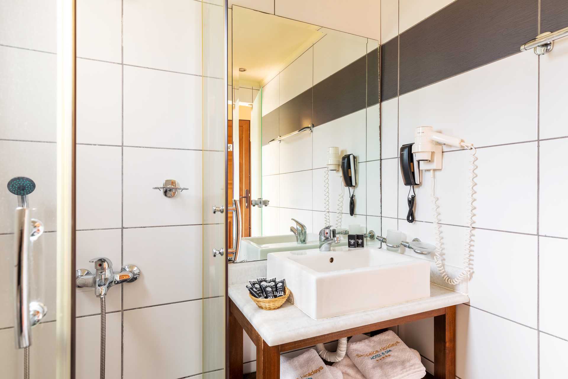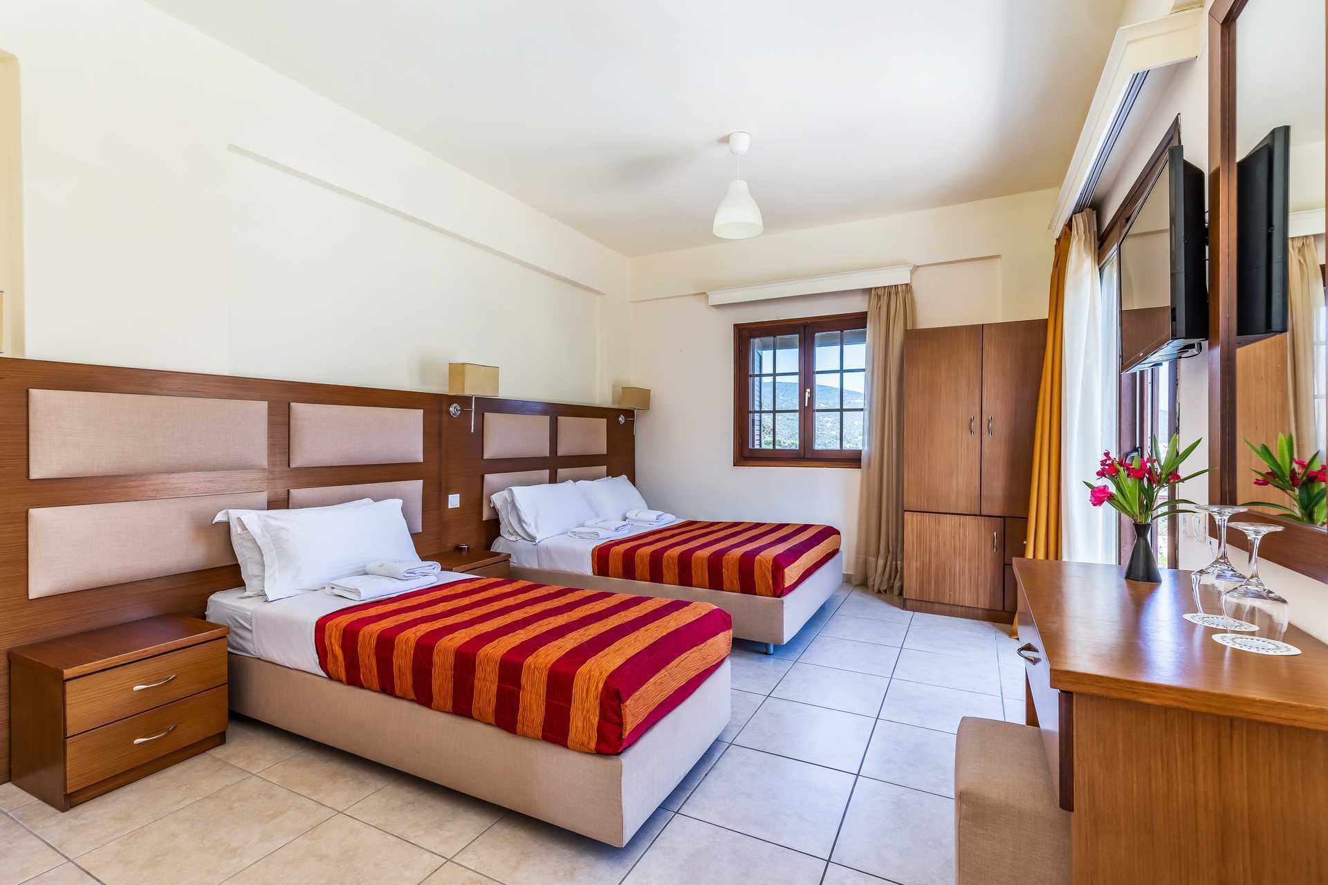 Dobbeltværelser med balkon eller terrasse. En dobbeltseng eller to enkeltsenge. Mulighed for ekstra opredning i fold ud-seng eller i enkeltseng. Gratis wifi, aircondition og deponering. Køleskab. Tv med lokale kanaler. Hårtørrer. Badeværelse med bruser og toilet. Rengøring 7 gange om ugen.