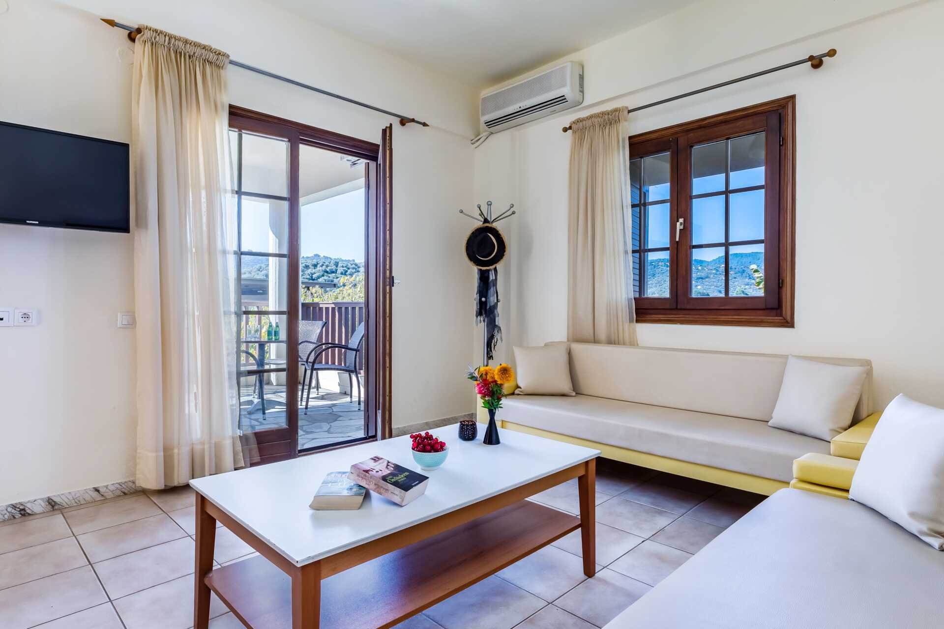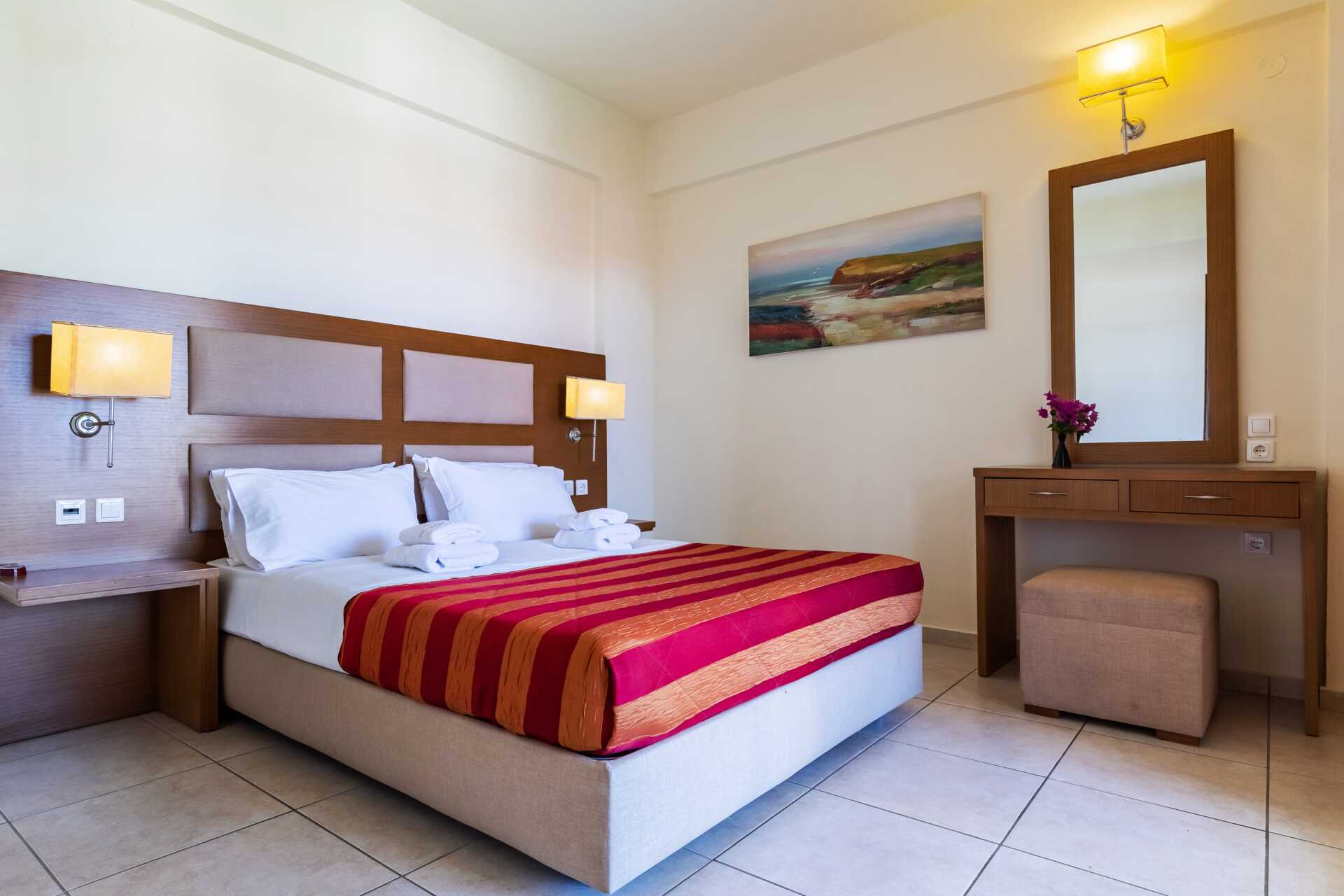 Junior-suiter med balkon eller terrasse. Junior-suiten består af to værelser. Et soveværelse med en dobbeltseng og et opholdsrum med sovesofaer eller to enkeltsenge. Gratis wifi, aircondition og deponering. Køleskab. Et tv med lokale kanaler på hvert værelse. Hårtørrer. Badeværelse med badekar og toilet. Rengøring 7 gange om ugen.aircondition