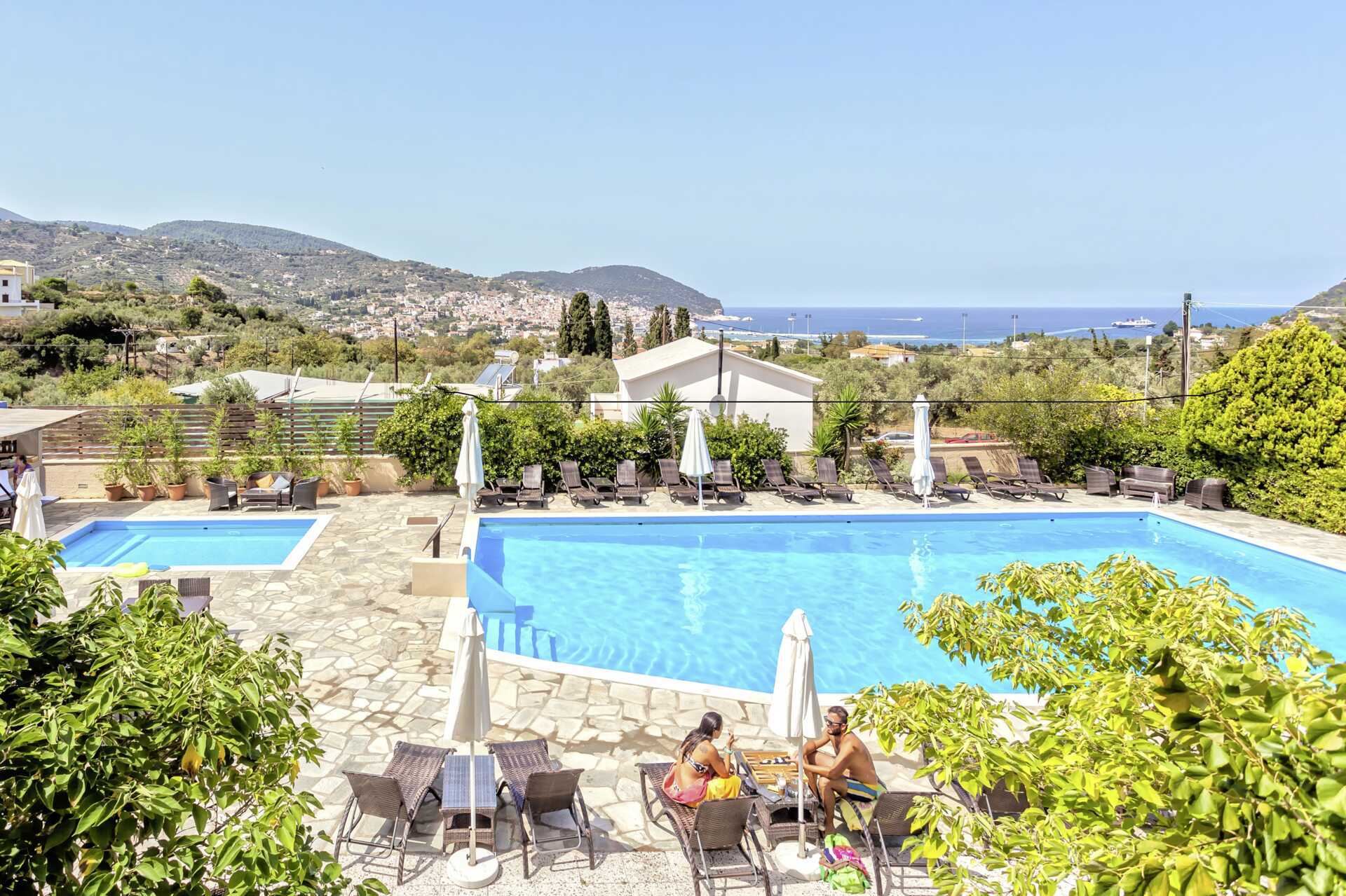 Junior-suiter Premium med balkon eller terrasse og pooludsigt. Junior-suiten består af to værelser. Et soveværelse med en dobbeltseng og et opholdsrum med sovesofaer eller to enkeltsenge. Gratis wifi, aircondition og deponering. Køleskab. Et tv med lokale kanaler på hvert værelse. Hårtørrer. Badeværelse med badekar og toilet. Rengøring 7 gange om ugen.