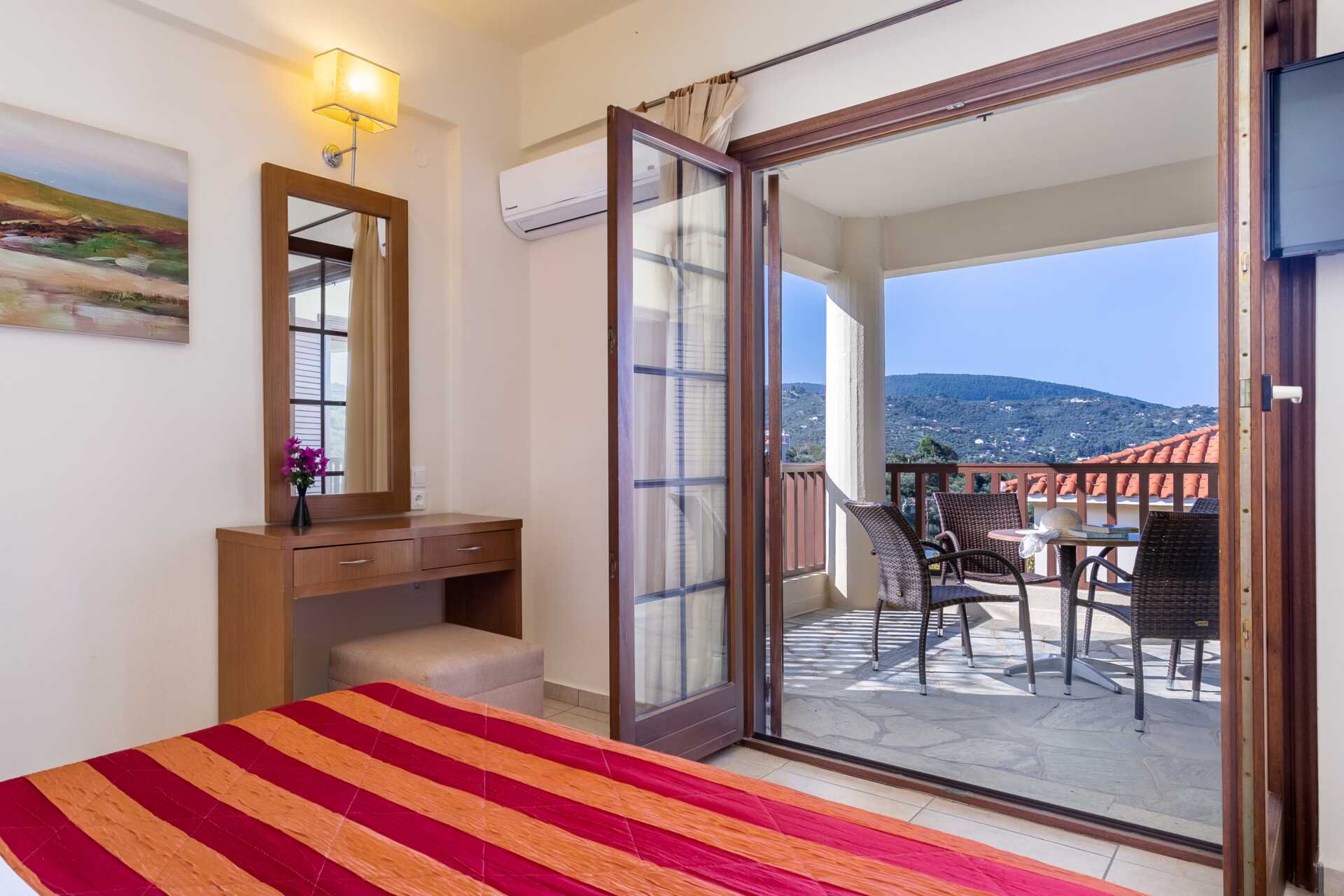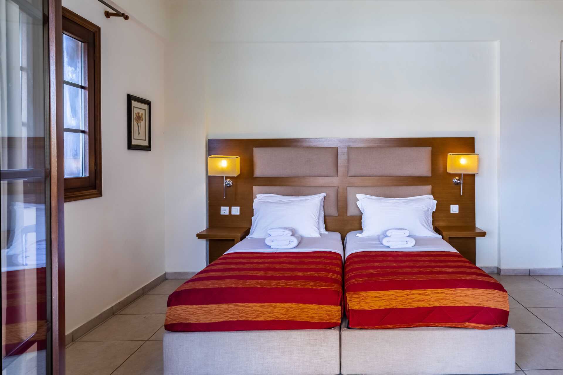 Dobbeltværelser med balkon eller terrasse. En dobbeltseng eller to enkeltsenge. Mulighed for ekstra opredning i fold ud-seng eller i enkeltseng. Gratis wifi, aircondition og deponering. Køleskab. Tv med lokale kanaler. Hårtørrer. Badeværelse med bruser og toilet. Rengøring 7 gange om ugen.