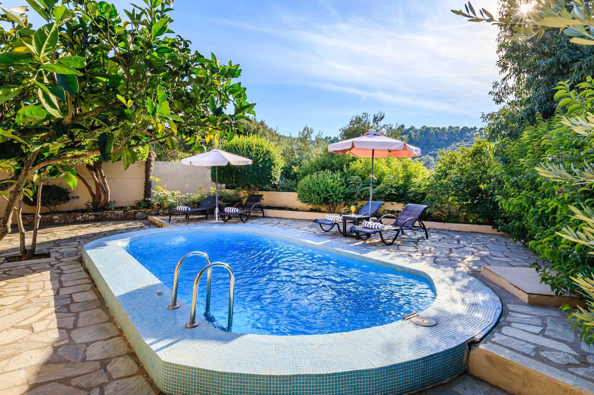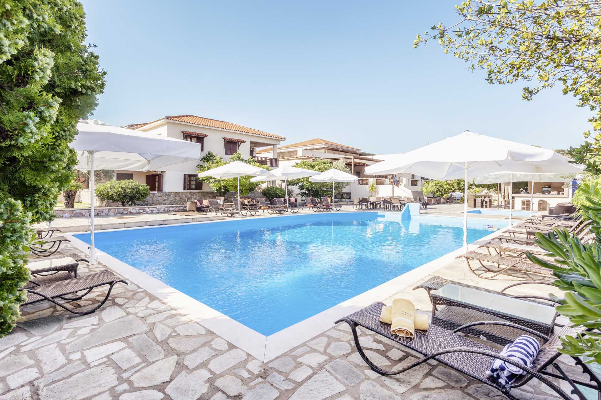 Junior-suite med privat pool på udepladsen. På udepladsen er der en slags større sækkestol. En dobbeltseng. Gratis wifi, aircondition og deponering. Køleskab. El-kedel og kaffe/te. Tv med lokale kanaler. Bluetooth-højttaler. Hårtørrer. Badeværelse med bruser og toilet. Rengøring 7 gange om ugen.