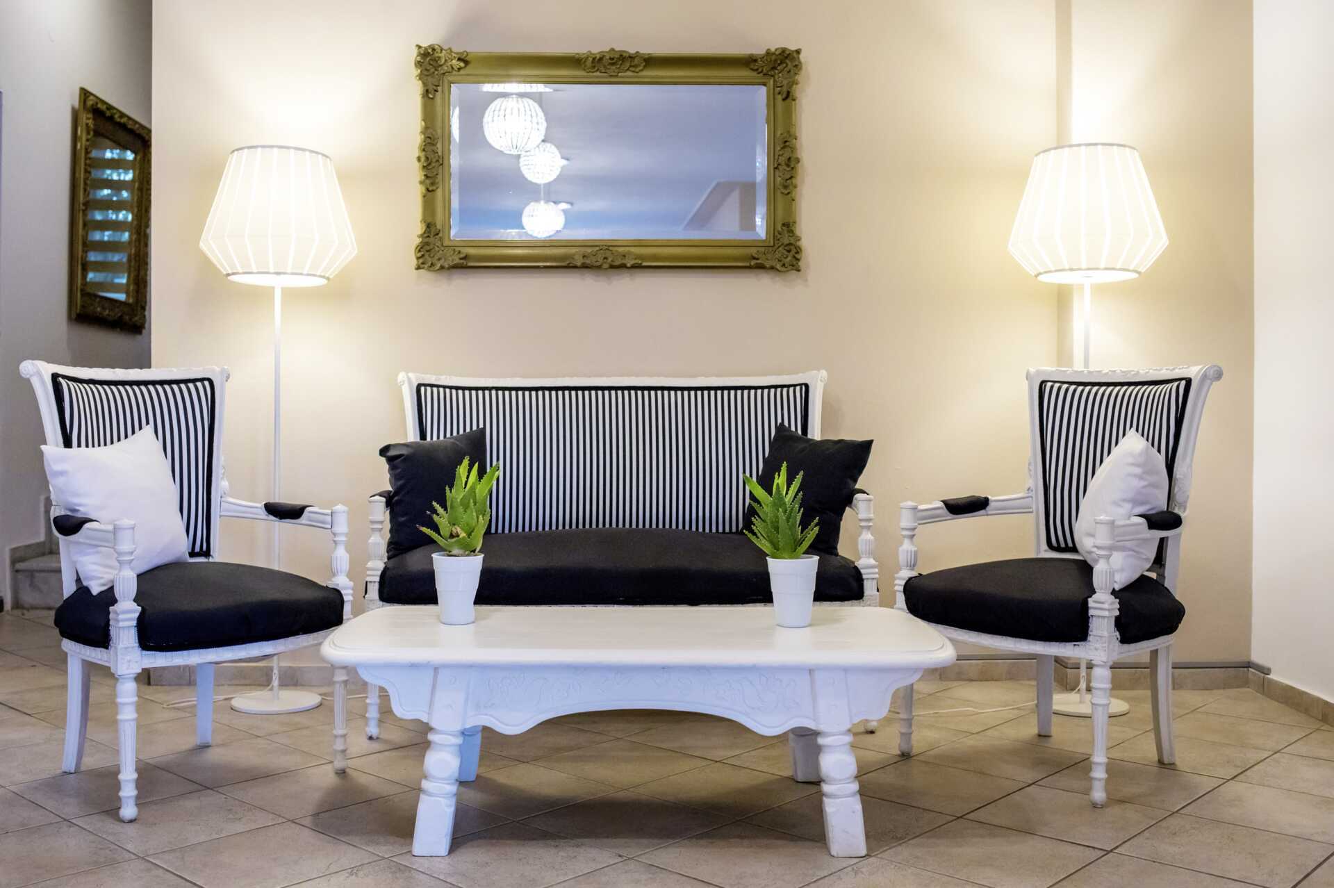 Junior-suiter med balkon eller terrasse. Junior-suiten består af to værelser. Et soveværelse med en dobbeltseng og et opholdsrum med sovesofaer eller to enkeltsenge. Gratis wifi, aircondition og deponering. Køleskab. Et tv med lokale kanaler på hvert værelse. Hårtørrer. Badeværelse med badekar og toilet. Rengøring 7 gange om ugen.aircondition