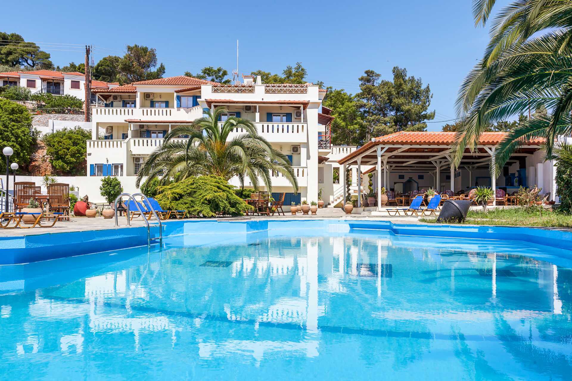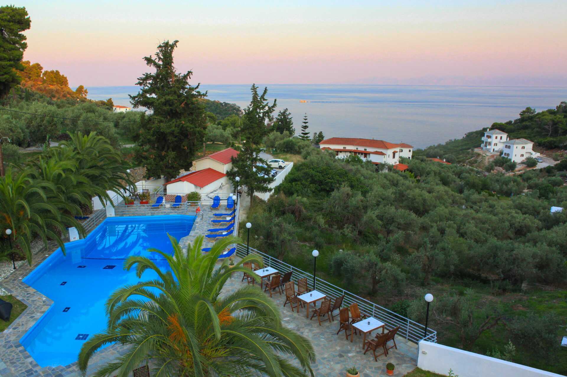 Velkommen til Stafylos, et lille familiedrevet lejlighedshotel kun 4 km fra Skopelos by. Hotellet ligger på toppen af en skråning dækket af fyrretræer med panoramaudsigt over Det Ægæiske Hav. Nyd en dukkert i poolen, noget forfriskende i poolbaren eller gå ned til stranden for en salt dukkert i havet.