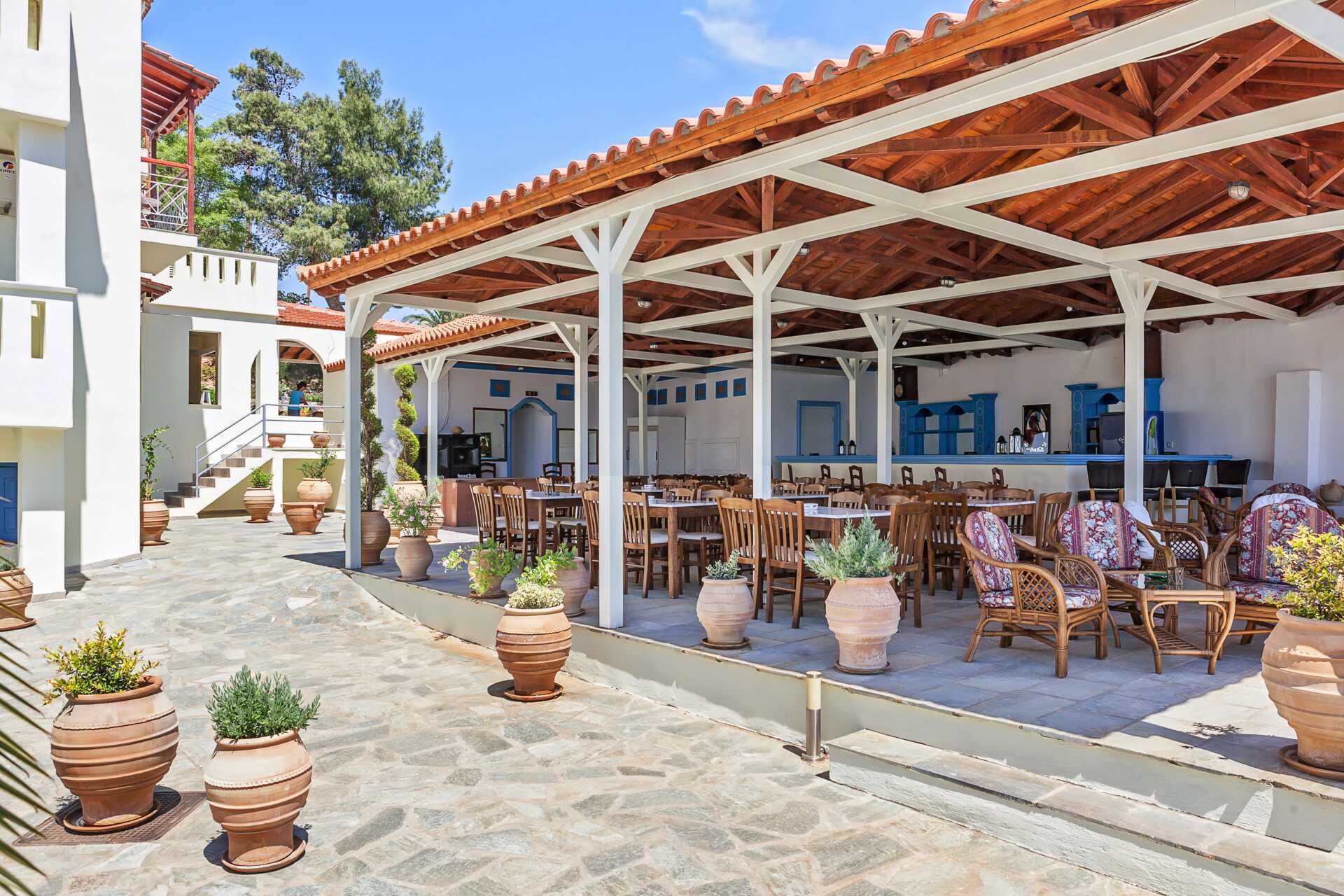 Dårlig service i receptionen. Ikke imødekommende og venlighed som man normalt oplever i Grækenland, hvor vi har rejst i 30 år, og der var for det meste ikke nogen bemanding i receptionen.