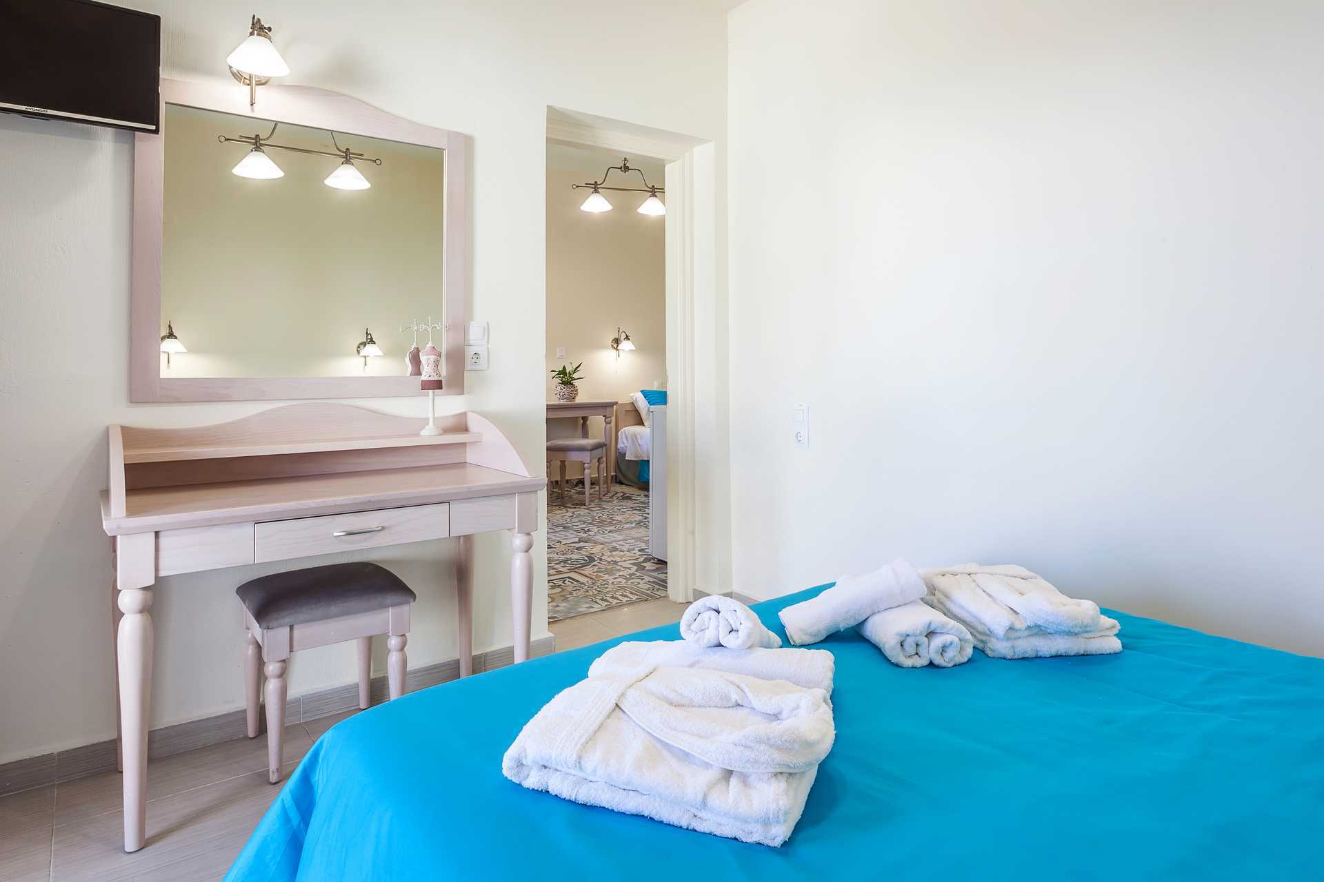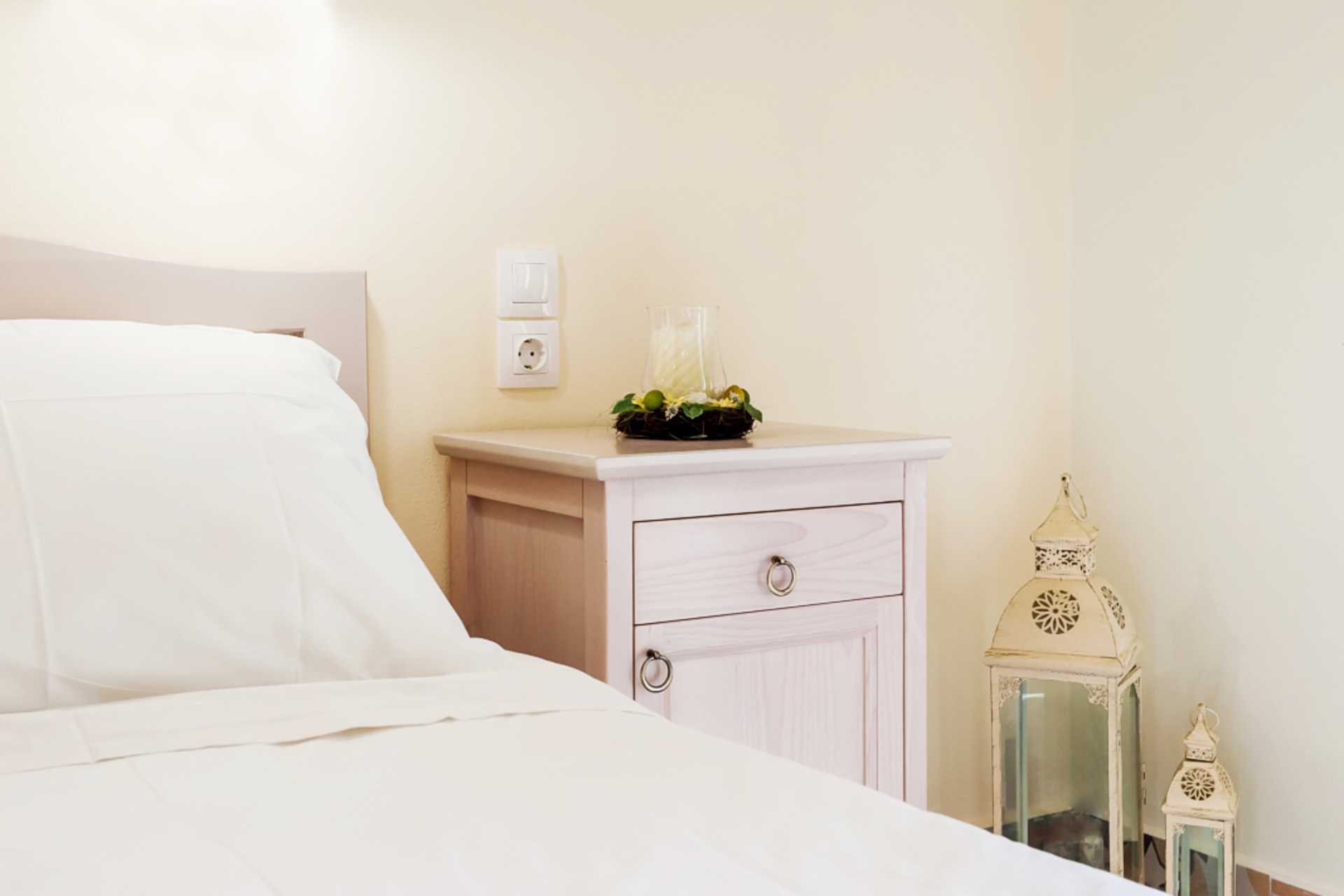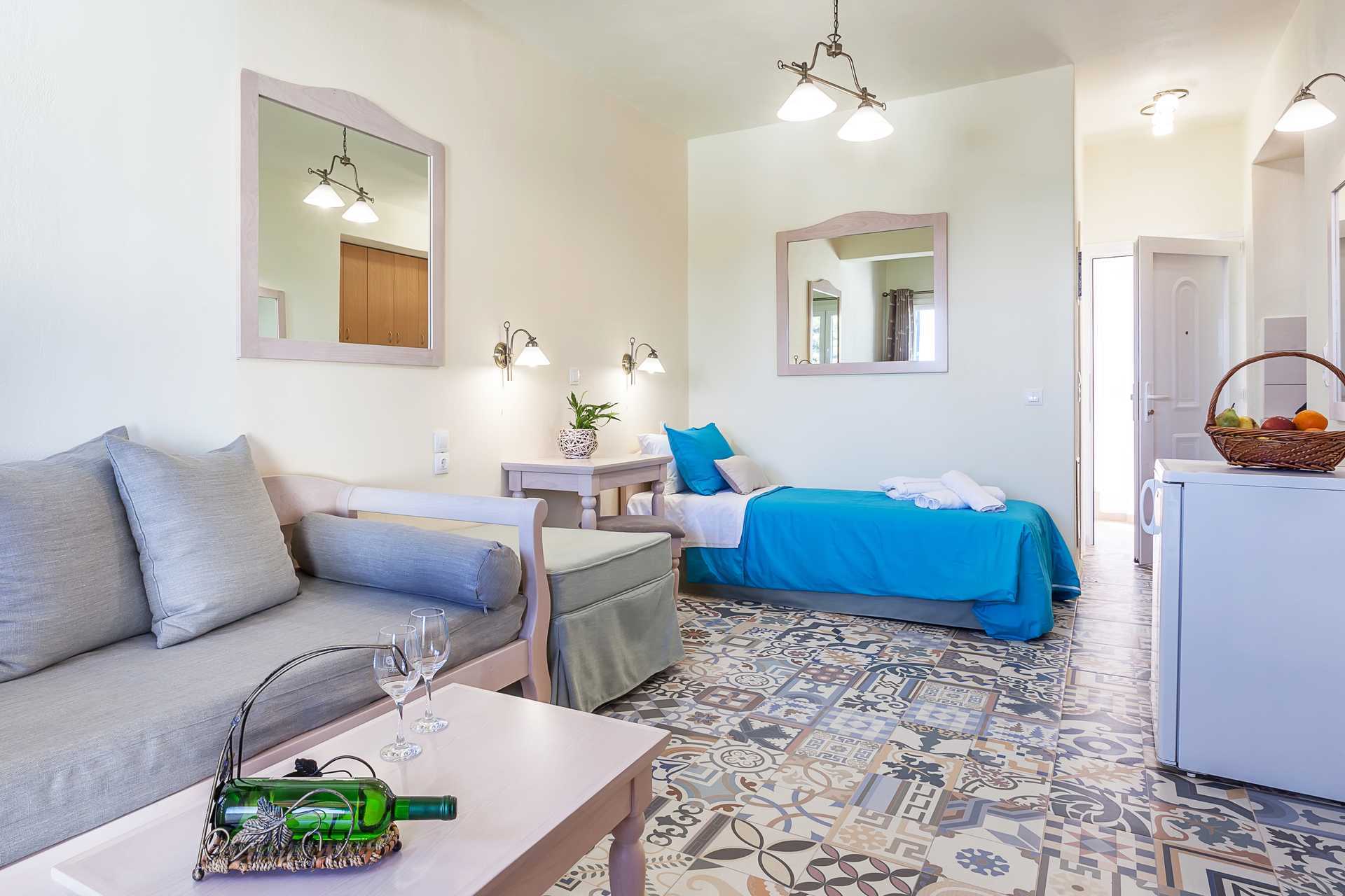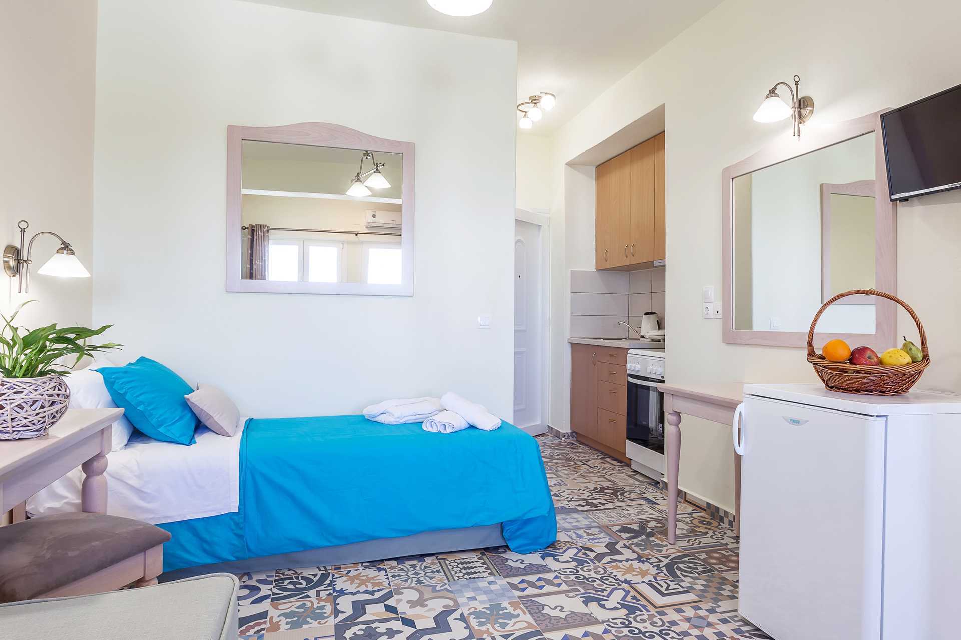 1-værelses lejligheder med balkon eller terrasse. Soveværelse kombineret med minikøkken. En dobbeltseng eller to enkeltsenge. Mulighed for ekstra opredning i enkeltseng eller sovesofa. Minikøkken med kogeplader, køleskab, el-kedel, kaffemaskine, brødrister og enkelt køkkenudstyr. Gratis wifi, aircondition og deponering. Tv med lokale kanaler. Hårtørrer. Badeværelse med bruser og toilet. Rengøring 6 gange om ugen.