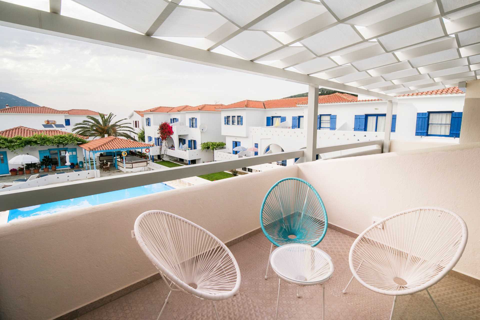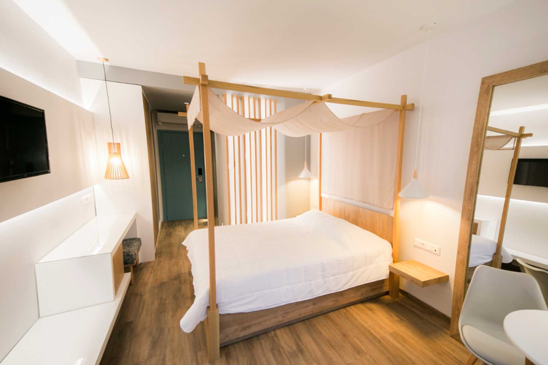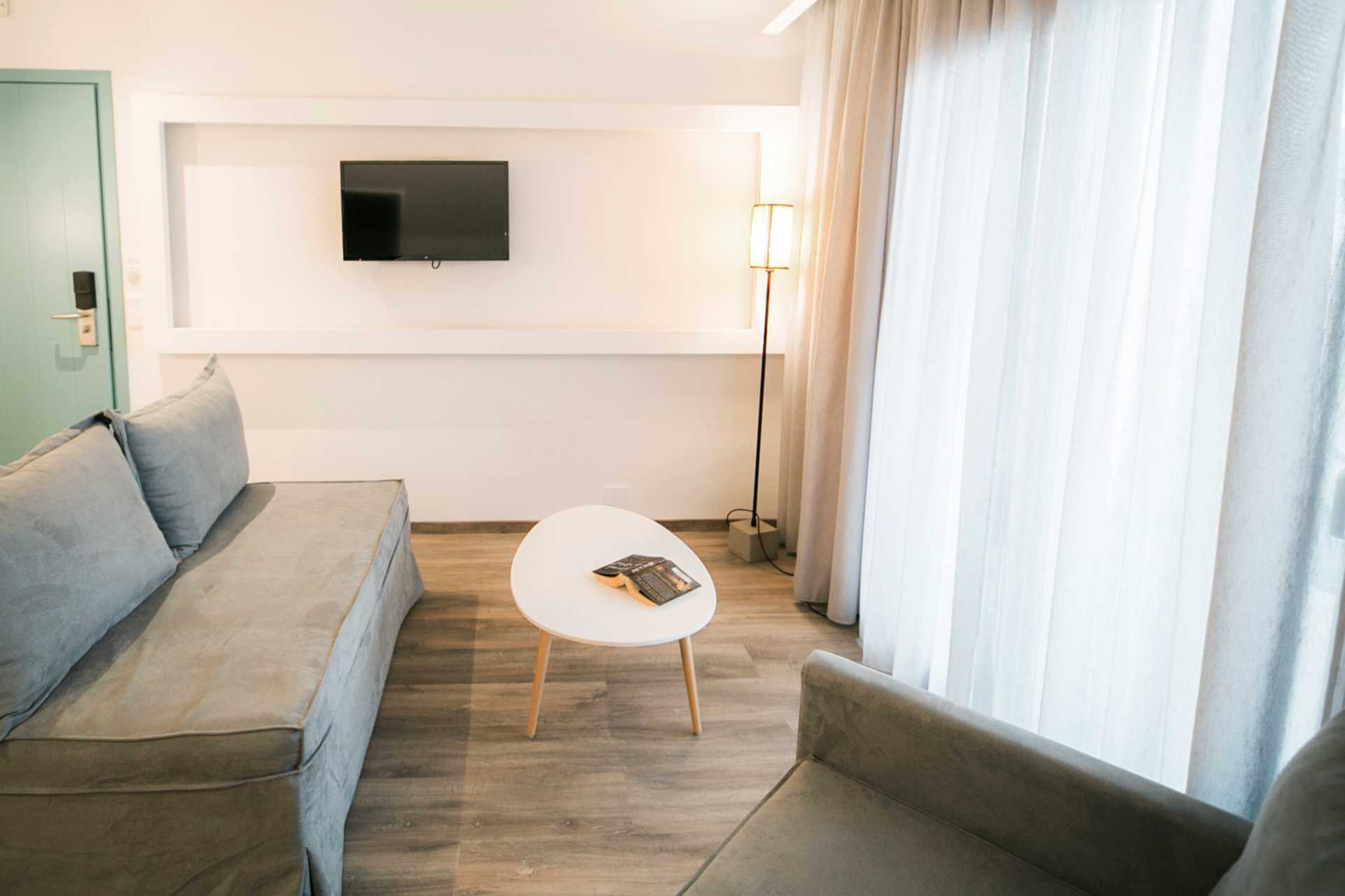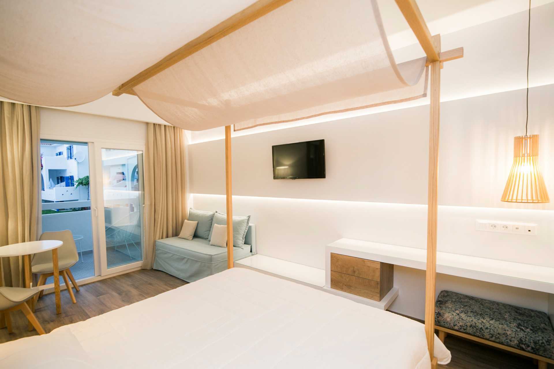 Familie-værelse med balkon. Et soveværelse og et opholdsrum. En dobbeltseng eller to enkeltsenge. Mulighed for ekstra opredninger i sovesofa. Køleskab, kaffemaskine, el-kedel, brødrister og enkelt køkkenudstyr. Gratis aircondition. Deponering og wifi mod betaling. Tv med internationale kanaler. Strygejern og strygebræt. Hårtørrer. Badeværelse med bruser og toilet. Rengøring 7 gange om ugen.