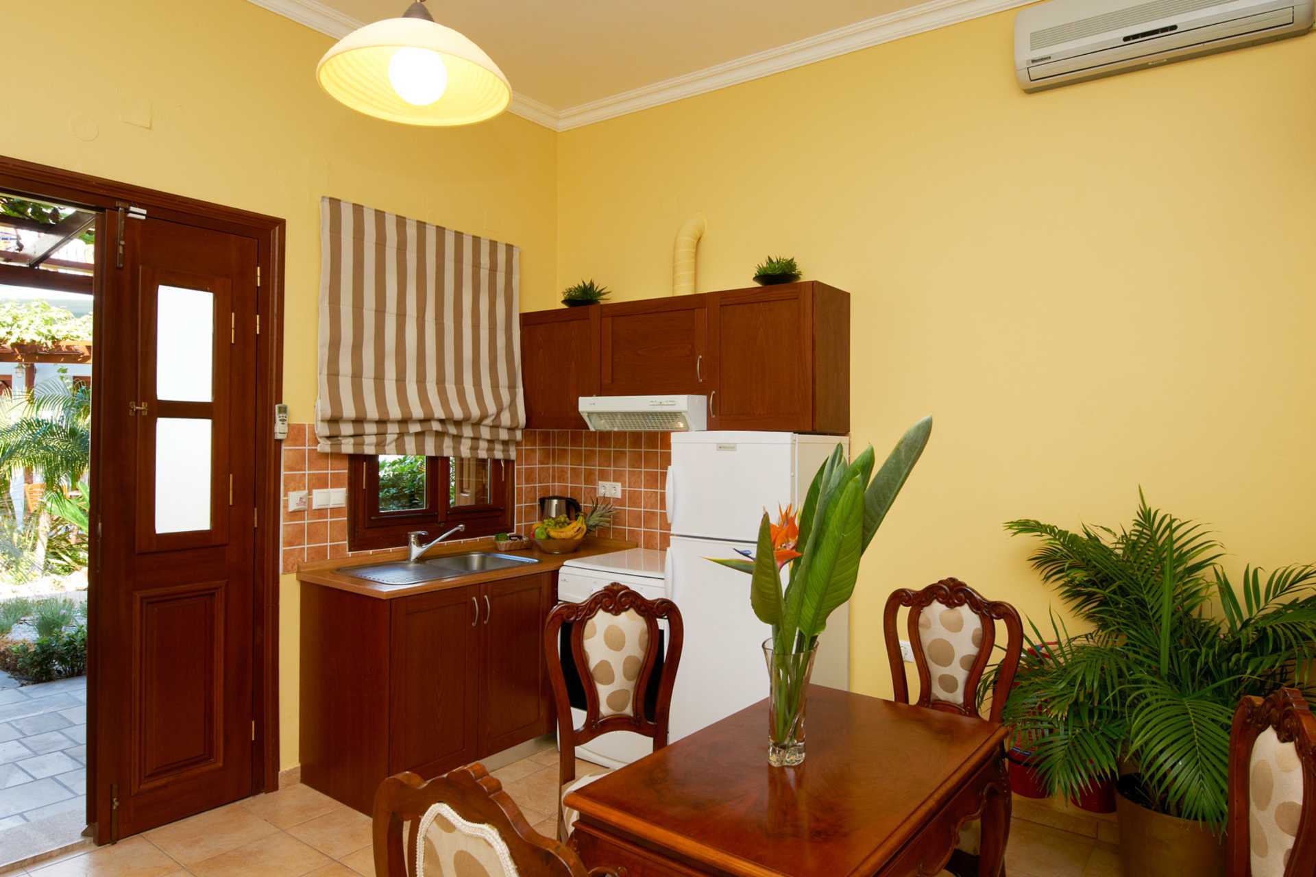 1-værelses lejligheder med balkon eller terrasse. En dobbeltseng. Minikøkken med kogeplader, køleskab, el-kedel og enkelt køkkenudstyr. Gratis wifi, deponering og aircondition. Tv med lokale kanaler. Badekåber og tøfler. Hårtørrer. Badeværelse med bruser og toilet. Rengøring 6 gange om ugen.