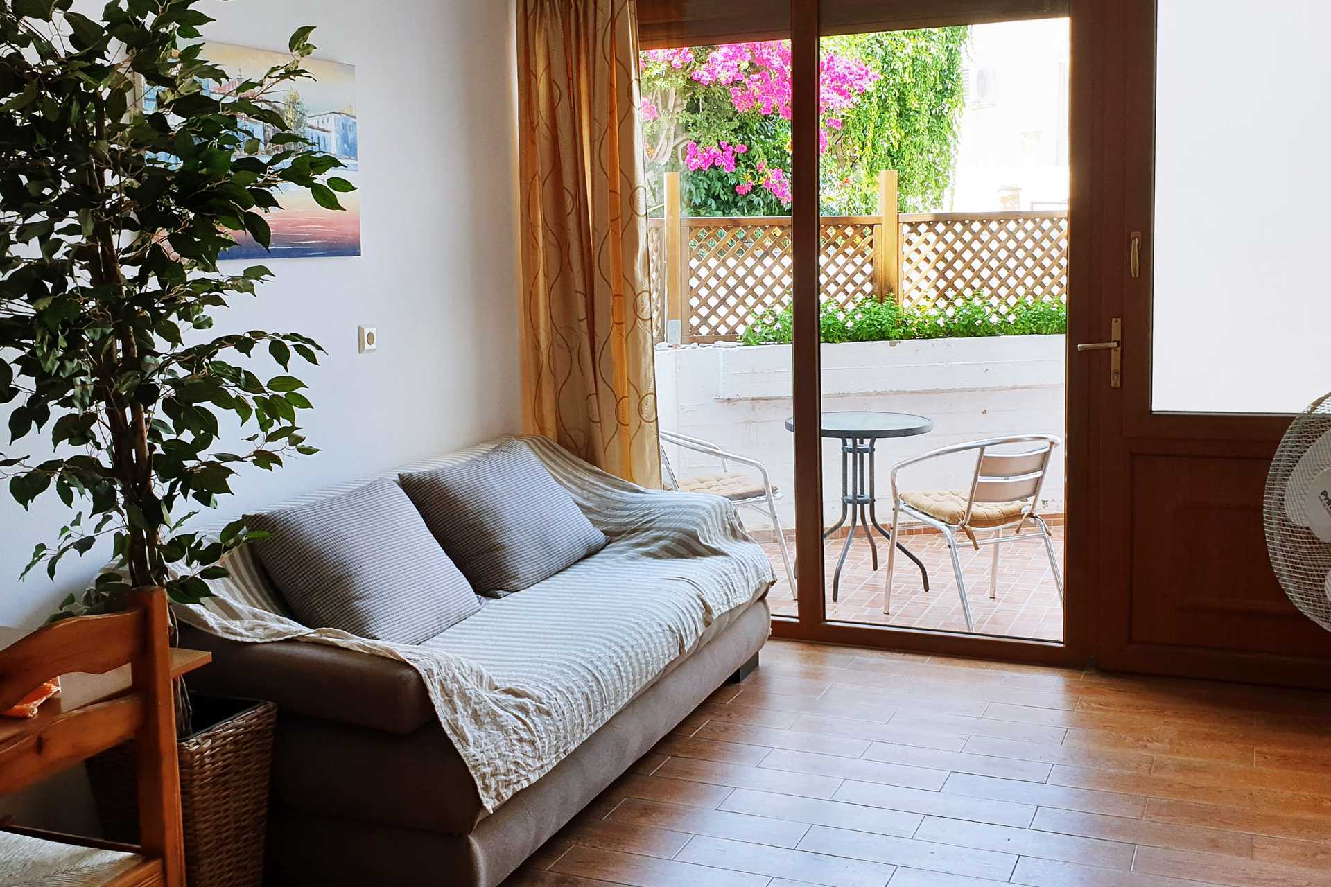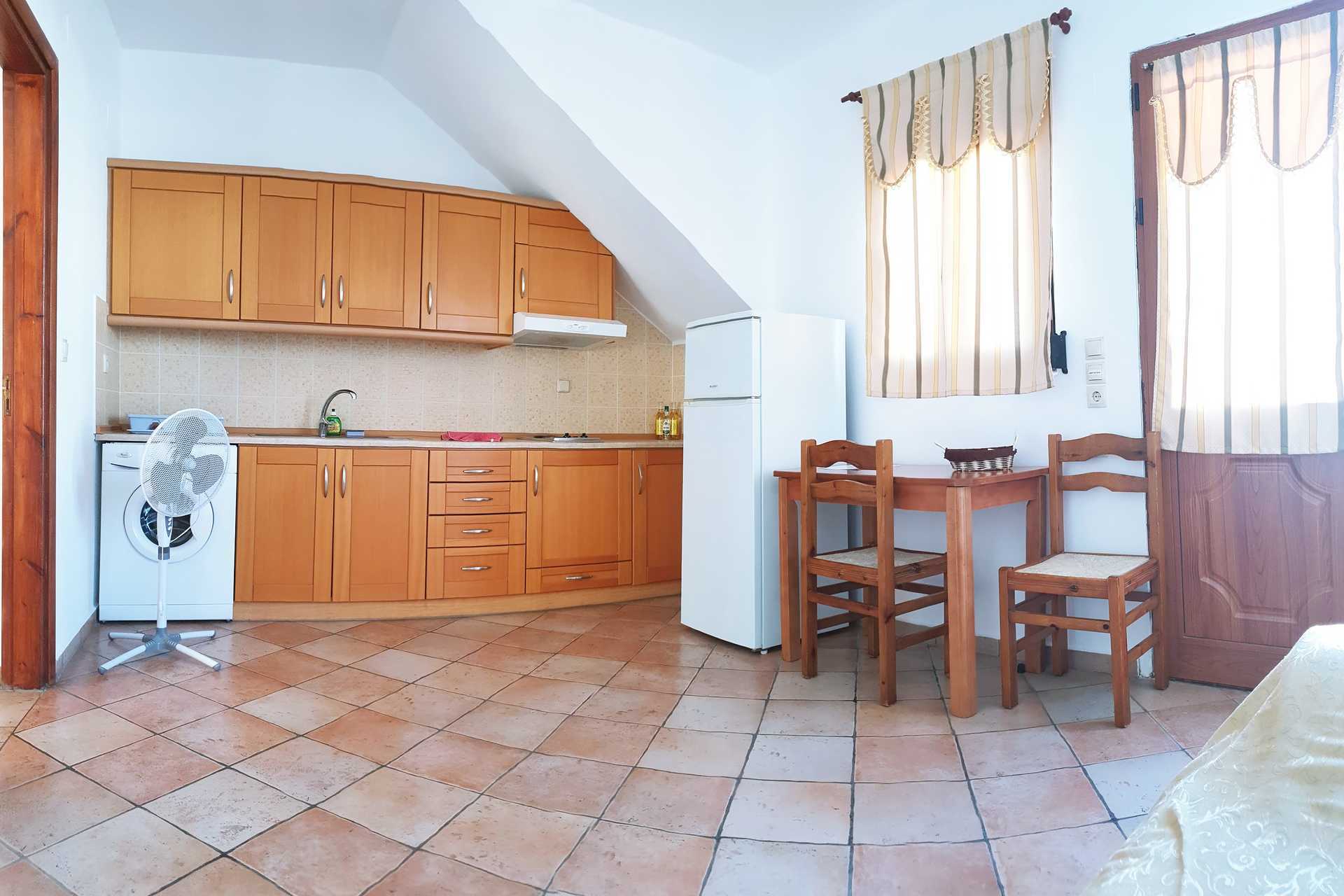 2-værelses lejlighed med balkon eller terrasse. Et soveværelse og et kombineret opholdsrum med minikøkken. To enkeltsenge. Mulighed for ekstra opredninger i sovesofa. Minikøkken med kogeplader, køleskab, kaffemaskine, el-kedel og enkelt køkkenudstyr. Gratis wifi, aircondition og deponering. Tv med internationale kanaler. Badeværelse med bruser og toilet. Rengøring 6 gange om ugen. Ved ankomst kan drikkevarer købes i lejligheden.