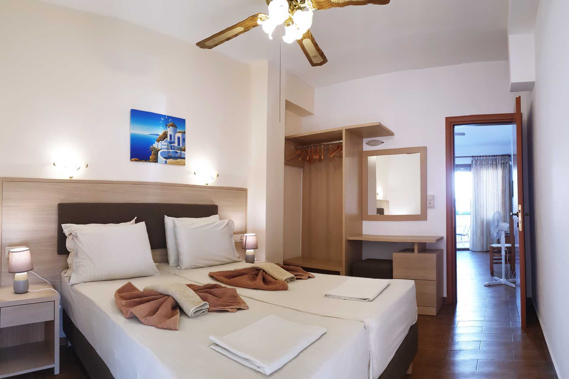 1-værelses lejligheder med balkon eller terrasse. Soveværelse kombineret med minikøkken. To enkeltsenge. Minikøkken med kogeplader, køleskab, el-kedel og enkelt køkkenudstyr. Gratis wifi, aircondition og deponering mod betaling. Badeværelse med bruser og toilet. Rengøring 6 gange om ugen. Ved ankomst er der drikkevarer i lejligheden mod betaling.