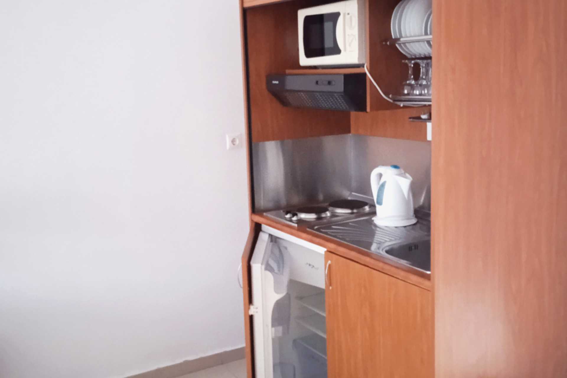 1-værelses lejligheder med balkon eller terrasse. Et kombineret soverum og minikøkken. En dobbeltseng eller to enkeltsenge. Mulighed for en ekstraopredning i sovesofa. Minikøkken med køleskab, kogeplader, mikroovn, el-kedel og enkelt køkkenudstyr. Gratis wifi, aircondition og deponering. Tv. Badeværelse med bruser og toilet. Rengøring 3 gange om ugen.