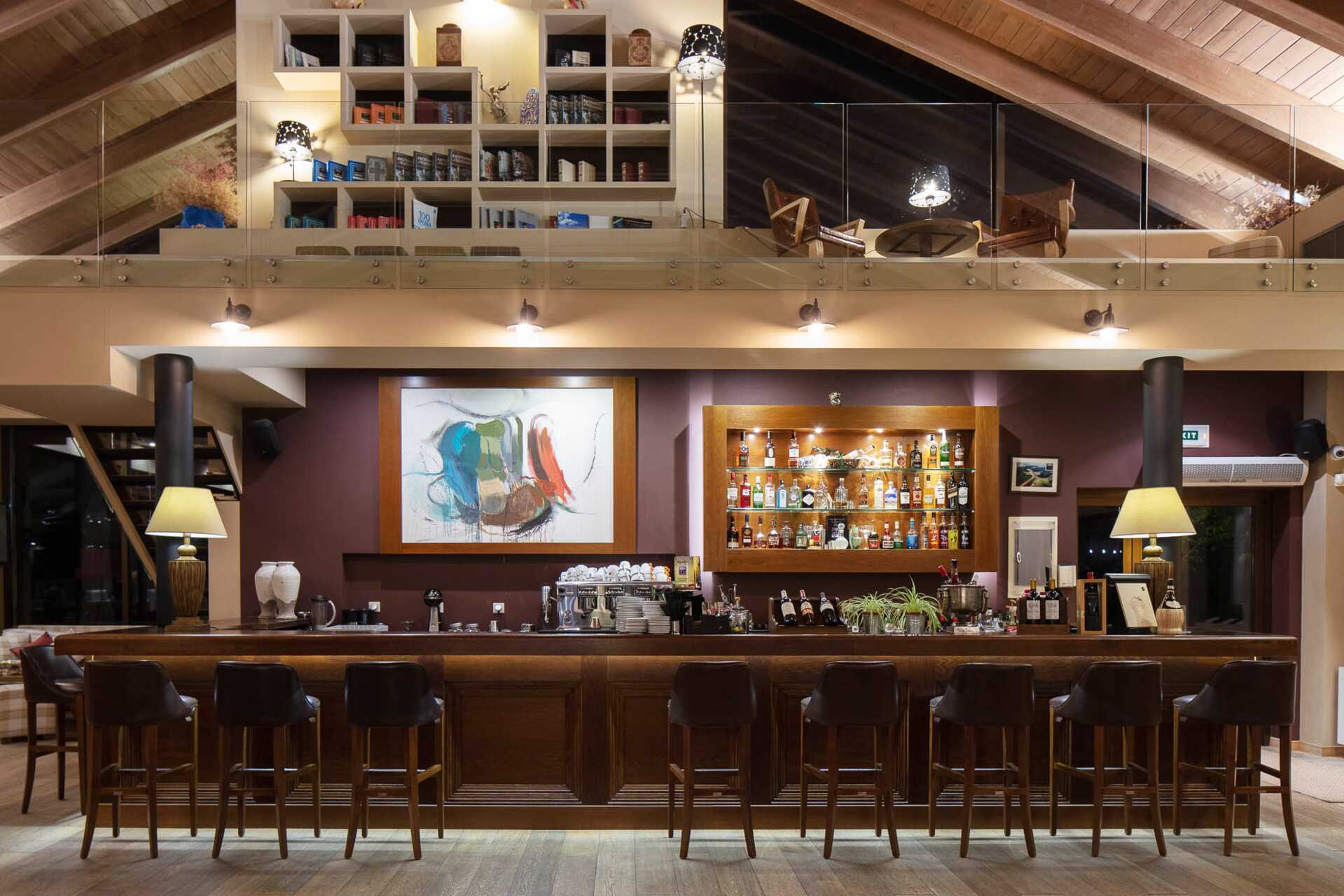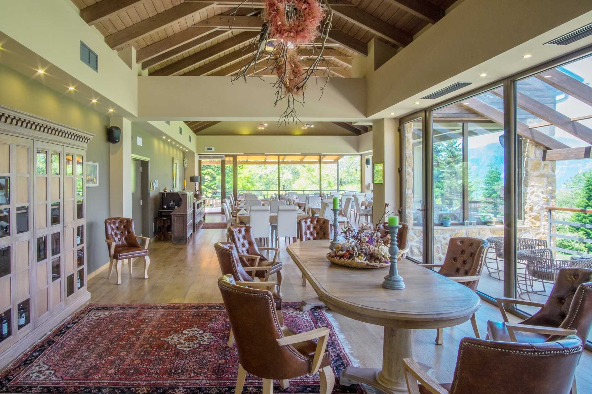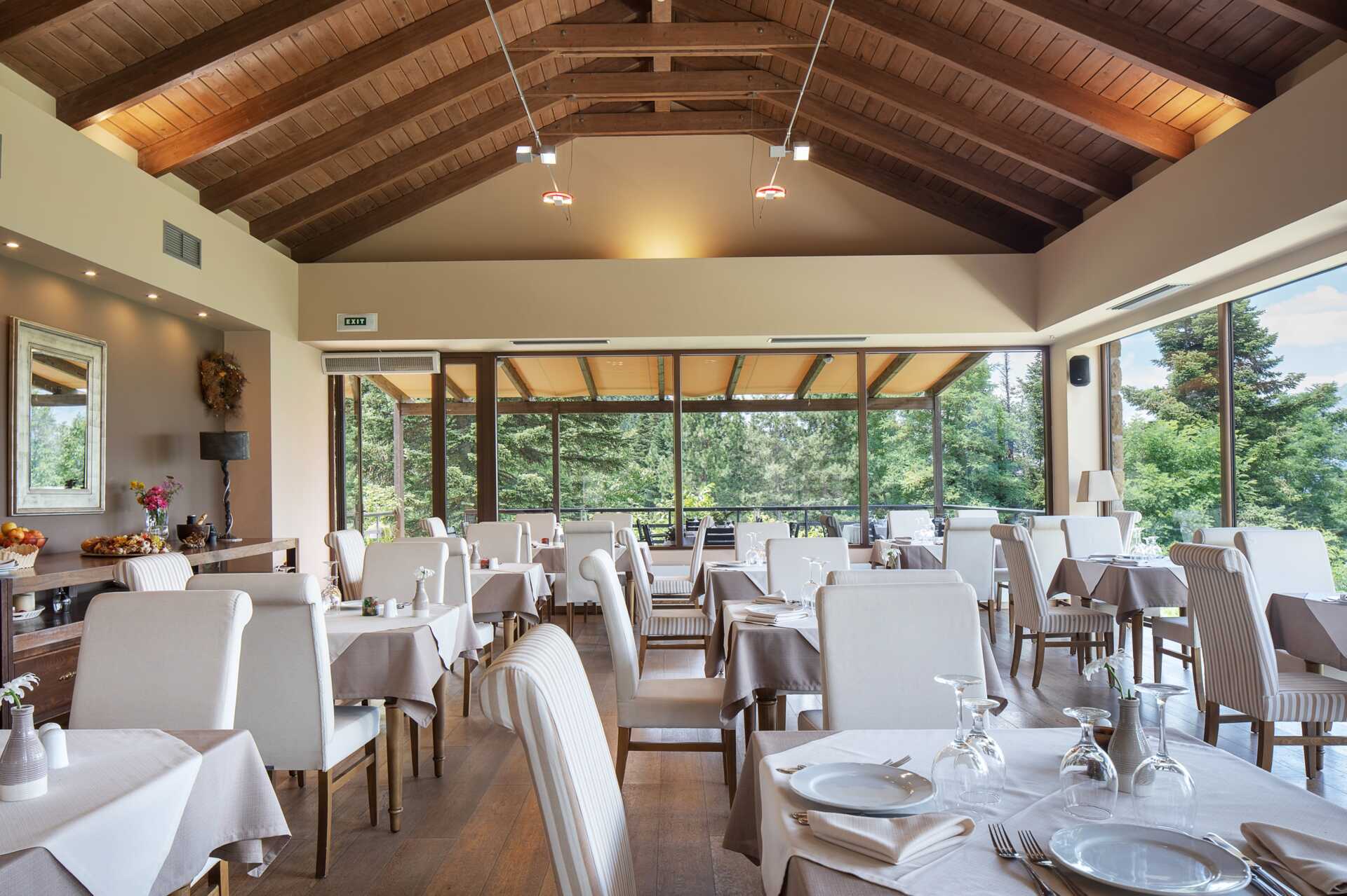 I restauranten serveres lækre retter fra frokosttid til sent, hvor mange af råvarerne er hentet fra lokale producenter, såsom kødet og fetaosten. I hotellets loungecafé kan du bare sætte dig ned og få en kop kaffe med noget sødt, slappe af med en bog, lytte til en podcast og se de majestætiske bjerge udenfor. Hotellets morgenmad er en certificeret græsk morgenmad og byder på aromaer og smag fra økologiske og lokalt dyrkede produkter og lokale delikatesser.