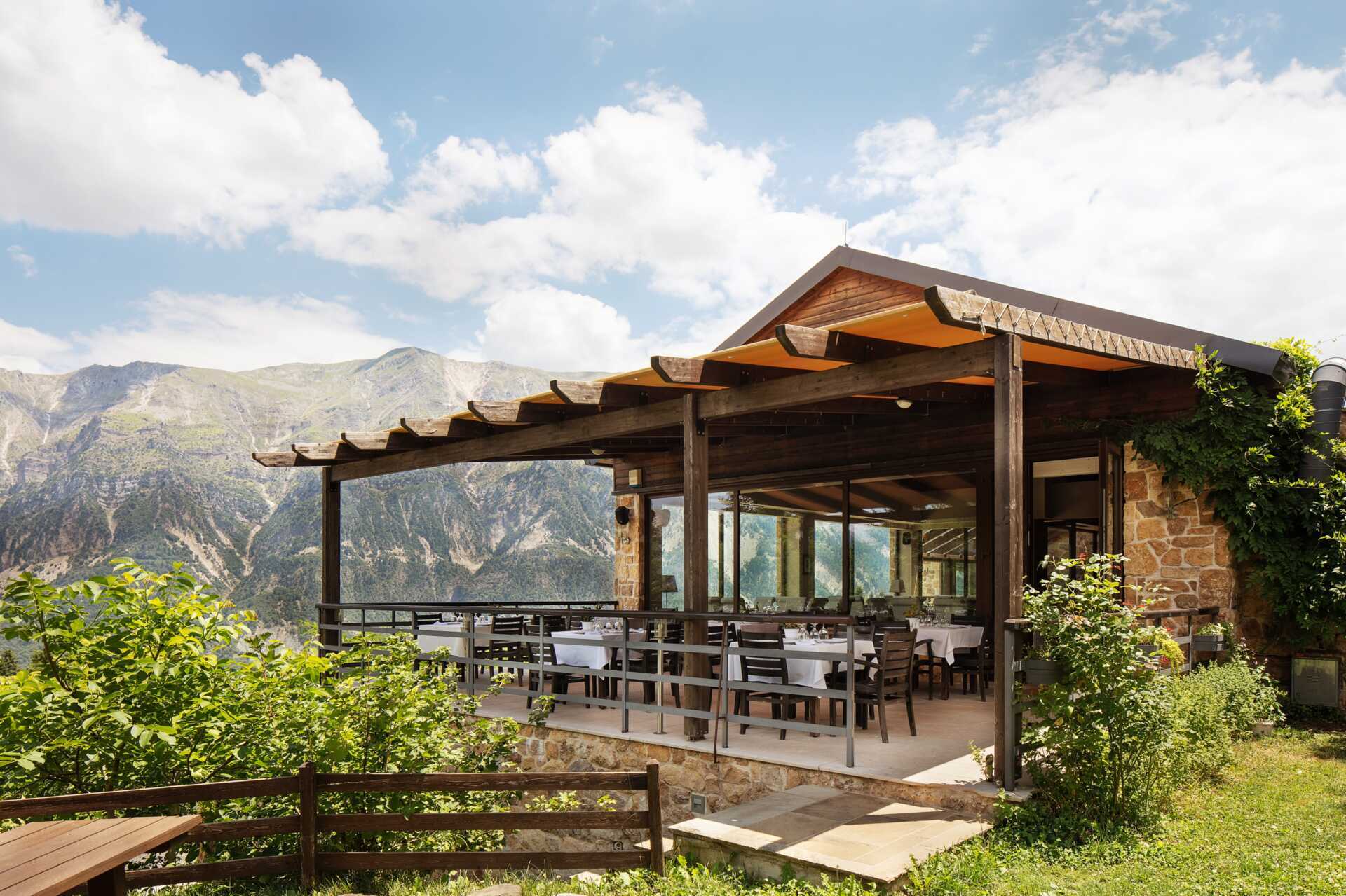 Orizontes Tzoumerkon Hotel Resort ligger i 1000 meters højde i grønne skovklædte bjerge med cedertræer og grantræer, hvor det majestætiske landskab er magisk smukt. Hotellets ligger ved foden af bjergtoppen Stroggoula og i hotellets spa kan du nyde både udsigten og bjergene. Over hotellet hviler en diskret følelse af luksus og kvalitet med sine 12 værelser.