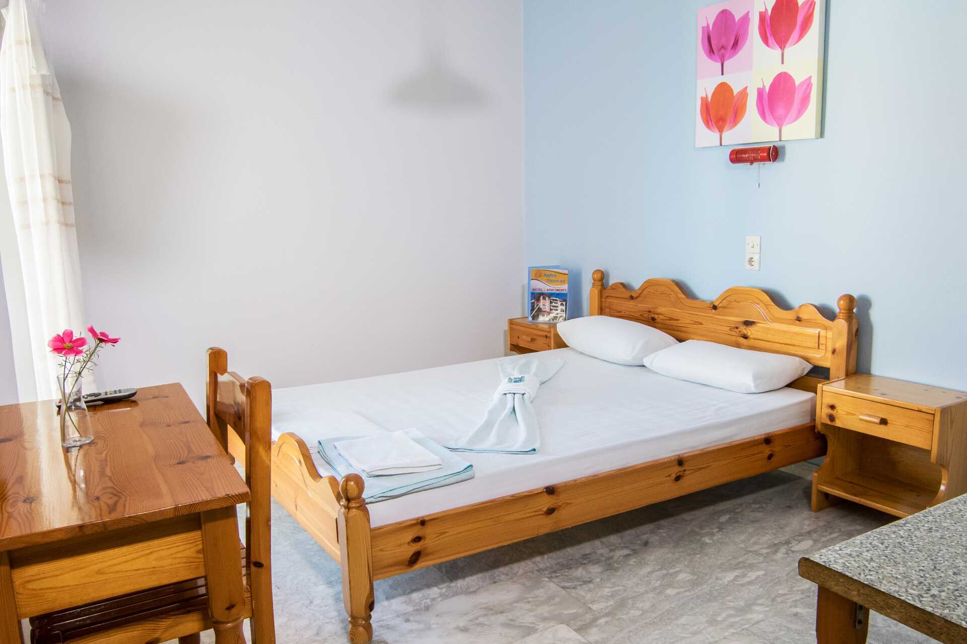 Dobbeltværelse med balkon og havudsigt. En dobbeltseng eller to enkeltsenge. Mulighed for ekstra opredning i enkeltseng. Gratis wifi. Aircondition mod betaling. Køleskab. Tv med lokale kanaler. Hårtørrer. Badeværelse med bruser og toilet. Rengøring 5 gange om ugen. Børn under to år tæller med i det maksimale antal personer på værelset.