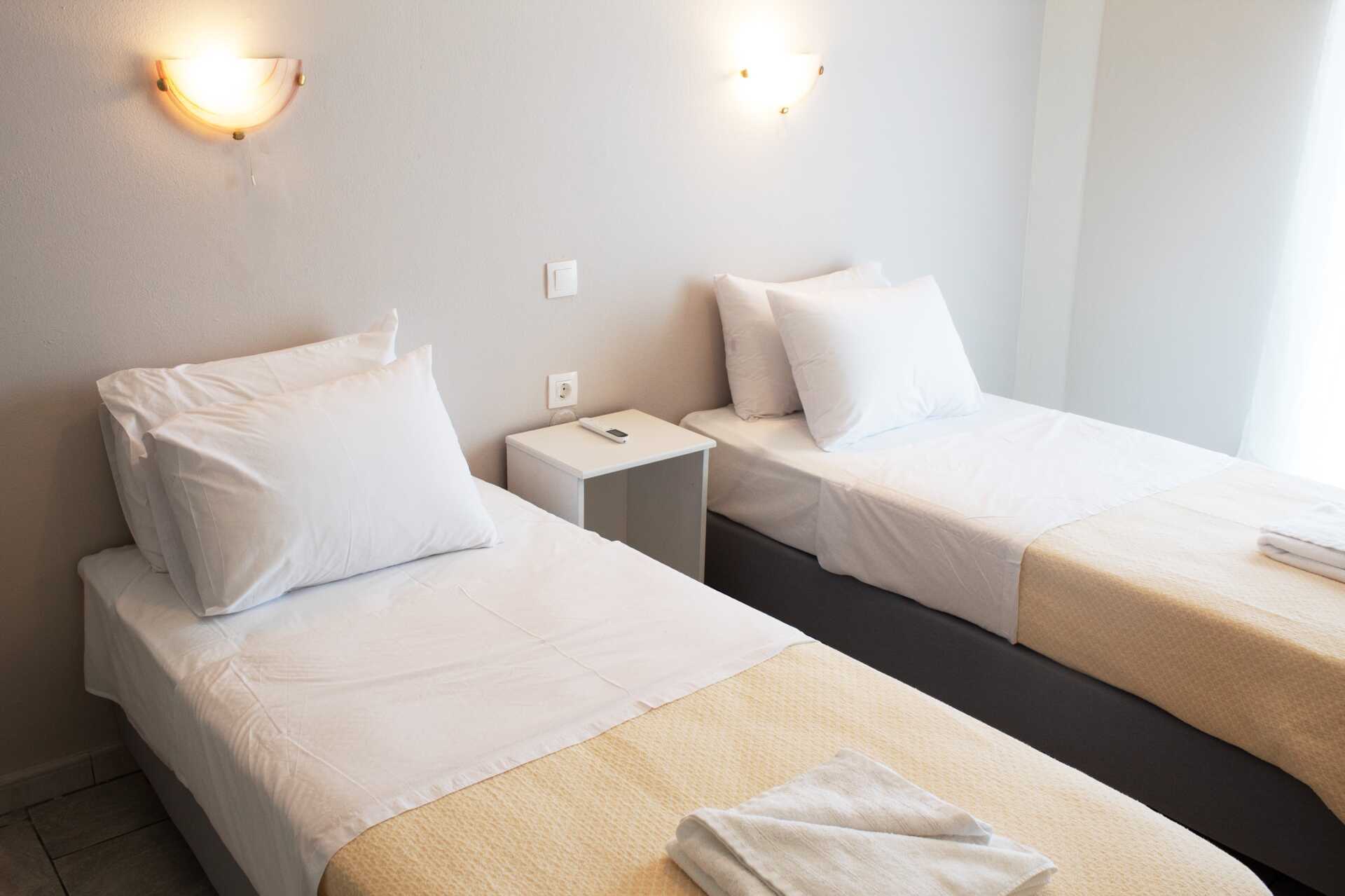 Dobbeltværelser med balkon, nogle med havudsigt. En dobbeltseng eller to enkeltsenge. Gratis wifi, aircondition og deponering. Køleskab. Tv med lokale kanaler. Badeværelse med bruser og toilet. Rengøring 3 gange om ugen. Børn under to år tæller med i det maksimale antal personer på værelset.