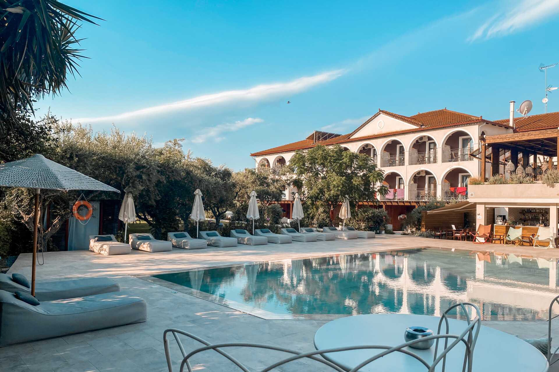 Castelli Zakynthos er et dejligt voksenhotel for alle over 16 år, smukt beliggende blandt olivenlunde. Da hotellet blev bygget, blev der vist stor respekt for naturen, Zakynthos' ældste eukalyptustræ blev bevaret, og hotellet blev bygget omkring det. Dette familiedrevne hotel lægger stor vægt på bæredygtighed, så der anvendes mange økologiske, lokalt producerede ingredienser i madlavningen, og den vin, der serveres, kommer fra lokale vinmarker. Velkommen til en gennemtænkt og unik ferie, hvor hensynet til både gæster og miljøet er i centrum!
