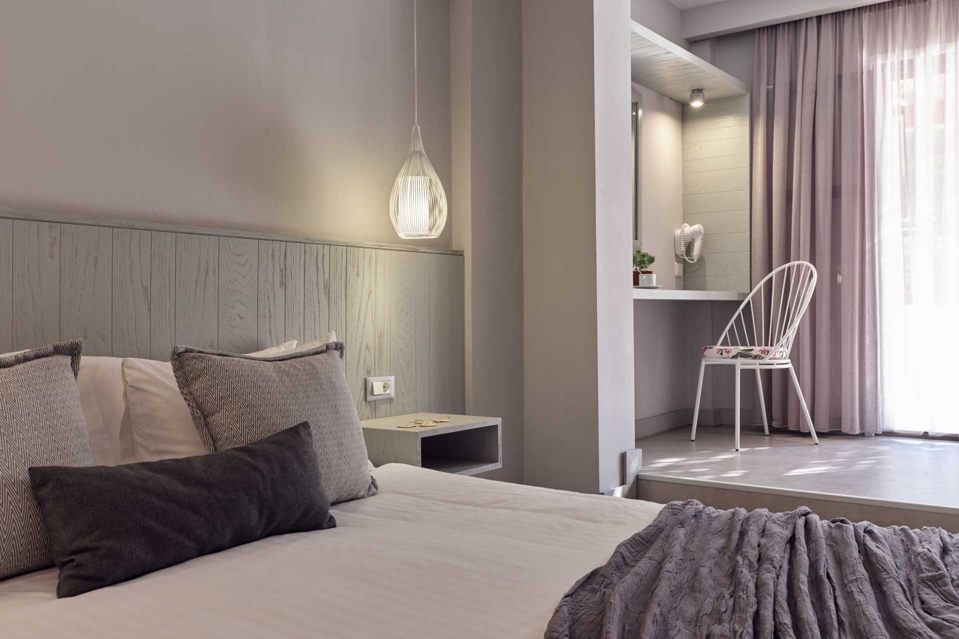 Superior-værelse, delt pool og solstole på udepladsen. En dobbeltseng. Mulighed for ekstra opredning i sovesofa. Gratis wifi, aircondition og deponering. Lille køleskab. Espressomaskine og el-kedel samt kaffe og te. Tv med internationale kanaler. Poolhåndklæder på værelset. Badekåber og tøfler. Hårtørrer. Badeværelse med bruser og toilet. Rengøring 7 gange om ugen.