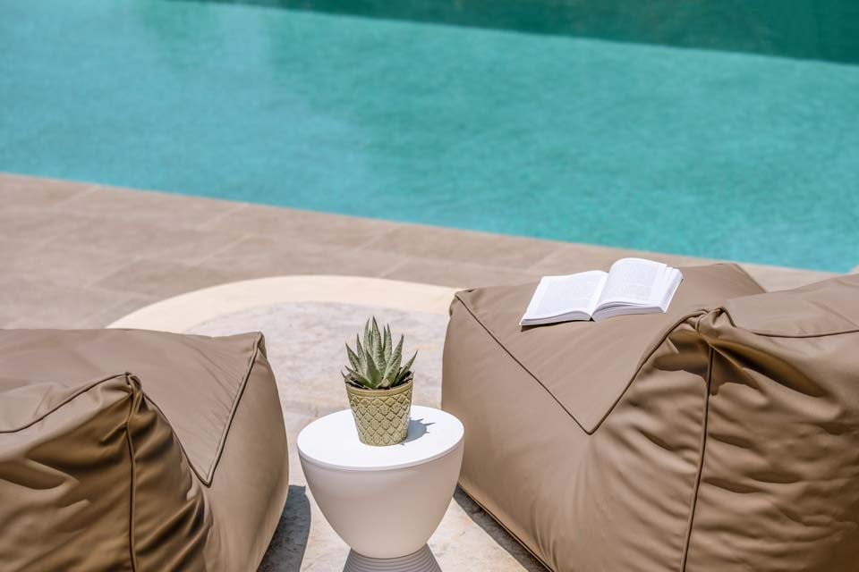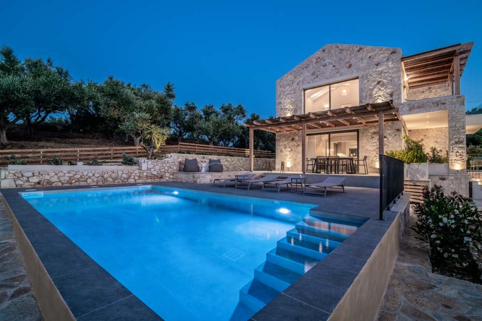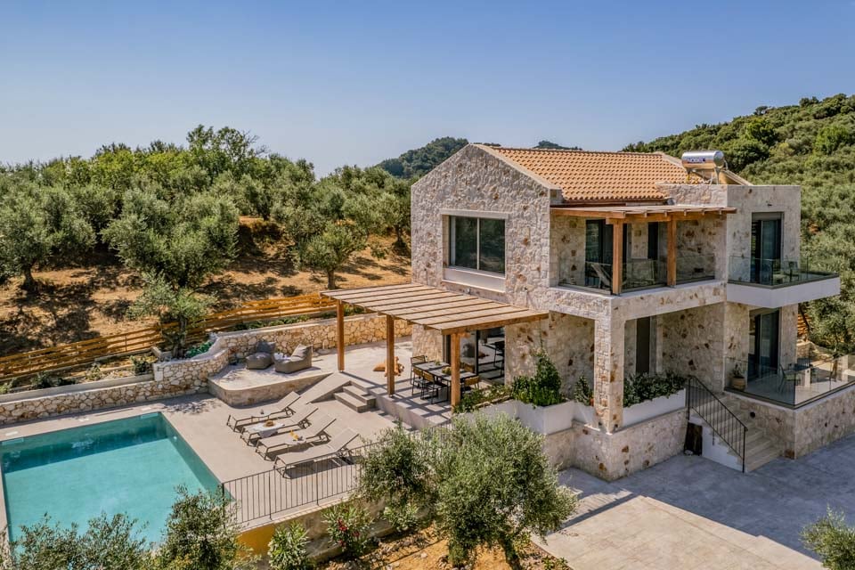 Udenfor nyder stedet det varme græske vejr fuldt ud med en indbydende swimmingpool, komfortable liggestole og et skyggefuldt spiseområde, hvor du kan undgå middagsvarmen. Med panoramaudsigt over landet nedenfor kan du se solen gå ned og markere afslutningen på endnu en dag i paradis.
