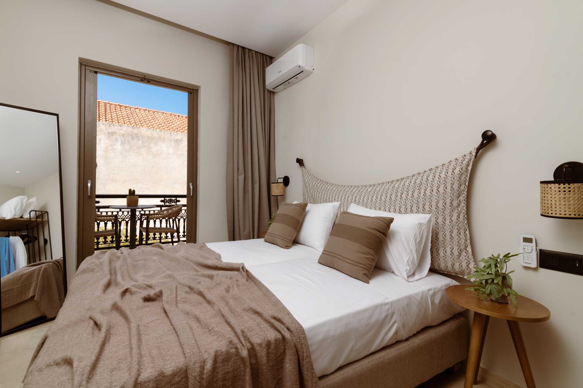 Dobbeltværelse i sidebygningen med balkon. En dobbeltseng eller to enkeltsenge. Gratis wifi, aircondition og deponering. Køleskab. El-kedel. Tv med internationale kanaler. Badeværelse med bruser og toilet. Rengøring 7 gange om ugen.