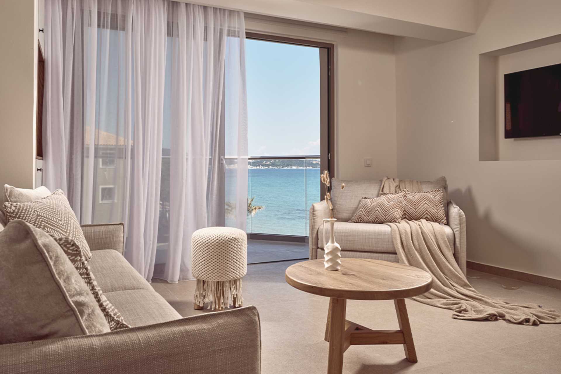 Junior-suiter med balkon med havudsigt. Nogle værelser har en høj tærskel til/fra balkonen. Et soveværelse og et opholdsrum. En dobbeltseng. Mulighed for ekstra opredning i sovesofa. Gratis wifi, aircondition og deponering. Køleskab. El-kedel samt Nespresso maskine. Tv med internationale kanaler. Tøfler. Hårtørrer. Badeværelse med bruser og toilet. Rengøring 7 gange om ugen.