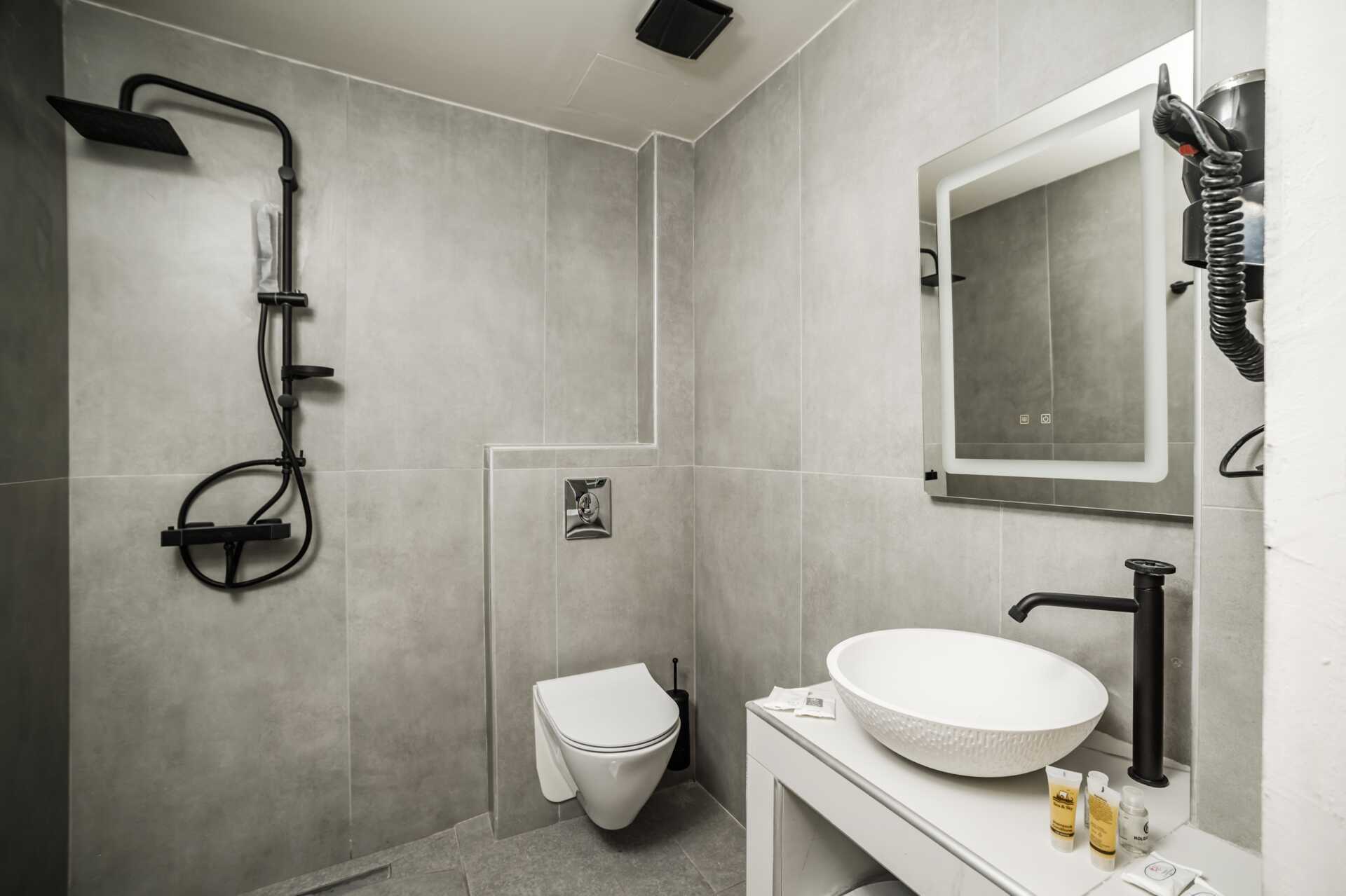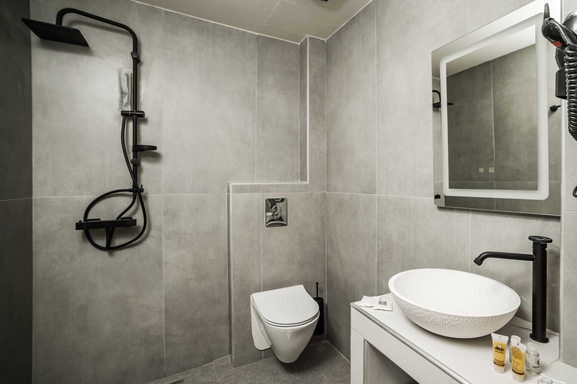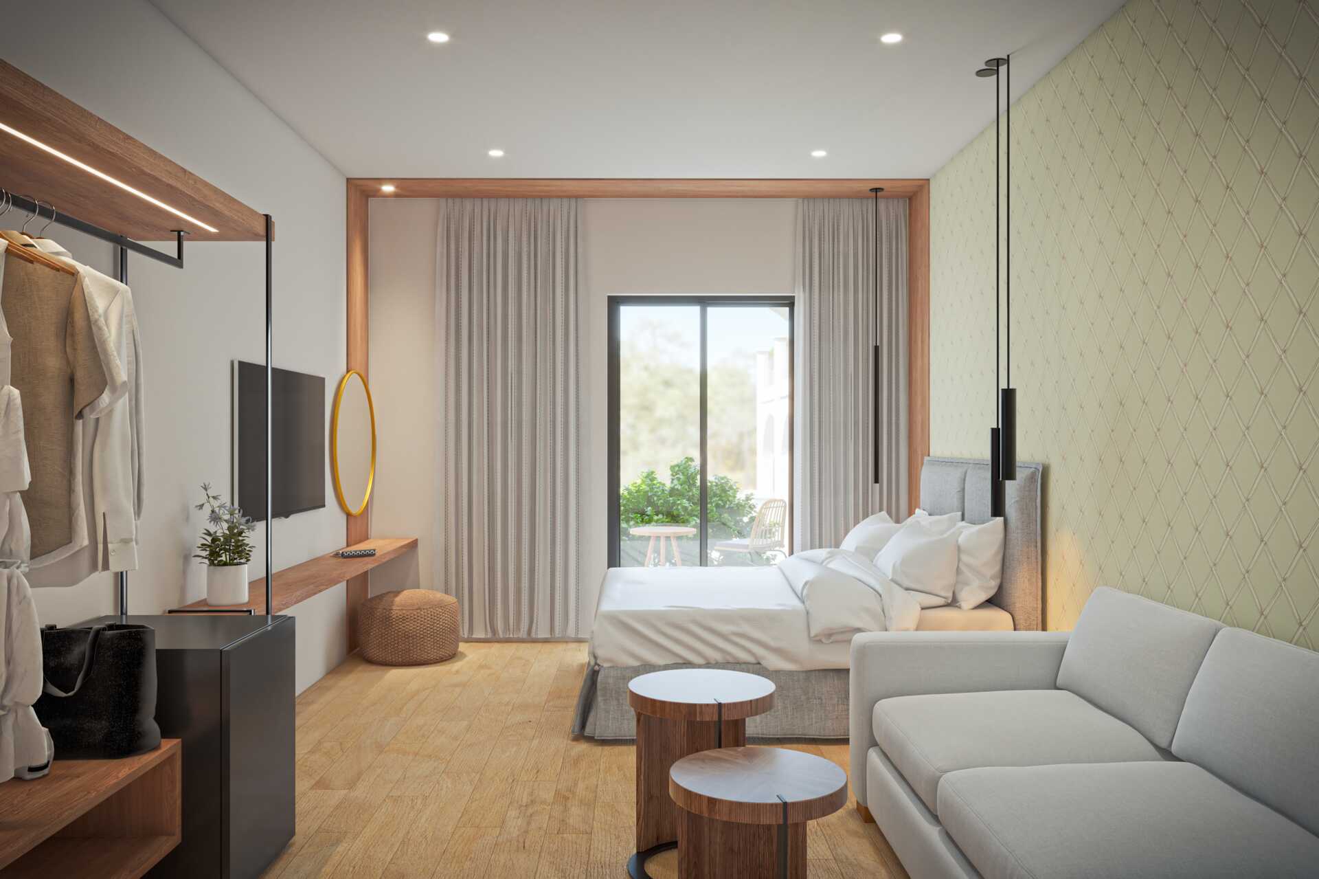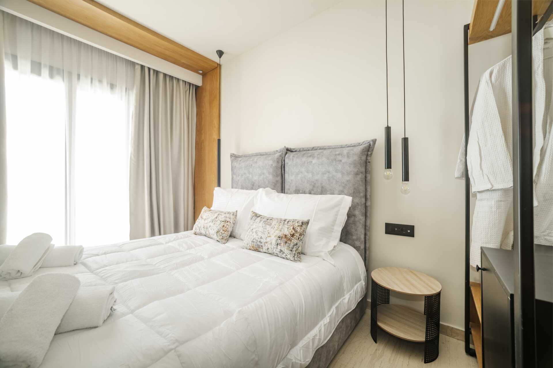 Junior-suite med balkon i stueplan. En dobbeltseng. Mulighed for ekstra opredning i sovesofa. Gratis wifi, aircondition og deponering. Køleskab. El-kedel og kaffe/te. Tv med internationale kanaler. Badekåber og tøfler. Hårtørrer. Badeværelse med bruser og toilet. Rengøring 7 gange om ugen.