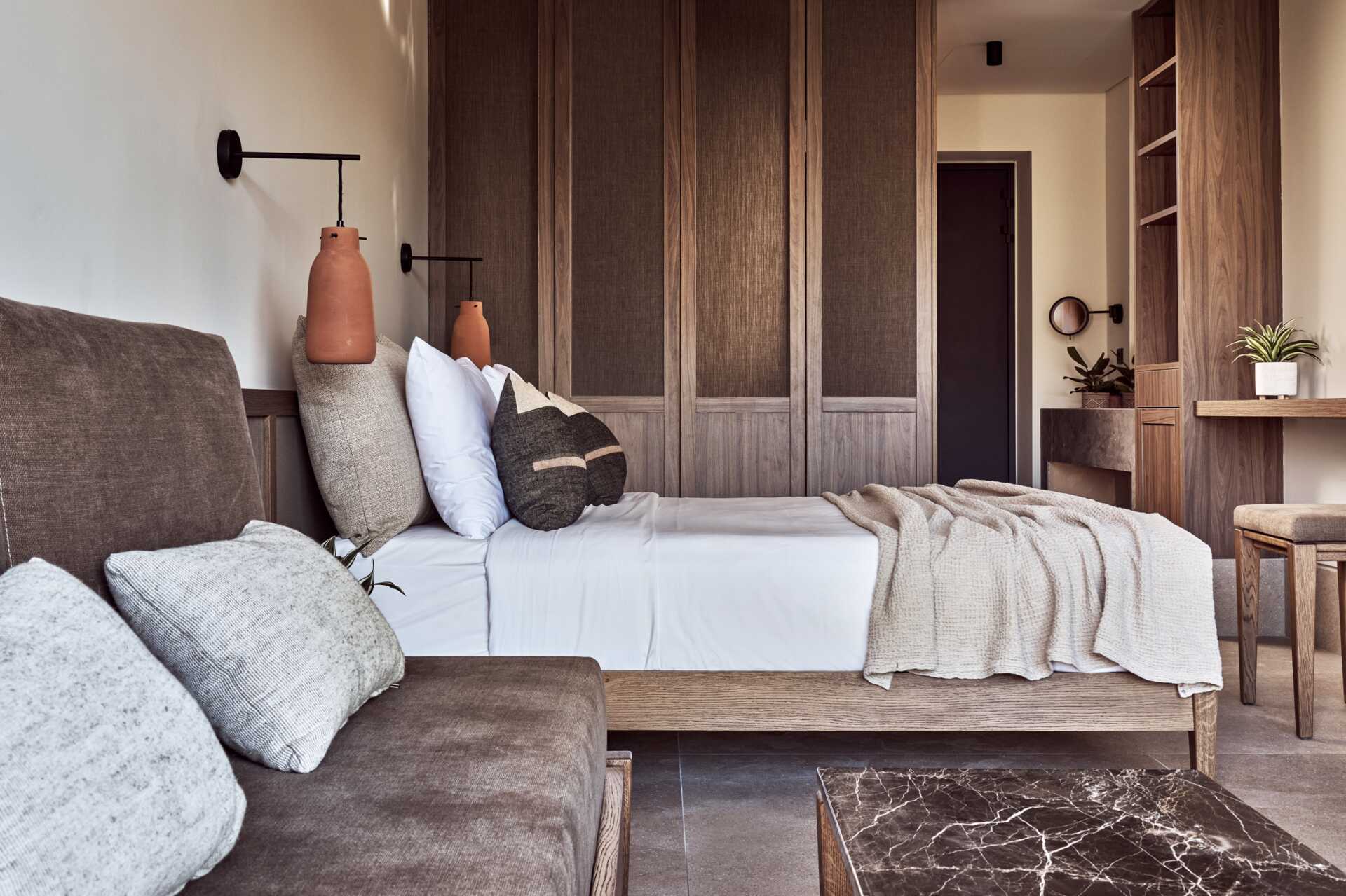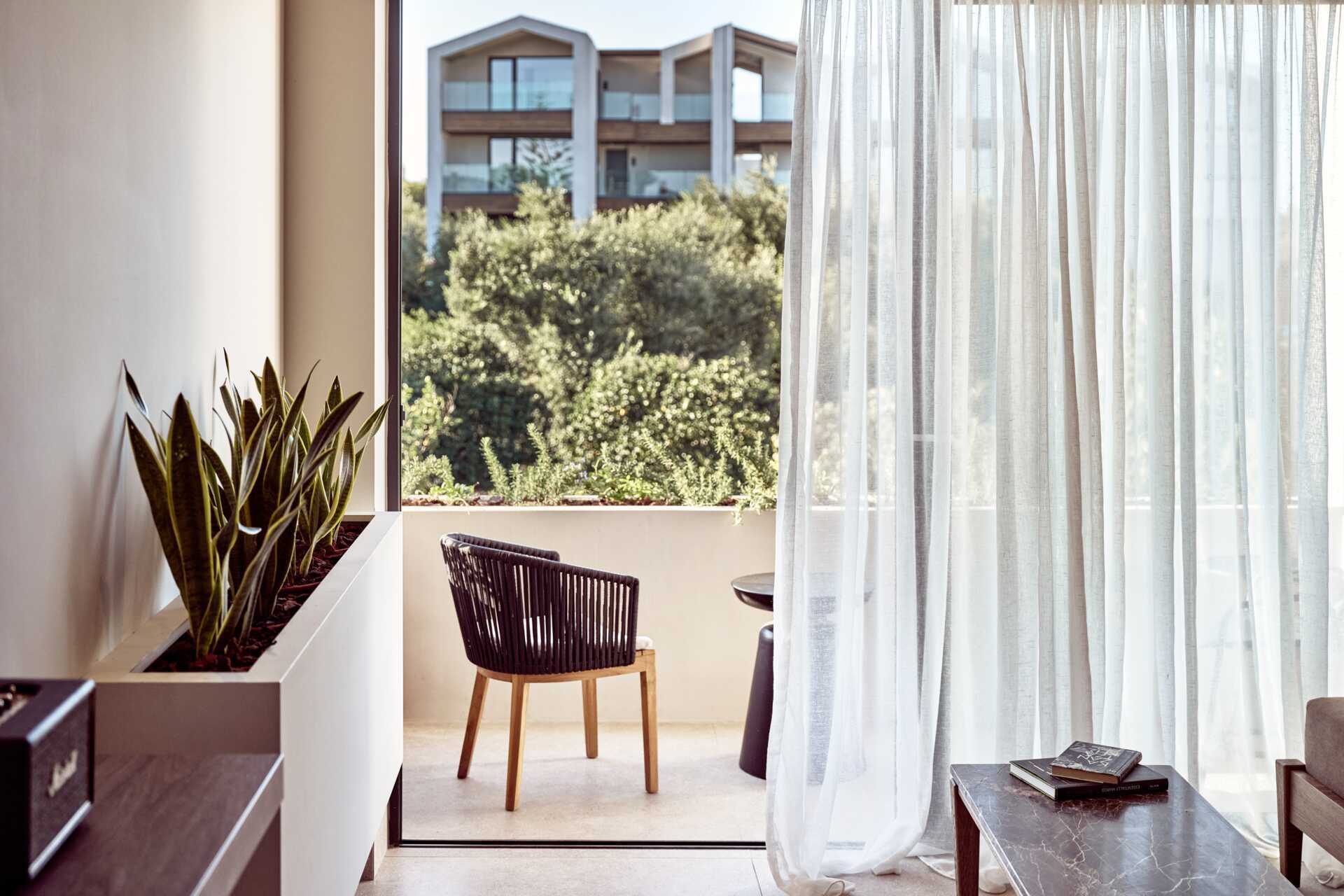 Suite med udeplads og udgang til lavvandet pool. Hver suite har store og komfortable loungesenge. En dobbeltseng eller to enkeltsenge. Mulighed for ekstra opredning i sovesofa. Gratis wifi, aircondition og deponering. Køleskab. El-kedel og kaffe/te. Nespresso kaffemaskine - kapsler indgår. Tv med internationale kanaler. Tv med internationale kanaler. Du kan låne en Chromecast for at få adgang til forskellige filmkanaler som Netflix og Amazon Prime. Bluetooth-højttaler. Badekåber. Hårtørrer. Badeværelse med bruser og toilet. Rengøring 7 gange om ugen.