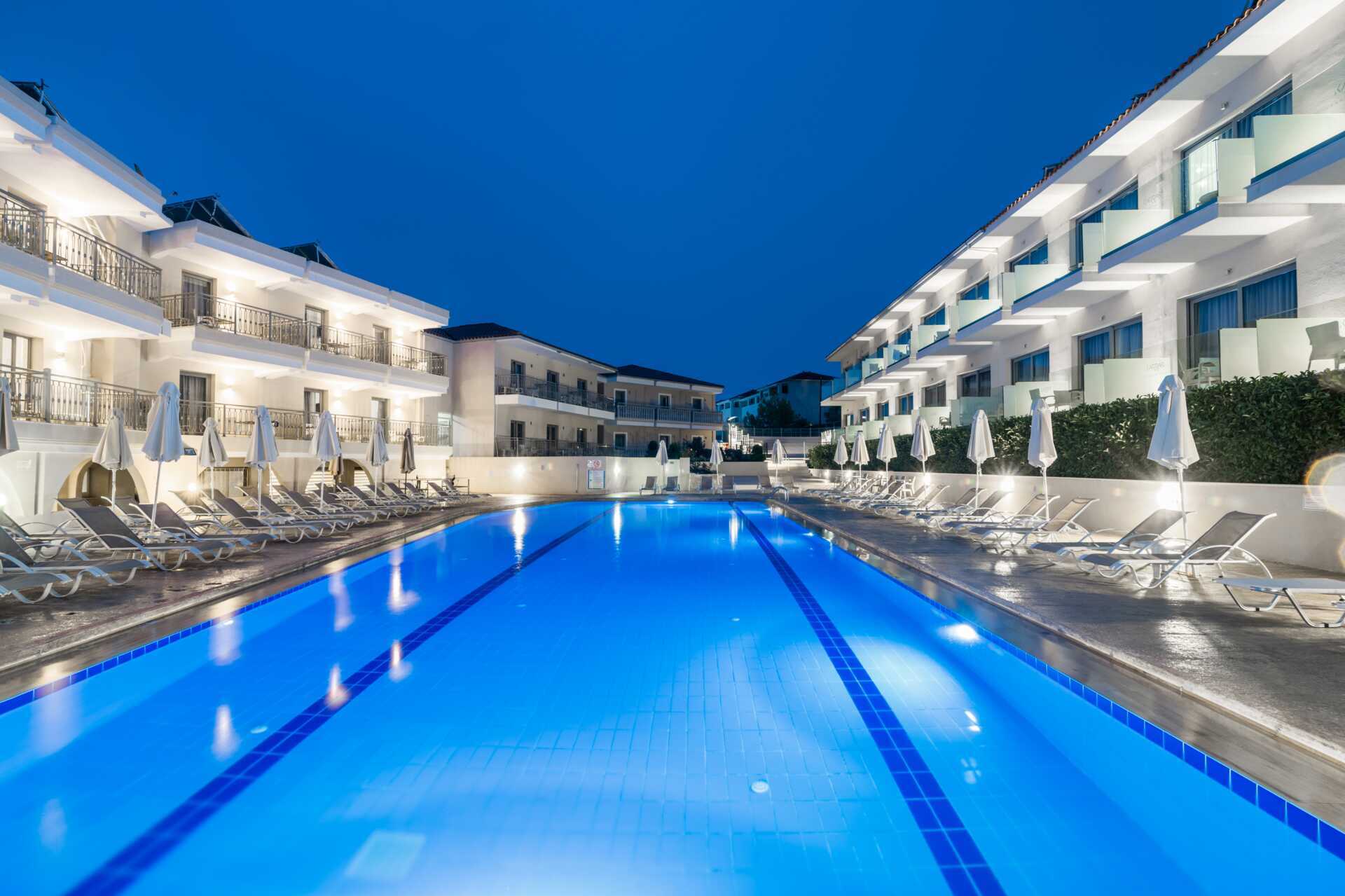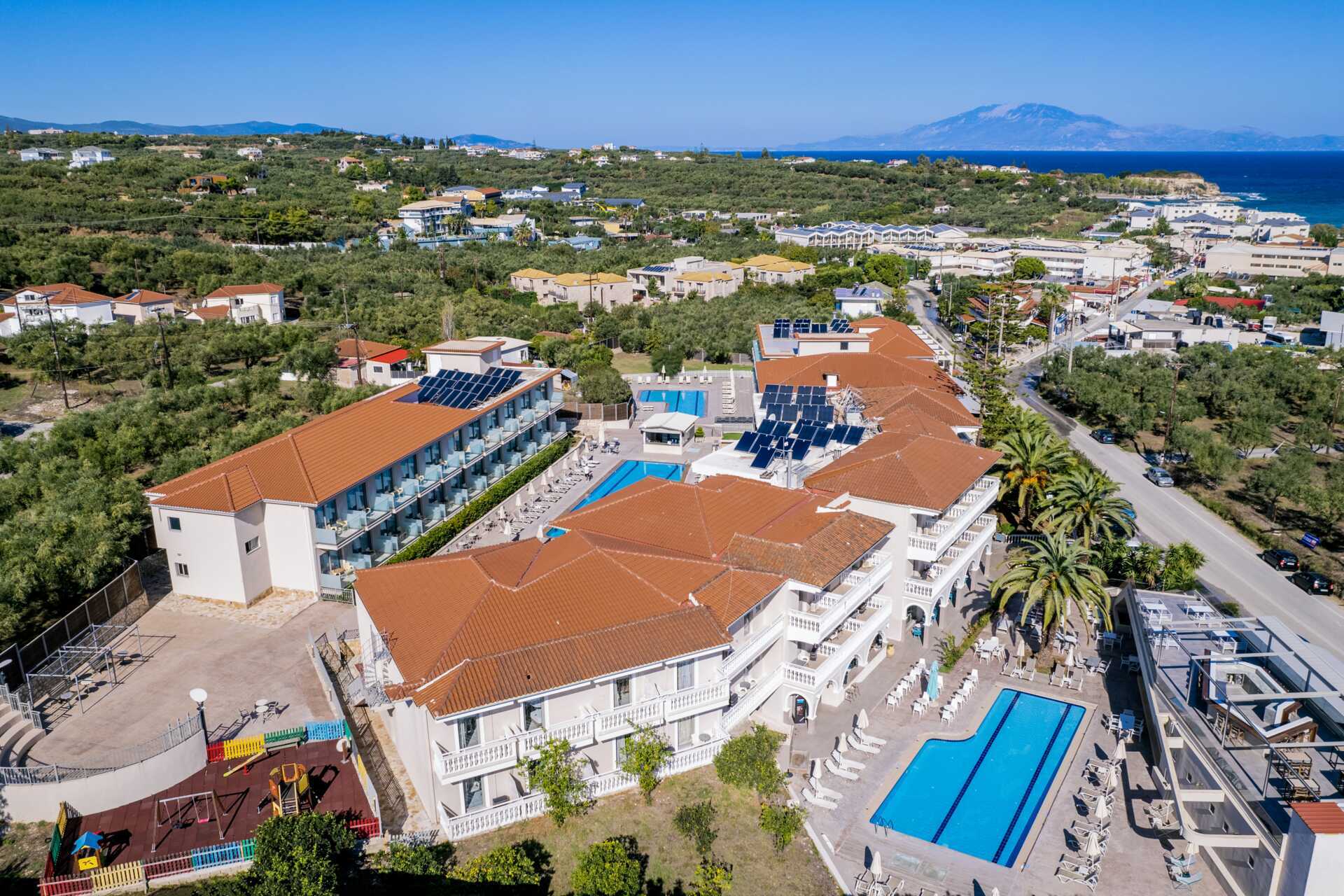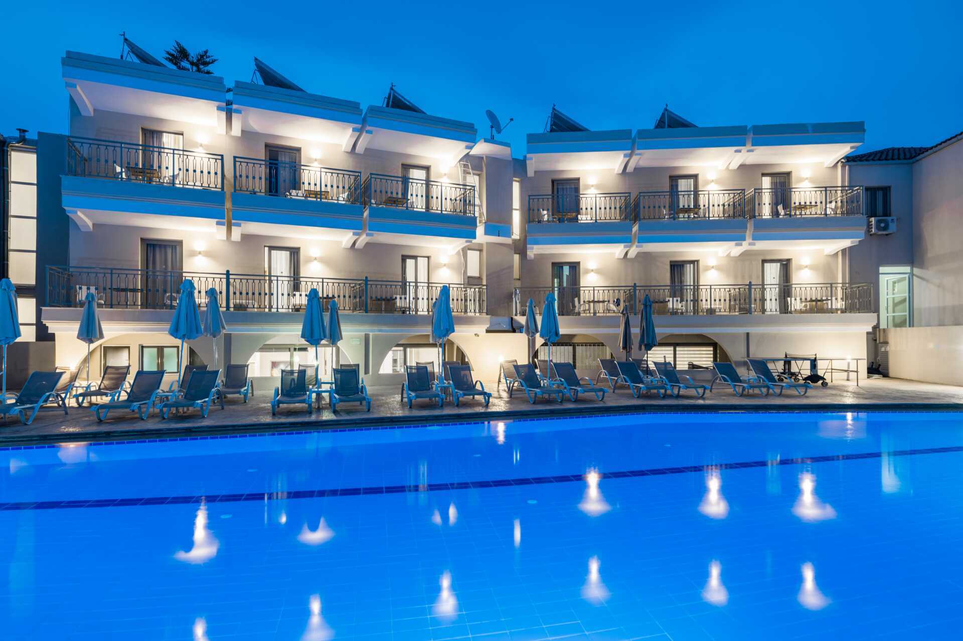 Karras Grande Resort består af fire bygninger og er centralt beliggende i Tsilivi, tæt på både strand og by. Der er to dejlige poolområder med i alt tre pools, heraf en børnepool. Omkring pools er der solstole og parasoller samt en poolbar, der serverer forfriskninger og lette snacks. Poolhåndklæder kan lånes mod depositum.