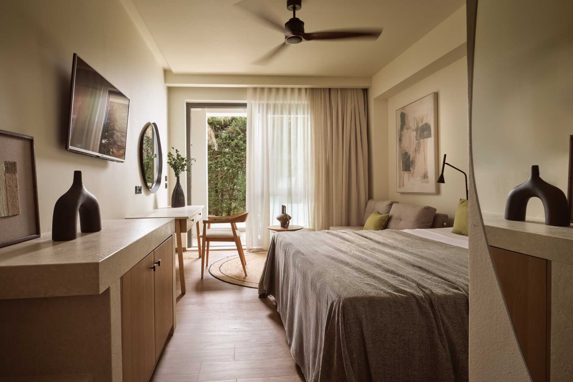 Dobbeltværelse med balkon. En dobbeltseng eller to enkeltsenge. Mulighed for en ekstra opredning i en ombygget lænestol. Gratis wifi, aircondition og deponering. Minibar. El-kedel og kaffe/te. Tv med internationale kanaler. Badekåber og tøfler. Hårtørrer. Badeværelse med badekar og seperat bruser samt toilet. Rengøring 7 gange om ugen.