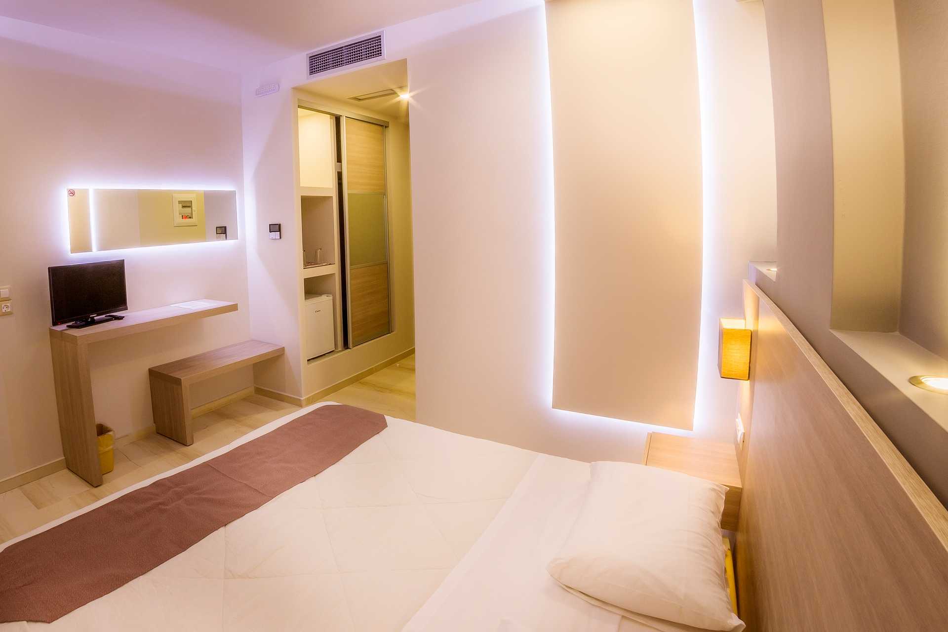 Dobbeltværelser med balkon eller terrasse i stueplan, nogle med pooludsigt. En dobbeltseng eller to enkeltsenge. Mulighed for ekstra opredning i en fold ud-seng på værelse med balkon i stueplan. Køleskab. El-kedel. Gratis wifi, aircondition og deponering. Tv med internationale kanaler. Hårtørrer. Badeværelse med bruser og toilet. Rengøring 7 gange om ugen. Børn under to år tæller med i det maksimale antal personer på værelset.