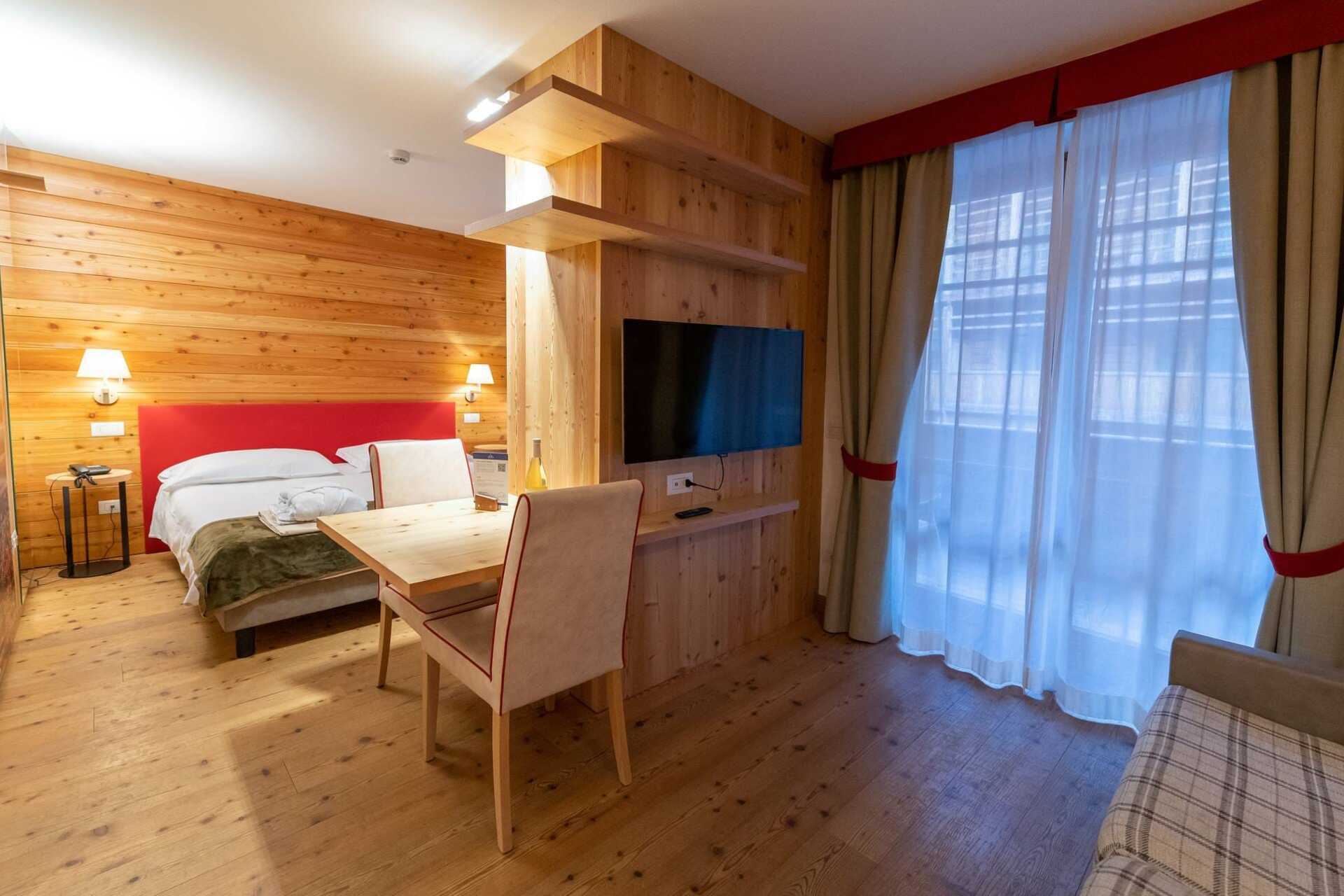 Dobbeltværelse med balkon. Nogle dobbeltværelser ligger ovenpå med en trappe til en hems. En dobbeltseng. Gratis wifi, aircondition til varme og deponering. Køleskab. Kaffemaskine - kapsler mod betaling. Tv med internationale kanaler. Badekåber, poolhåndklæder og tøfler. Hårtørrer. Badeværelse med bruser og toilet. Rengøring 5 gange om ugen.