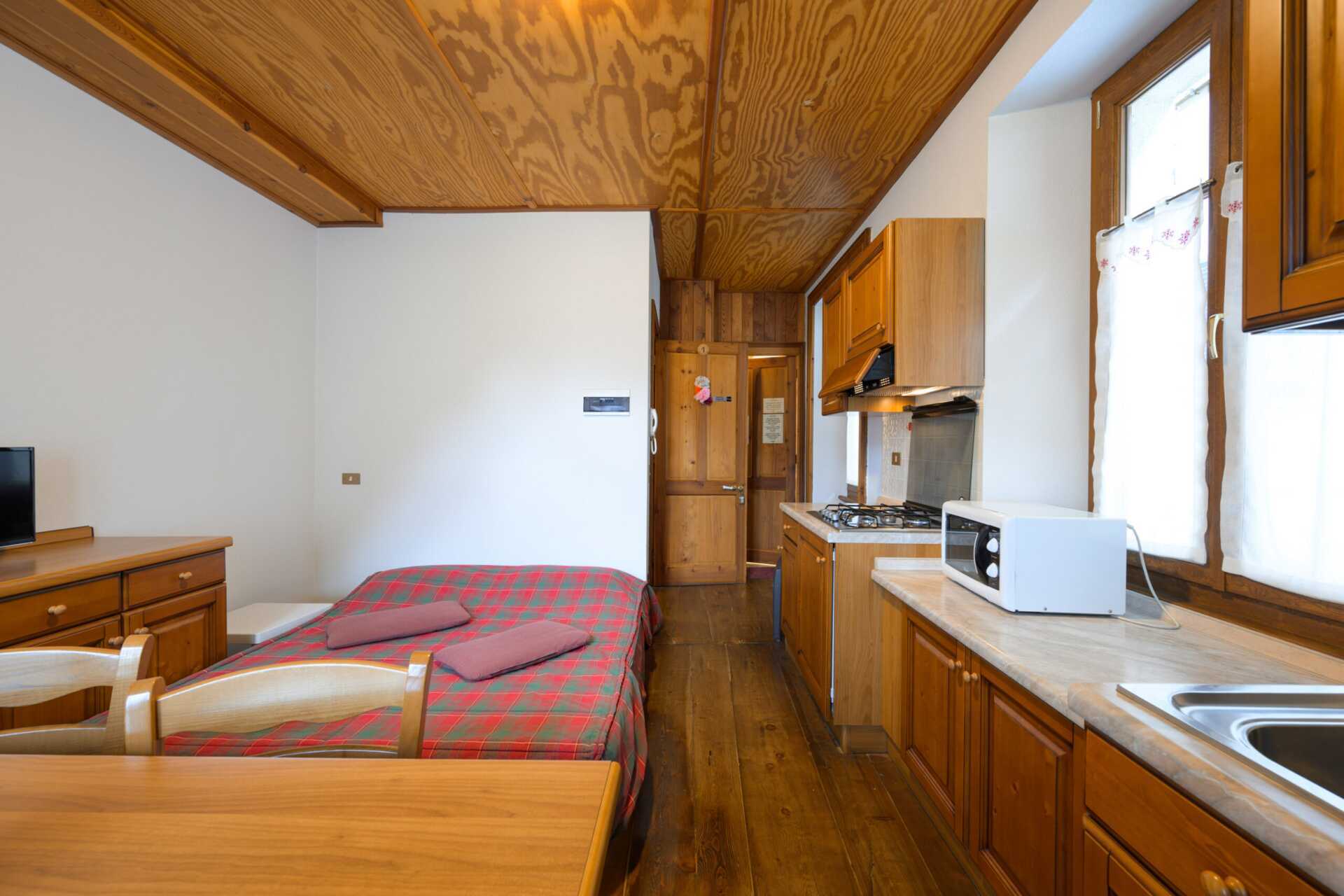 1-værelses lejlighed uden udeplads. En sovesofa med plads til 2 personer og en enkeltseng. Minikøkken med kogeplader, køleskab, mikroovn og enkelt køkkenudstyr. Gratis wifi. Tv med internationale kanaler. Hårtørrer. Badeværelse med bruser og toilet. Rengjort ved ankomst, men ingen rengøring/skift af sengetøj eller håndklæder under opholdet.
